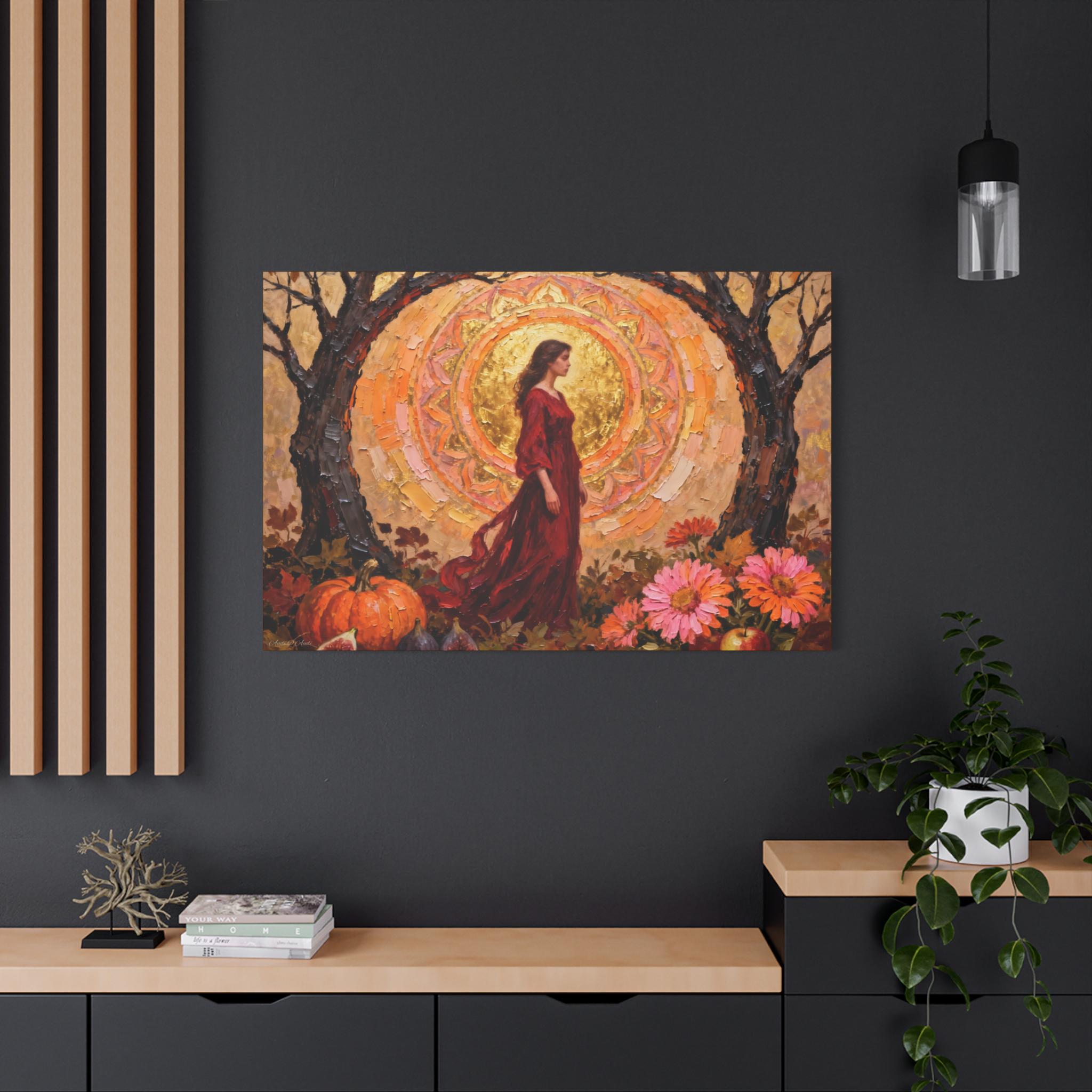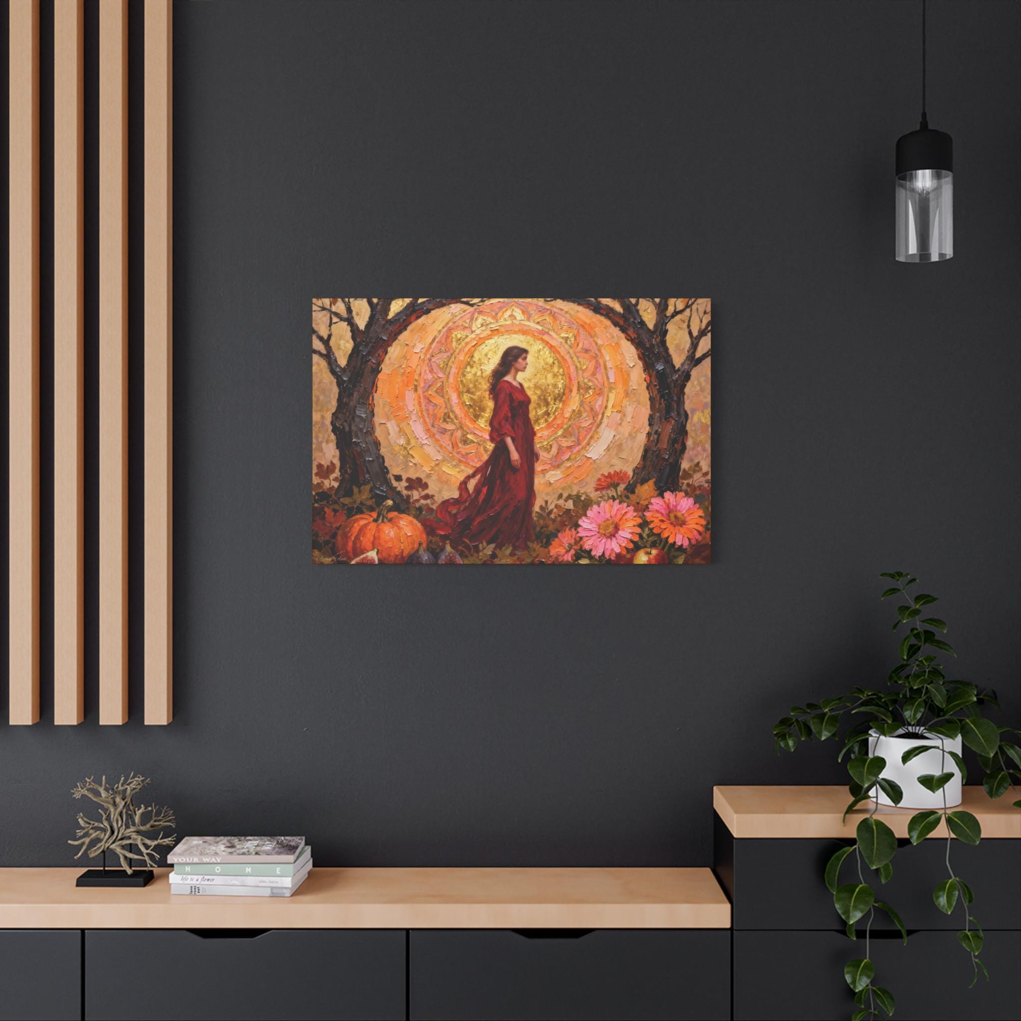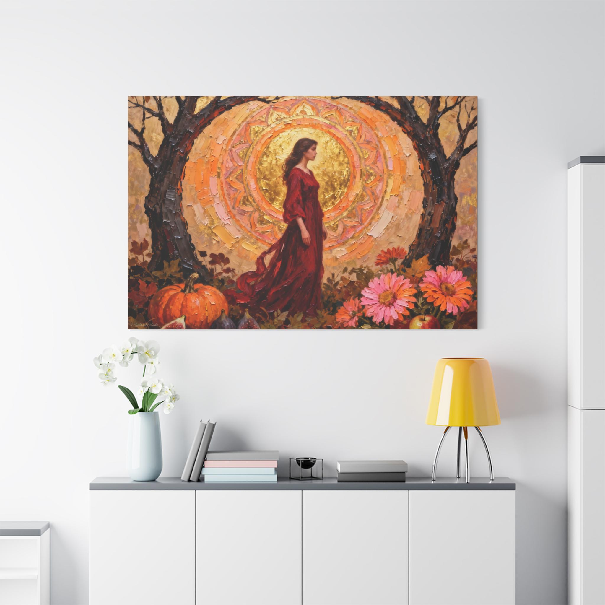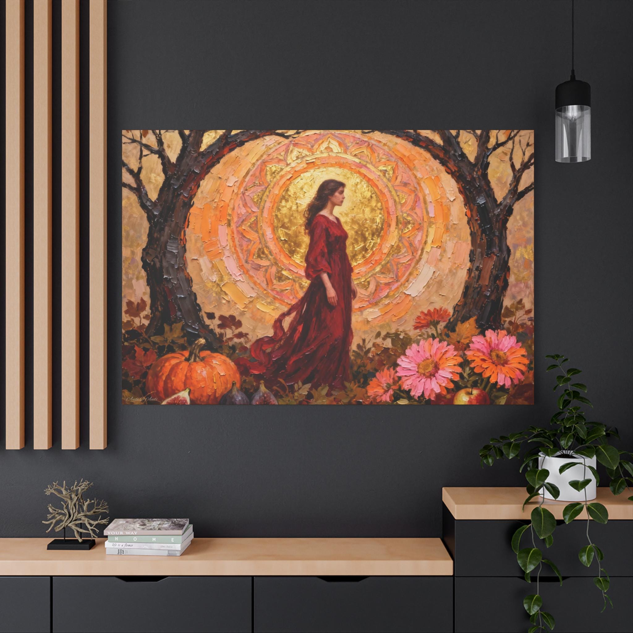 Canvas Print, The Harvest Muse, Lady In The Garden, Elegant Floral Wall Art, Nature Inspired, Boho Style, Stretched