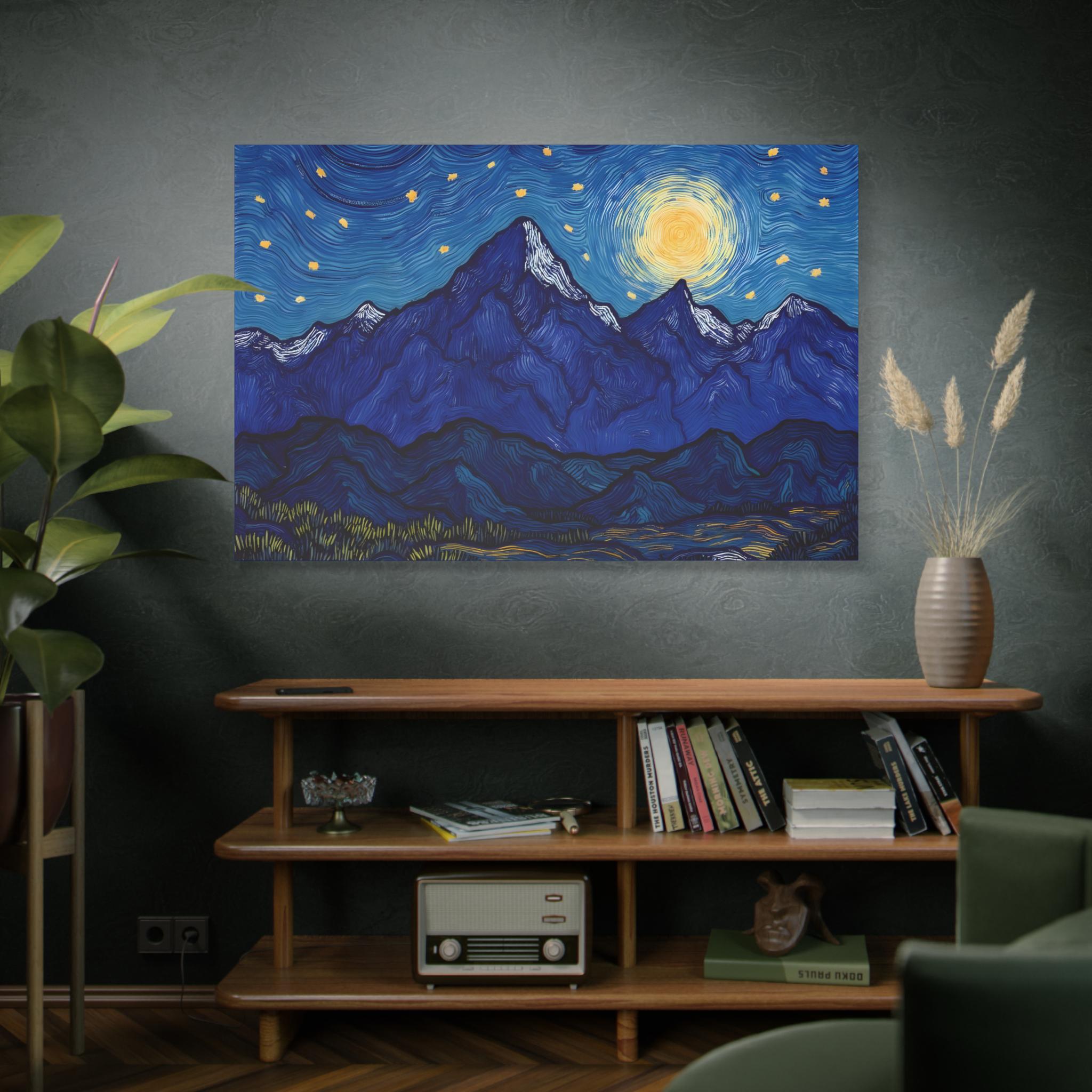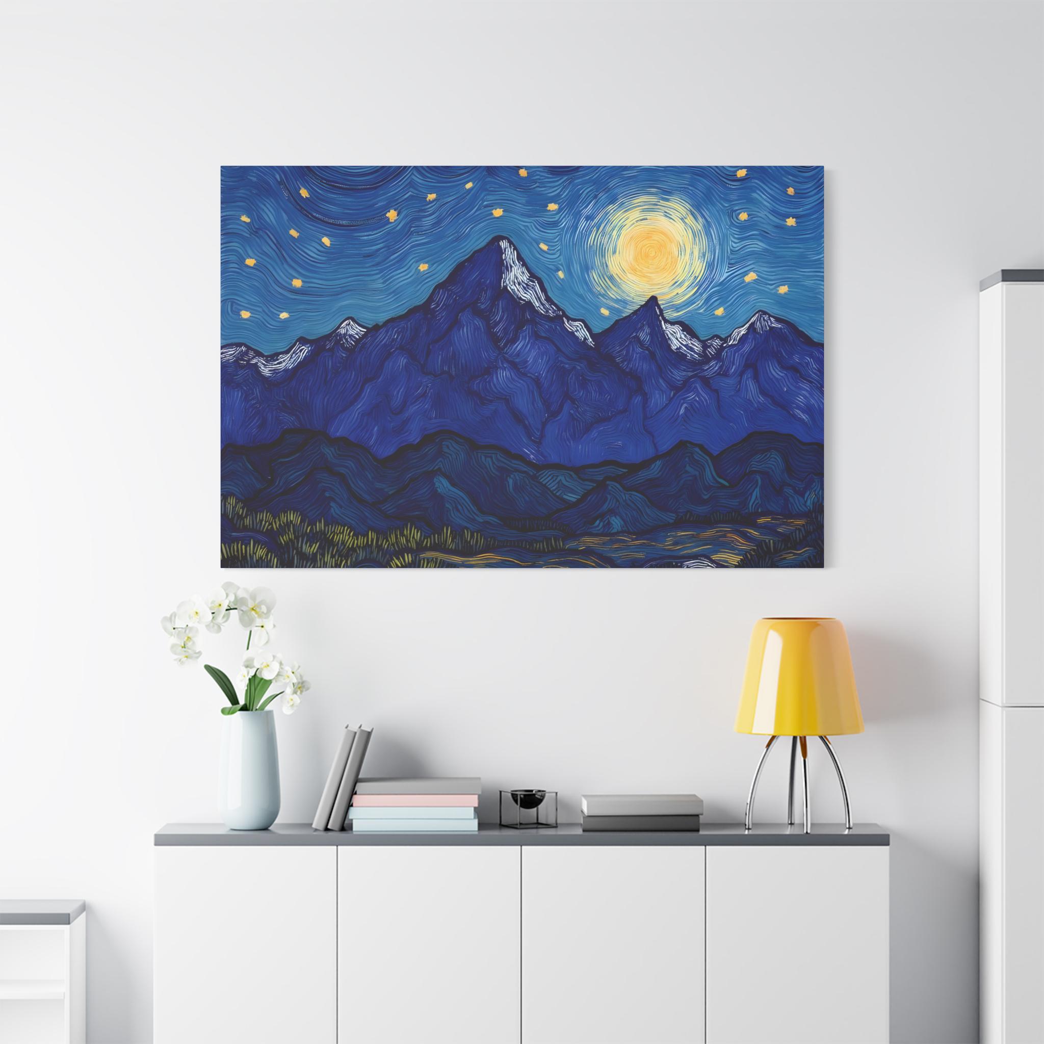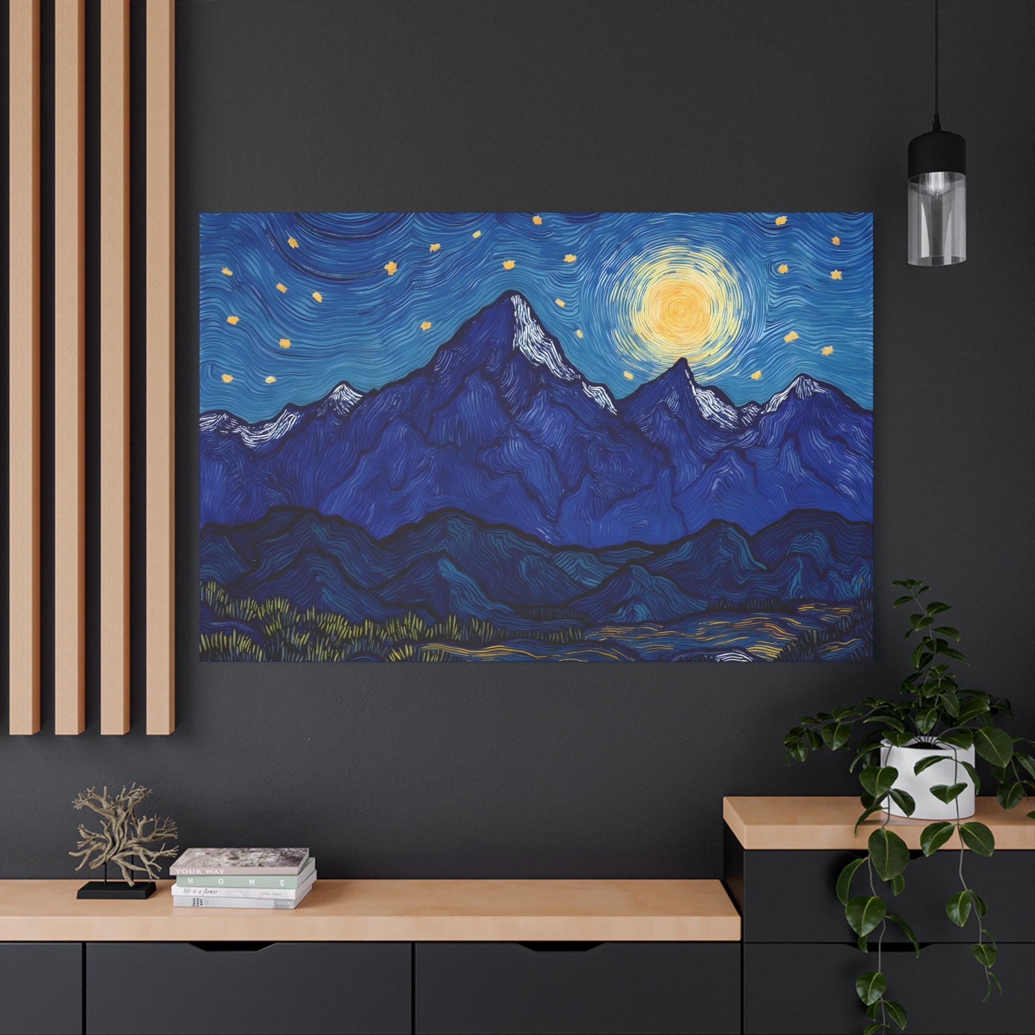 Mountain Starry Night, Canvas Wall Art, Mountain Night Scene, Home Decor, Art for Living Room, Great for Housewarming Gifts. Size 60" x 40"