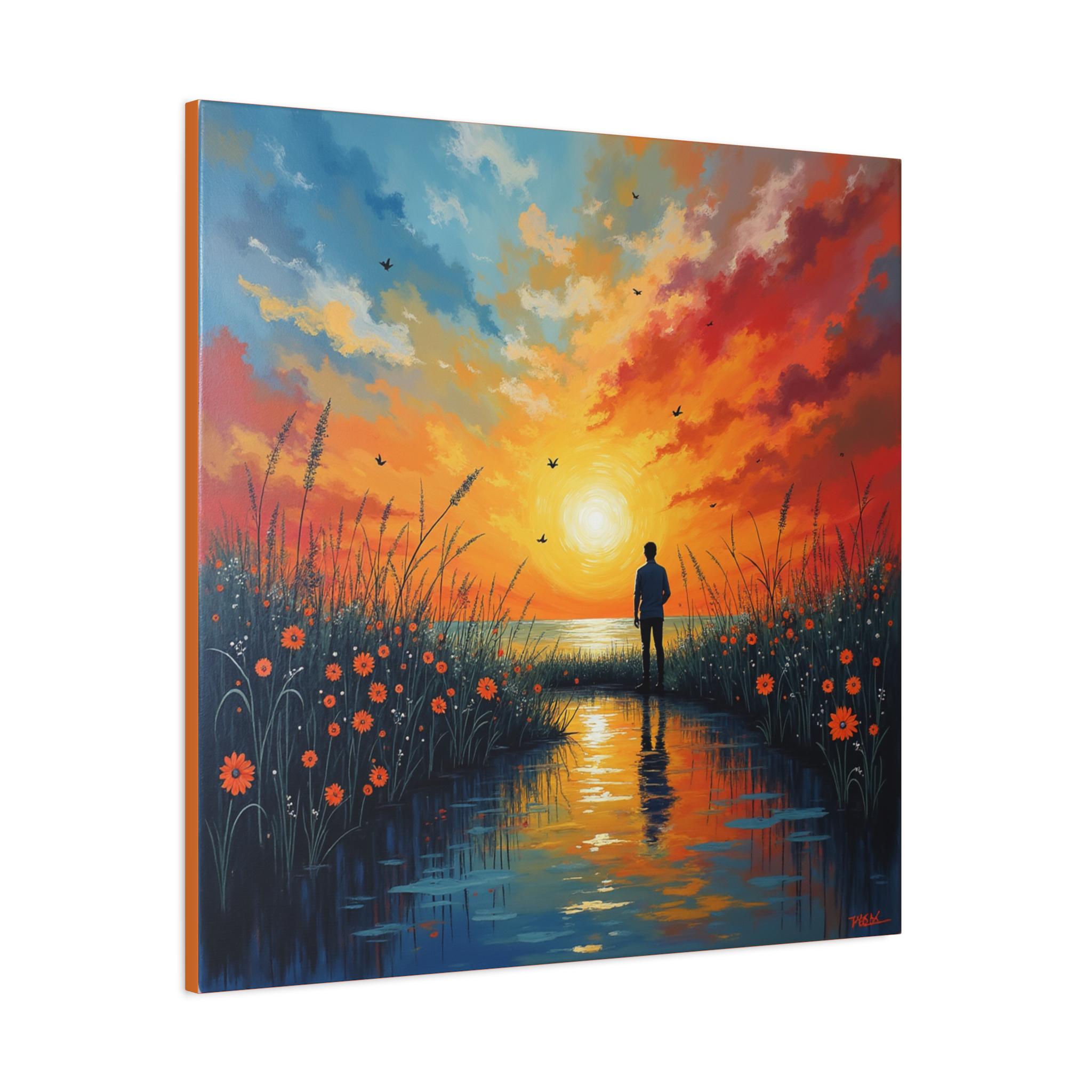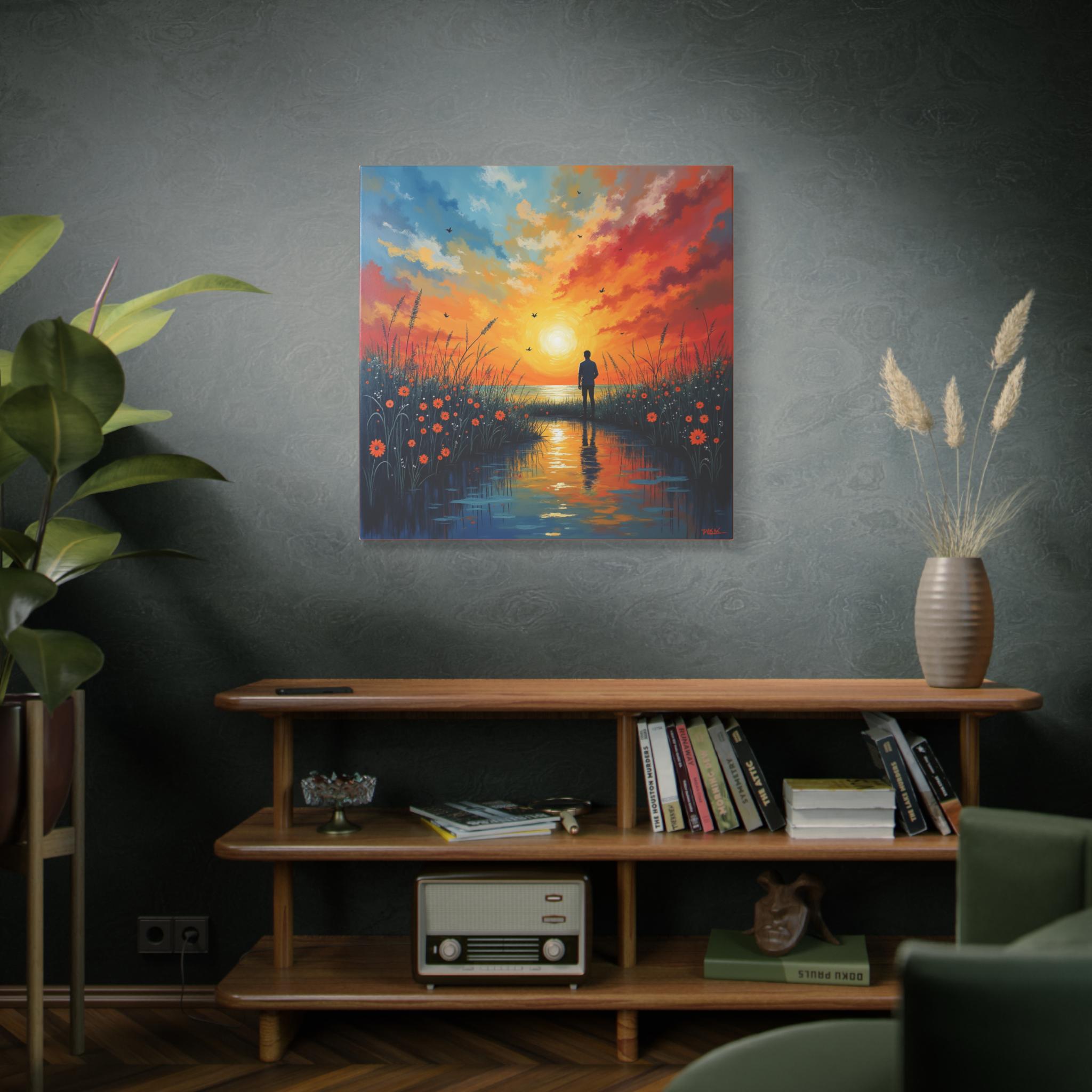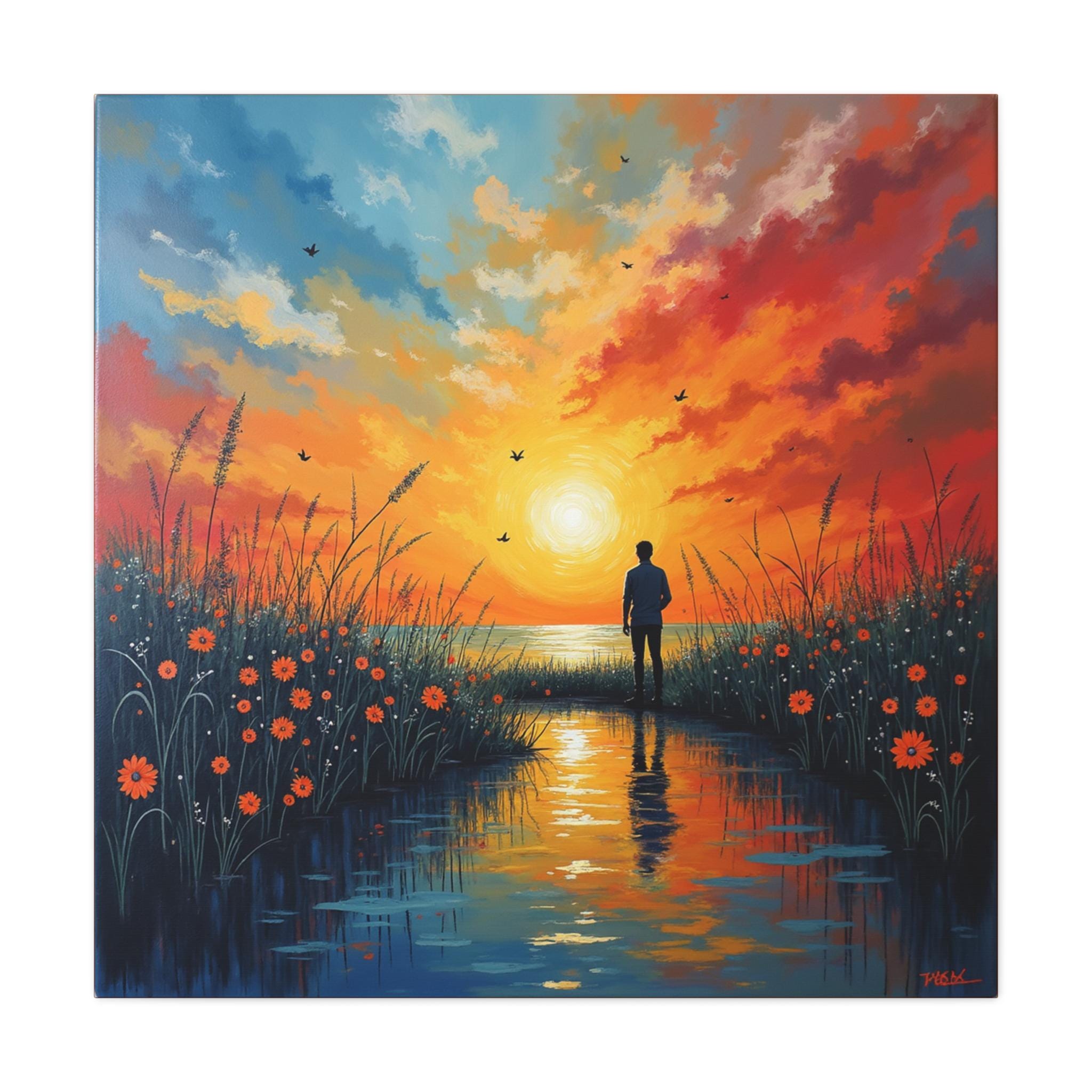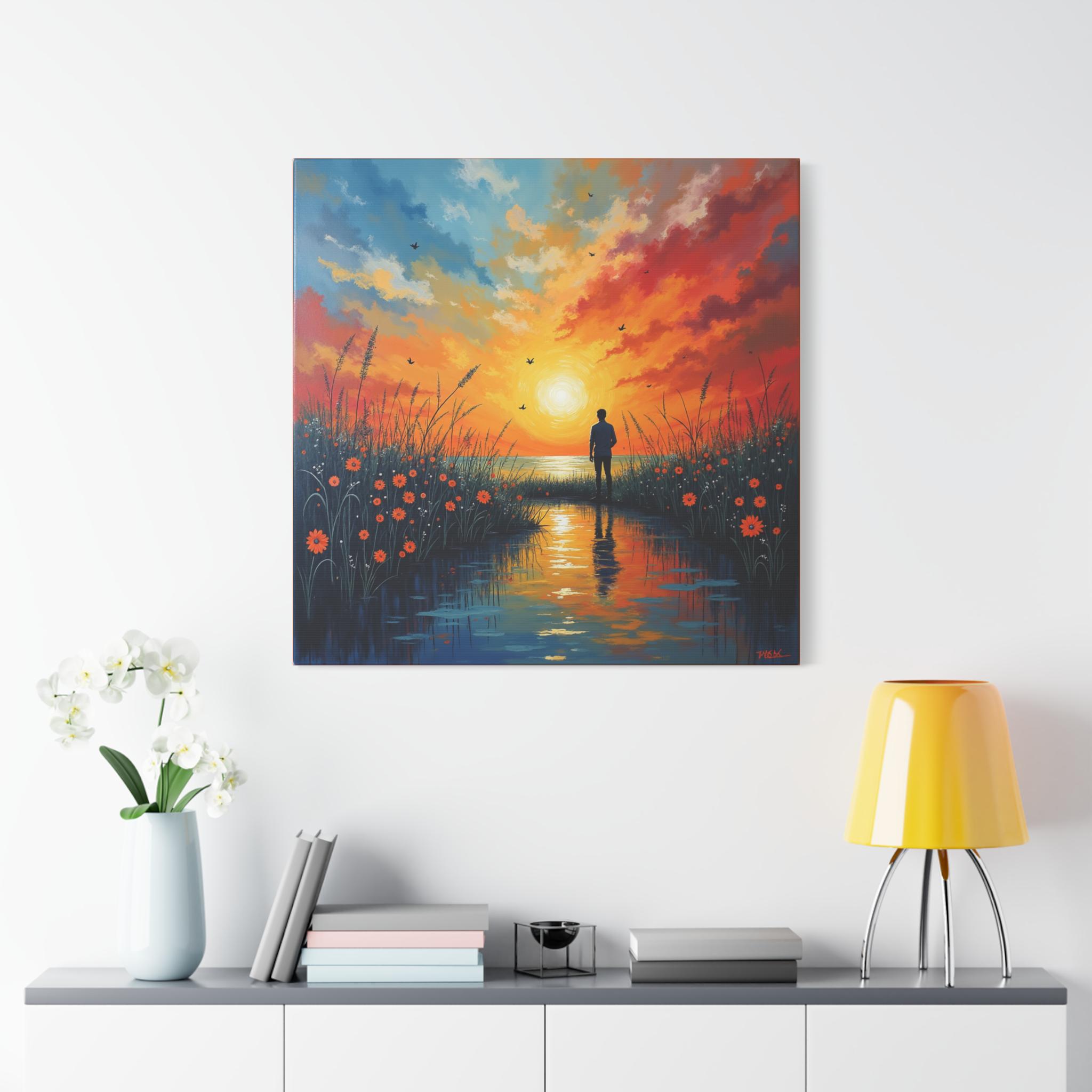 Sunset Serenity Canvas Art: Floral Landscape Painting, Nature Wall Decor