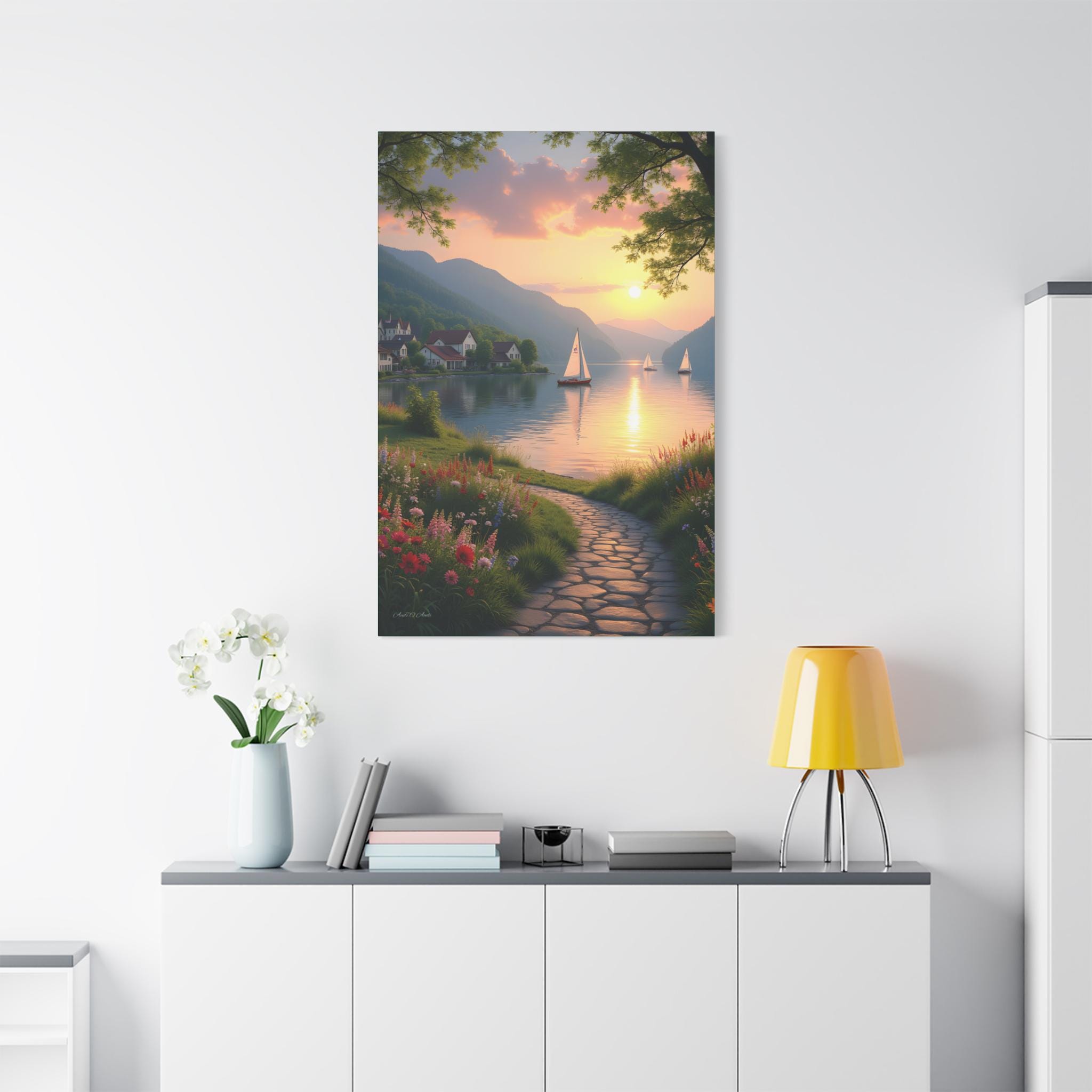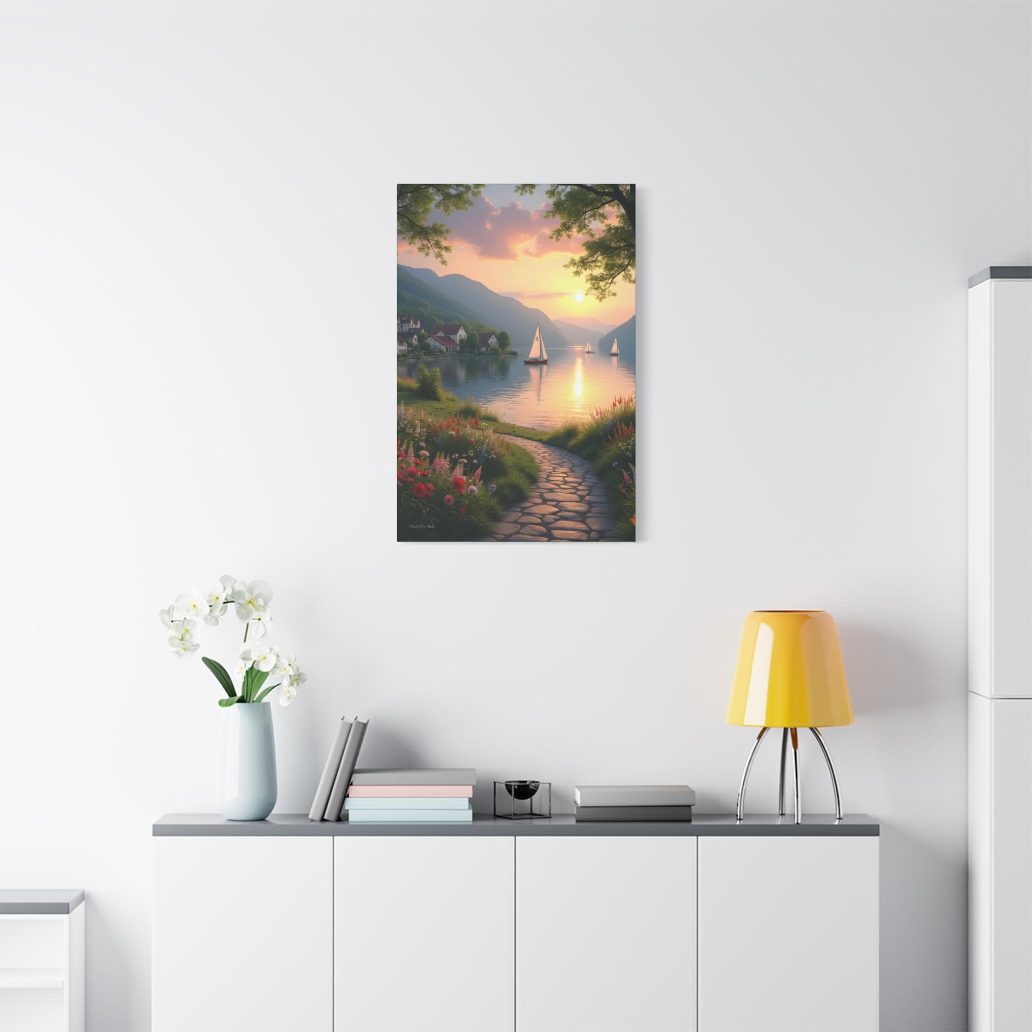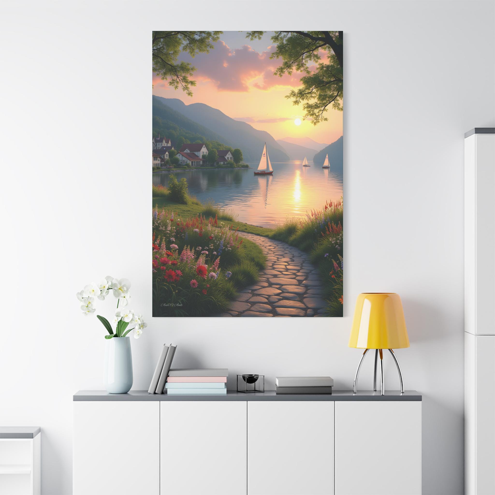 Golden Hour glow, Serene Landscape Wall Art Print - Nautical Sunset Canvas Print, Home Decor, Gift for Nature Lovers.