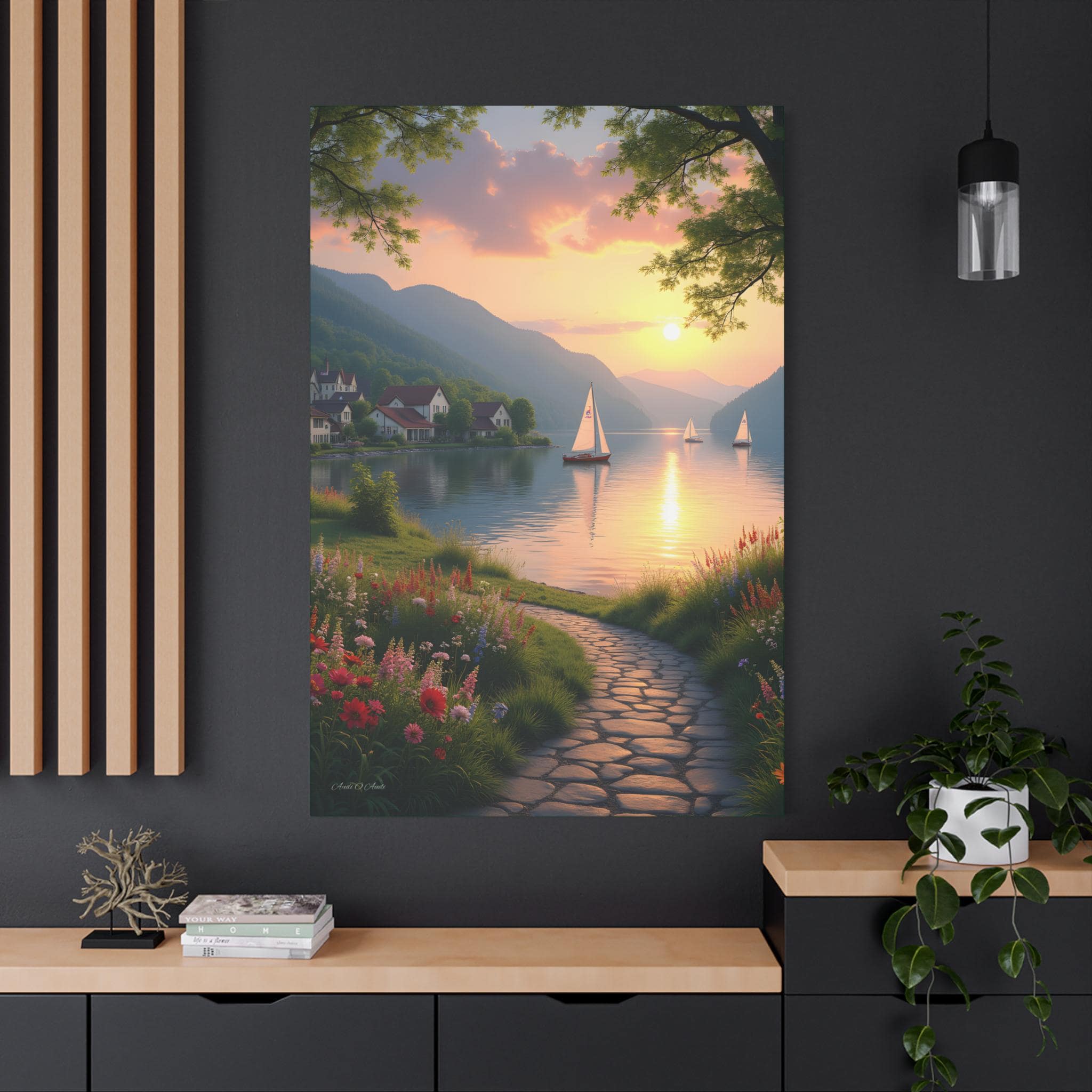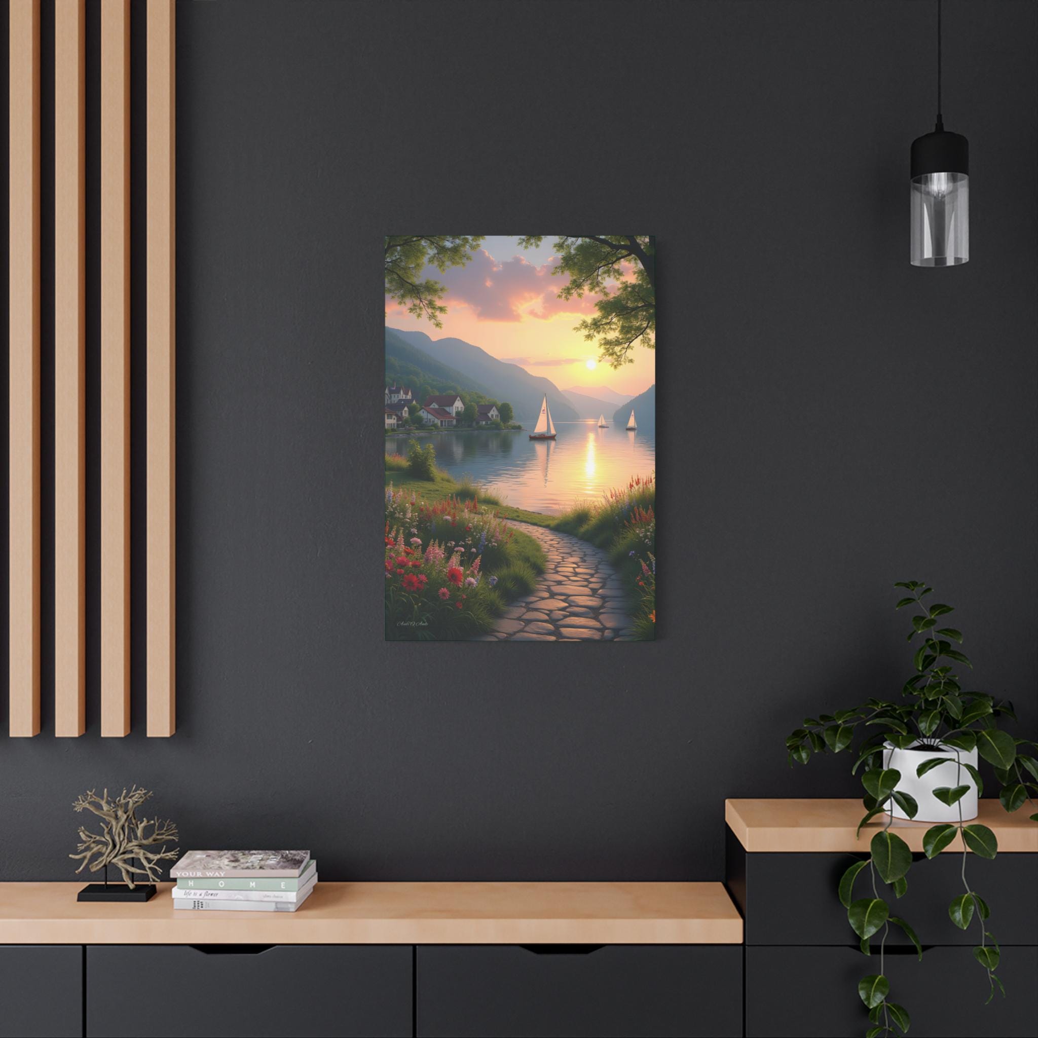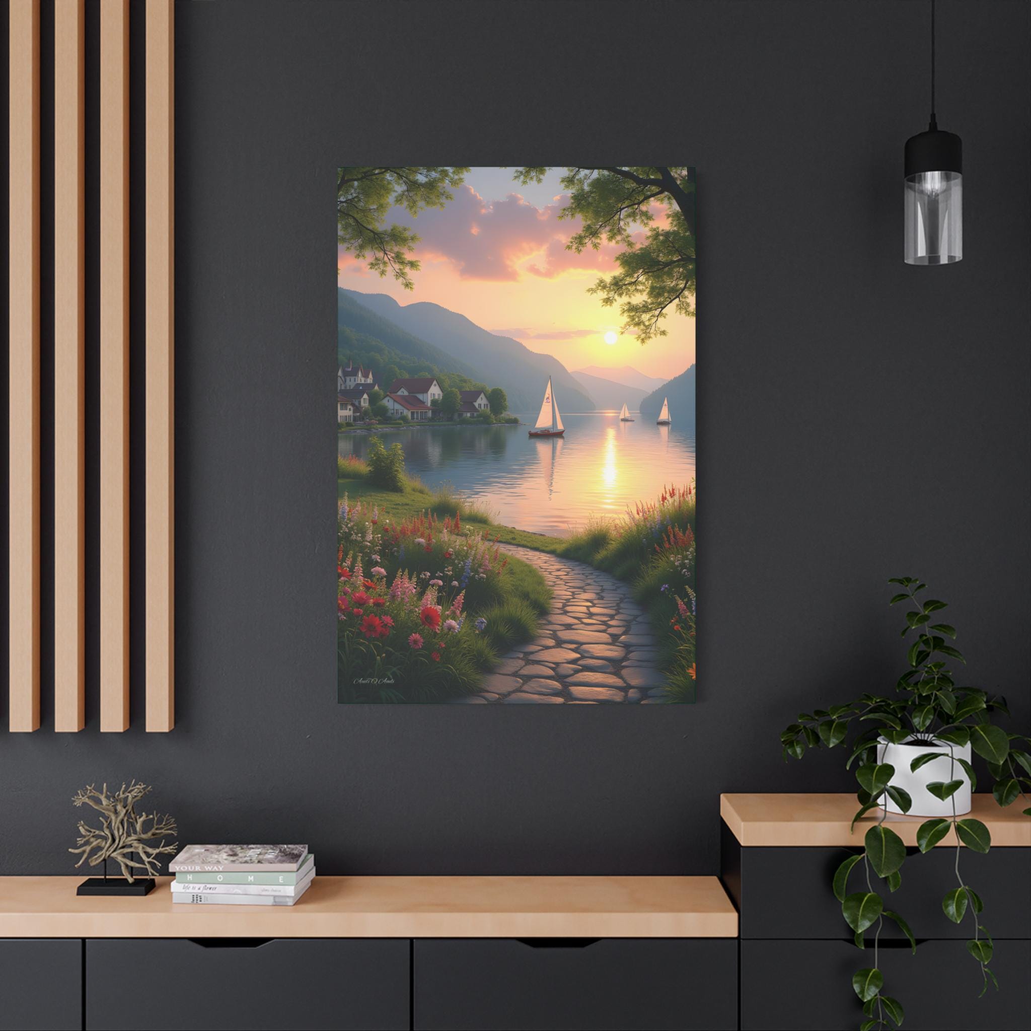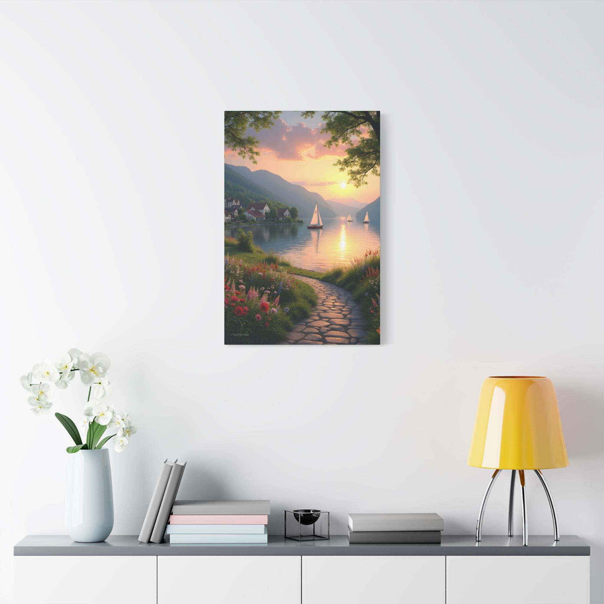 Golden Hour glow, Serene Landscape Wall Art Print - Nautical Sunset Canvas Print, Home Decor, Gift for Nature Lovers.