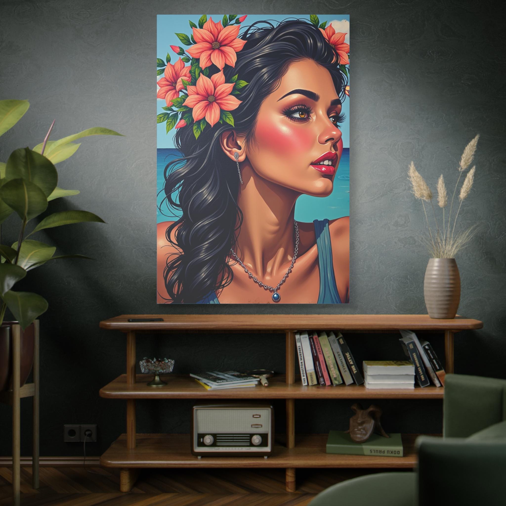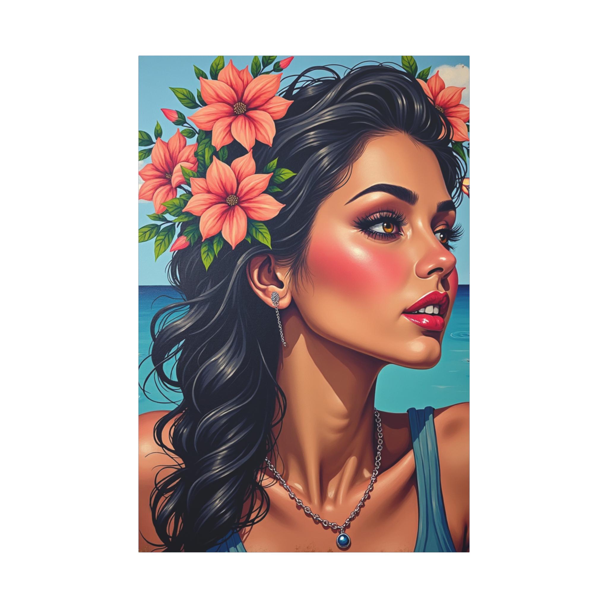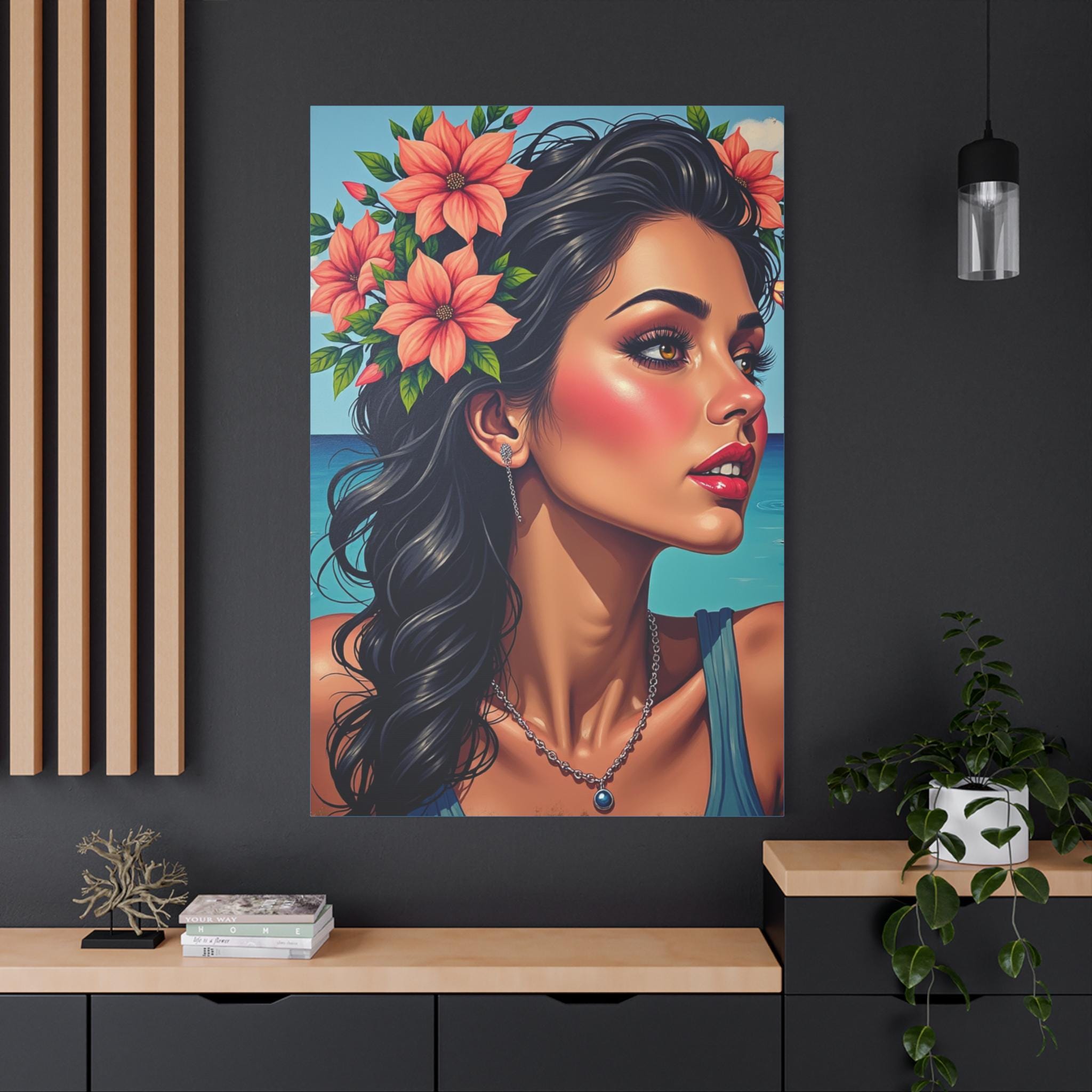Island Muse Floral Portrait Canvas Print: Feminine Home Decor Size 40"X60"