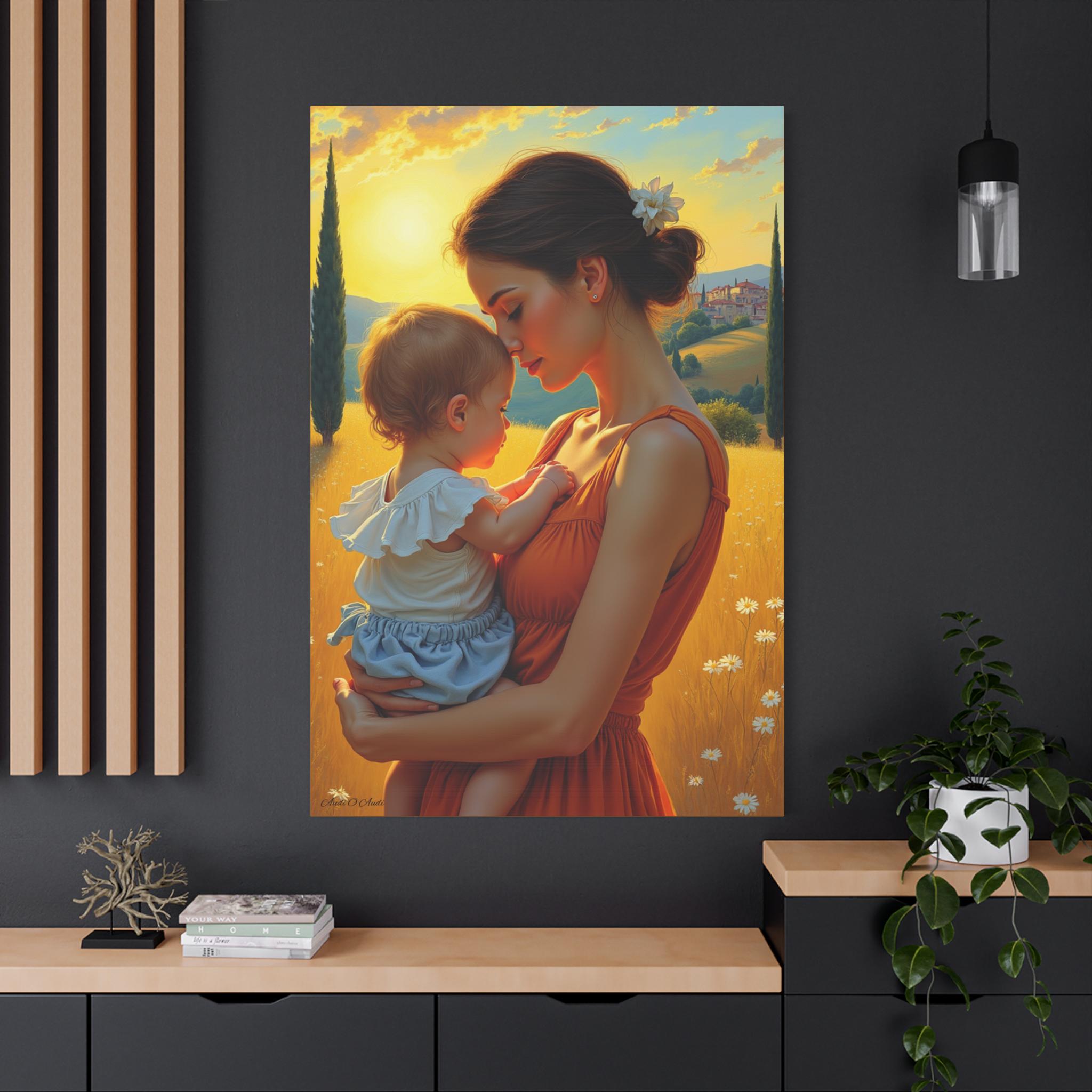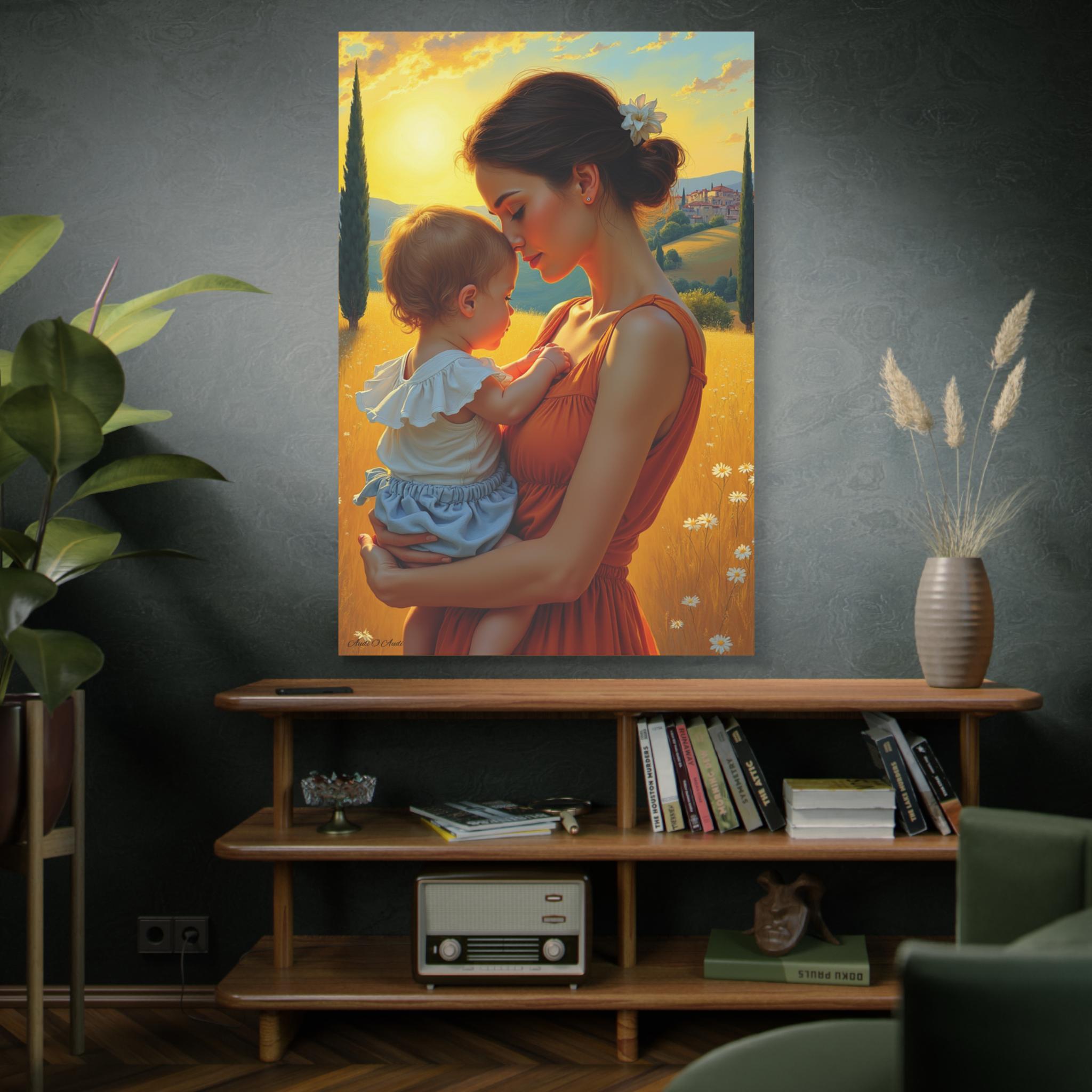 Elevate your living space with this stunning matte canvas print. Featuring a beautifully illustrated moment of connection between a mother and child amidst a golden field, this artwork brings warmth and love into any room. Its vibrant colors and high-quality finish create a calming atmosphere that enchants any viewer. Perfect for nurseries, living rooms, or as a thoughtful gift. Ideal for new parents, family-oriented individuals, or anyone looking to celebrate love and connection. This piece is also a wonderful choice for holidays like Mother’s Day or baby showers, making it a perfect sentimental present.