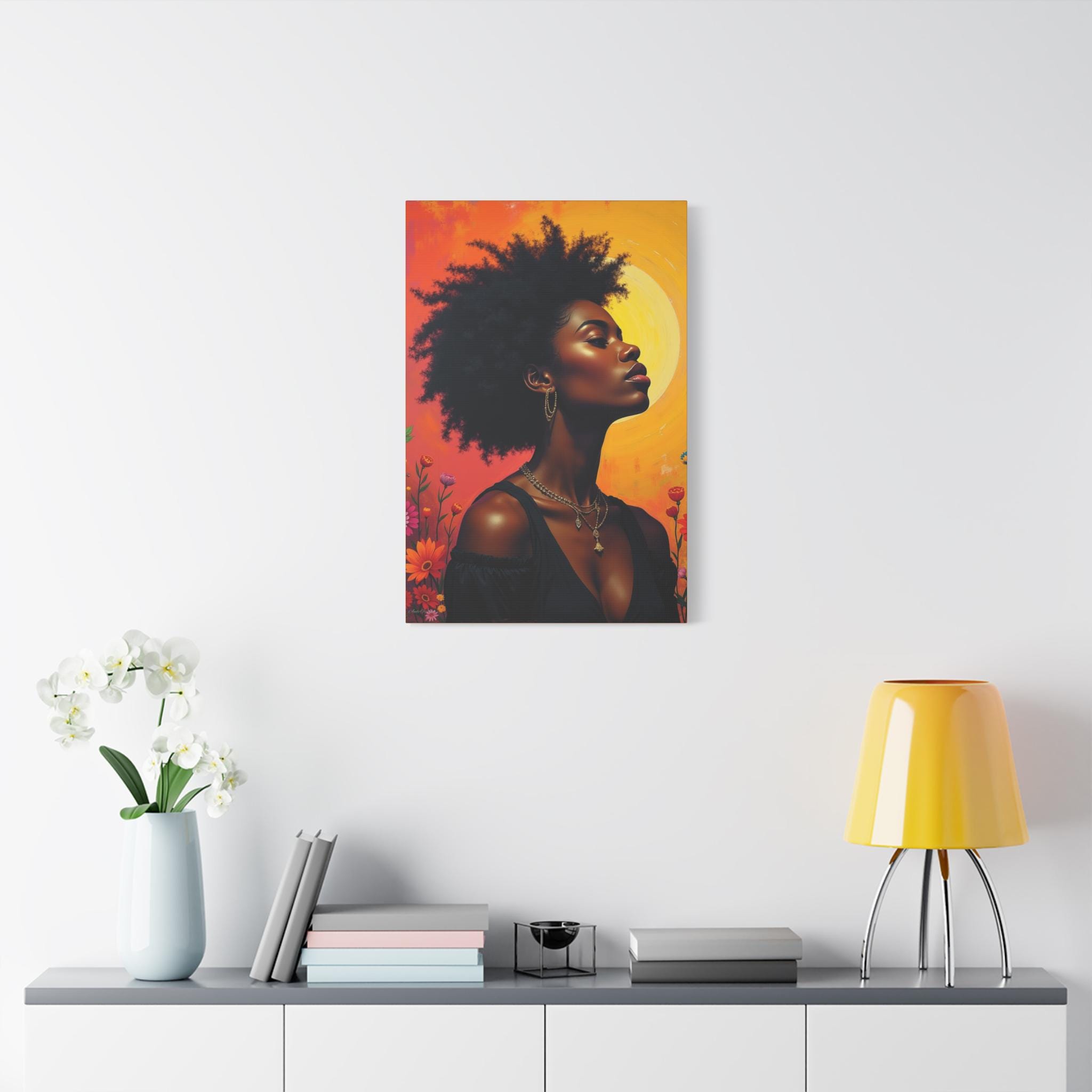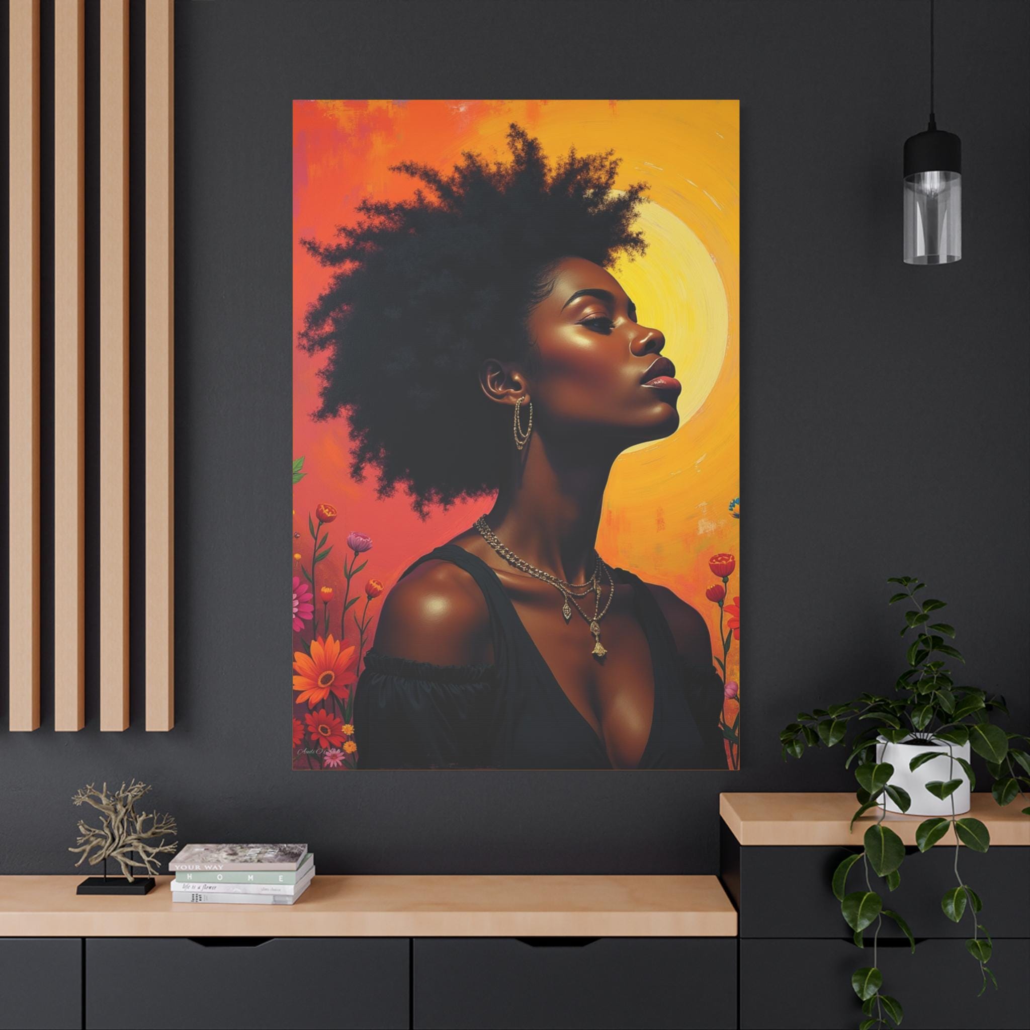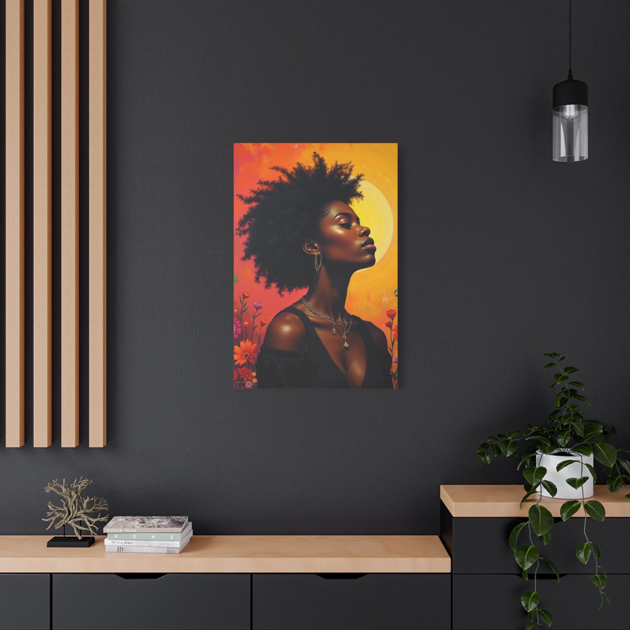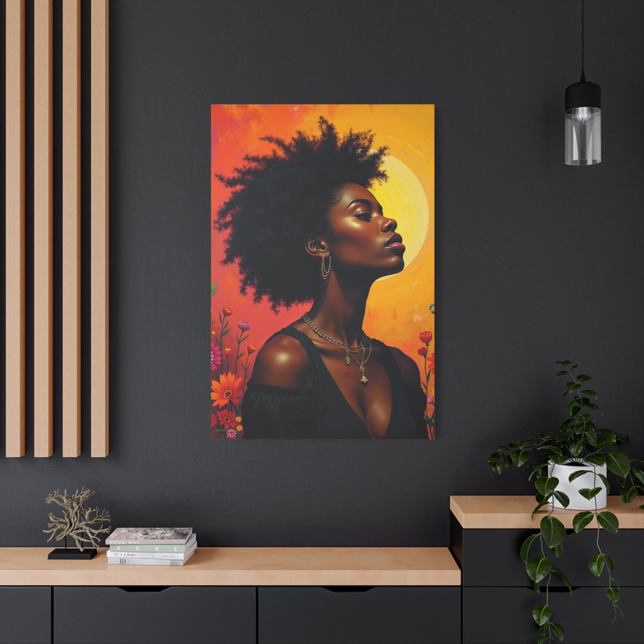 Solar Radiance, African American Woman Canvas print, Colorful Wall Decor, Home Aesthetic, Gift for Art Lovers, Boho Style.