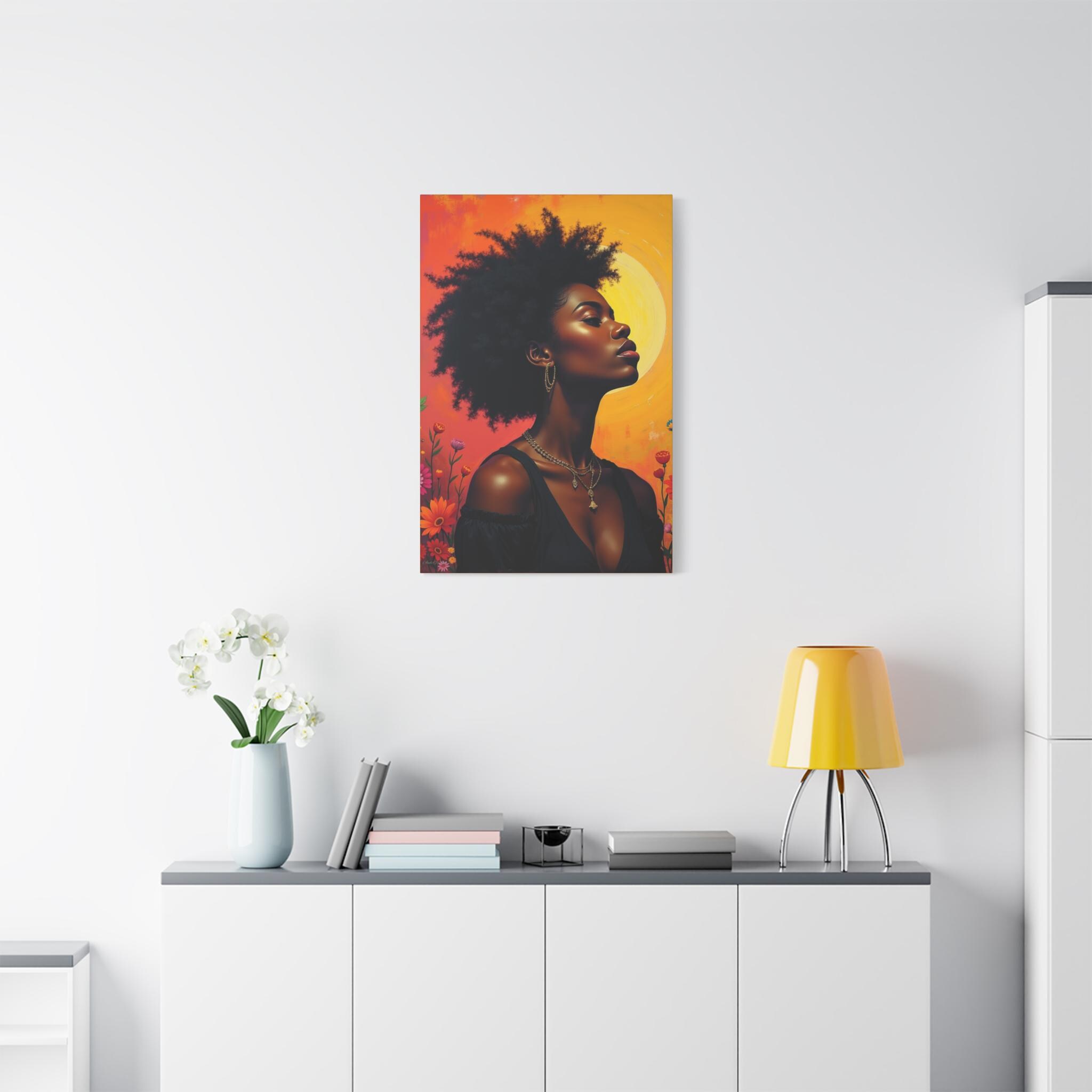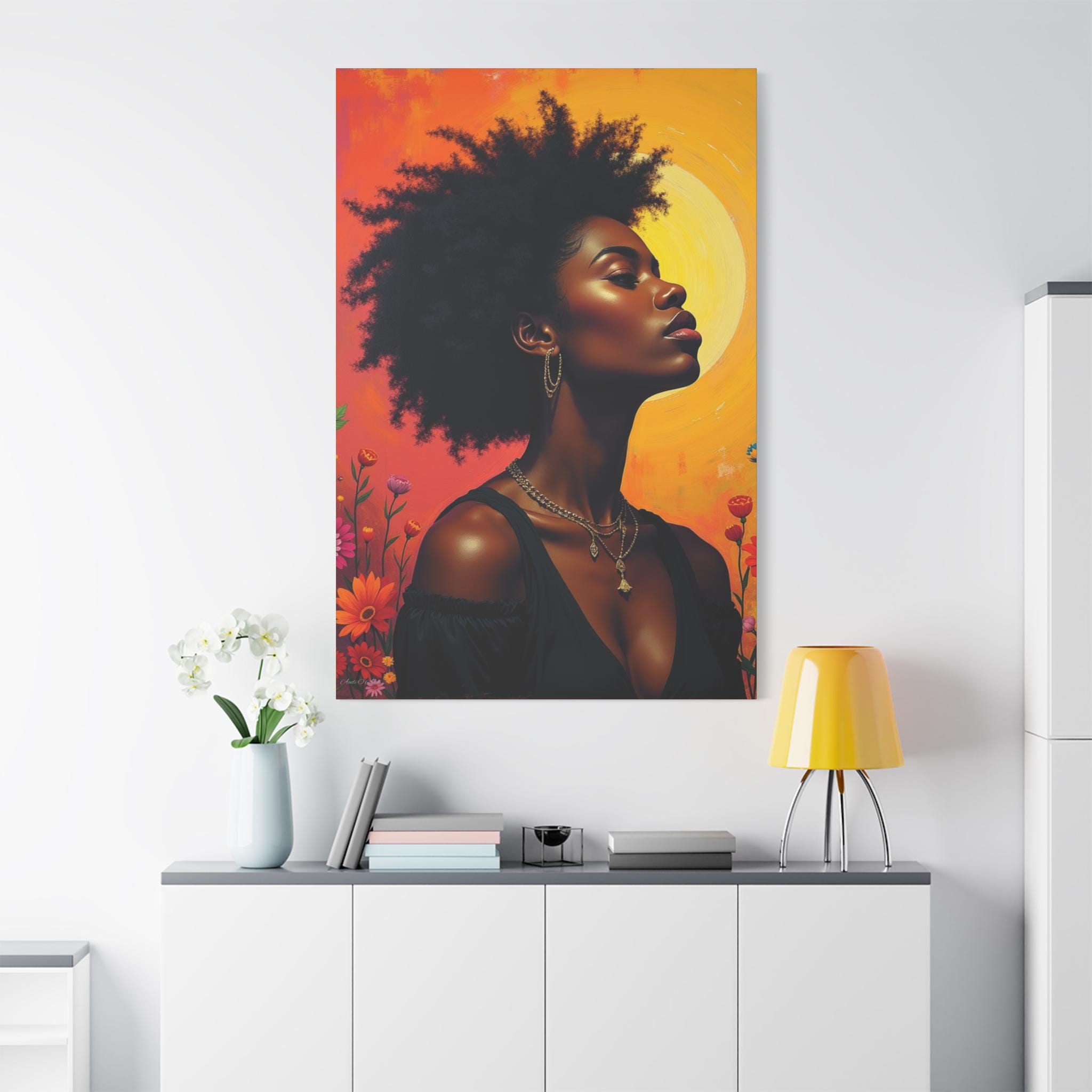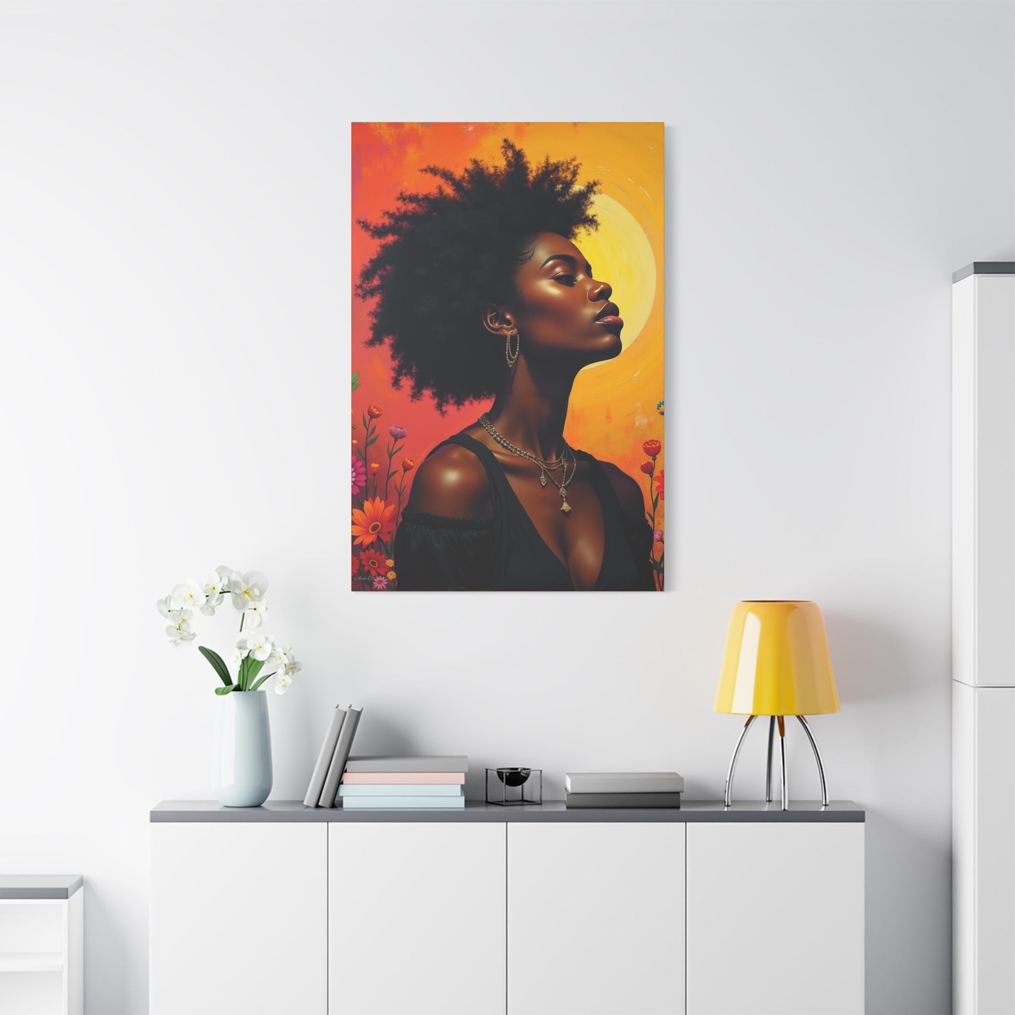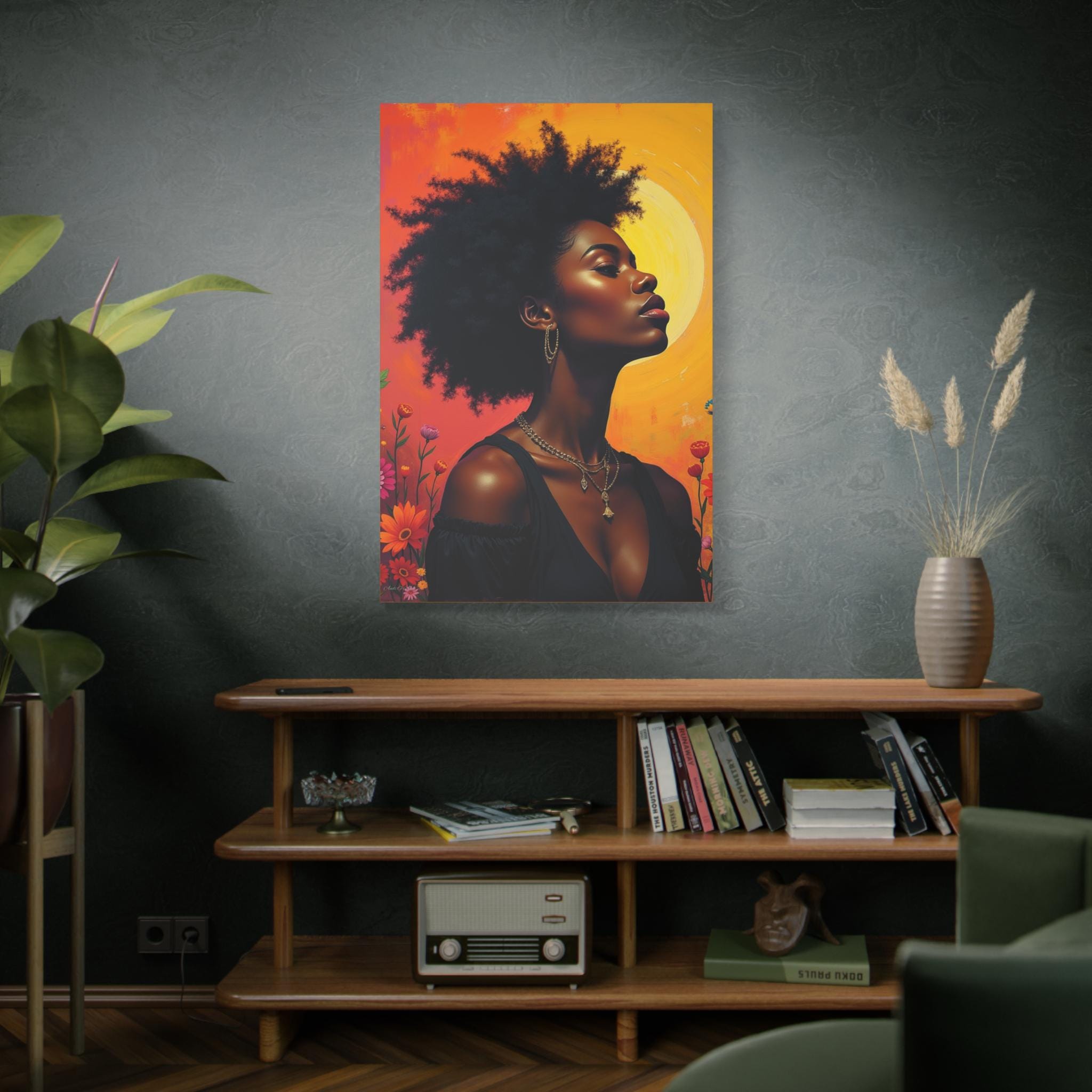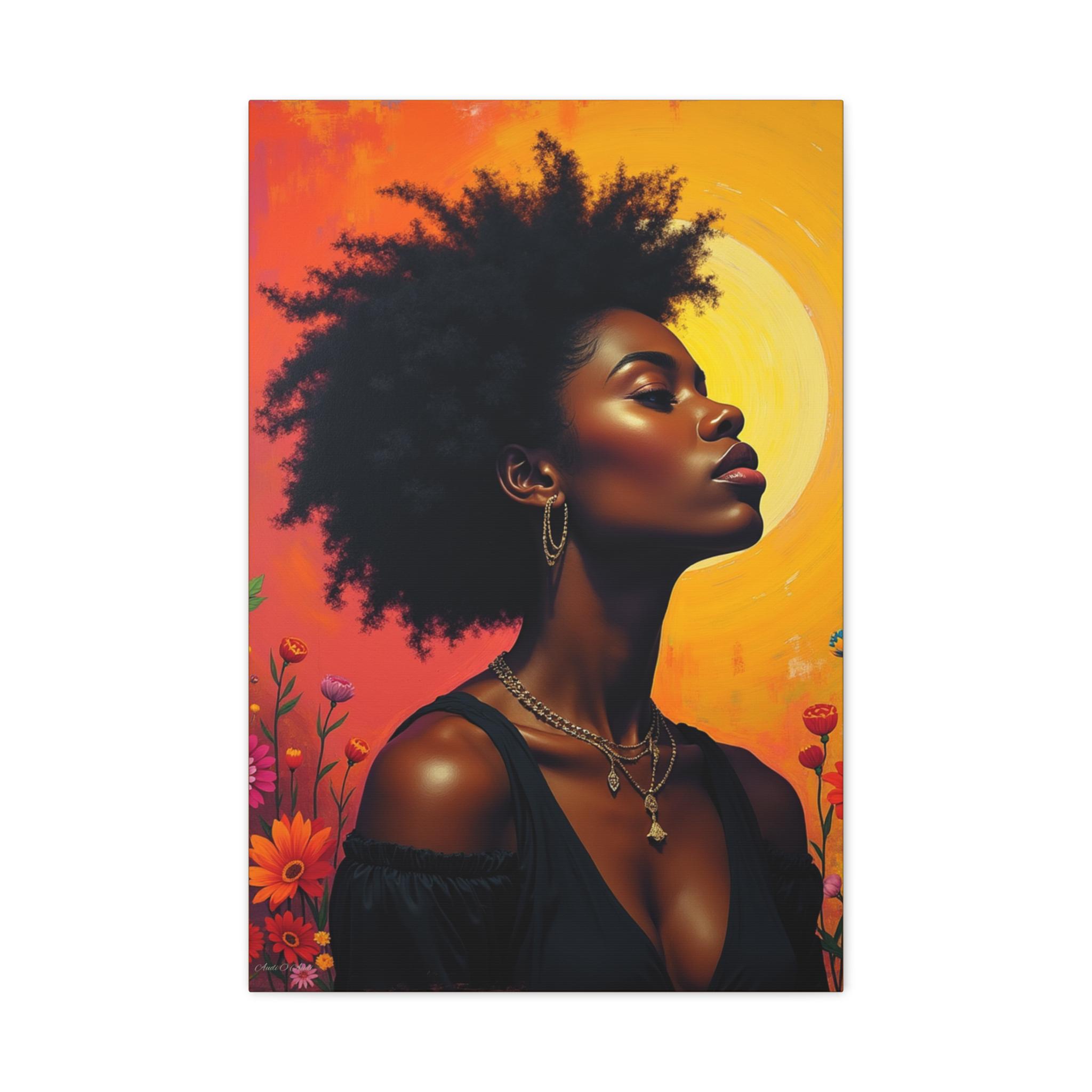 Solar Radiance, African American Woman Canvas print, Colorful Wall Decor, Home Aesthetic, Gift for Art Lovers, Boho Style.