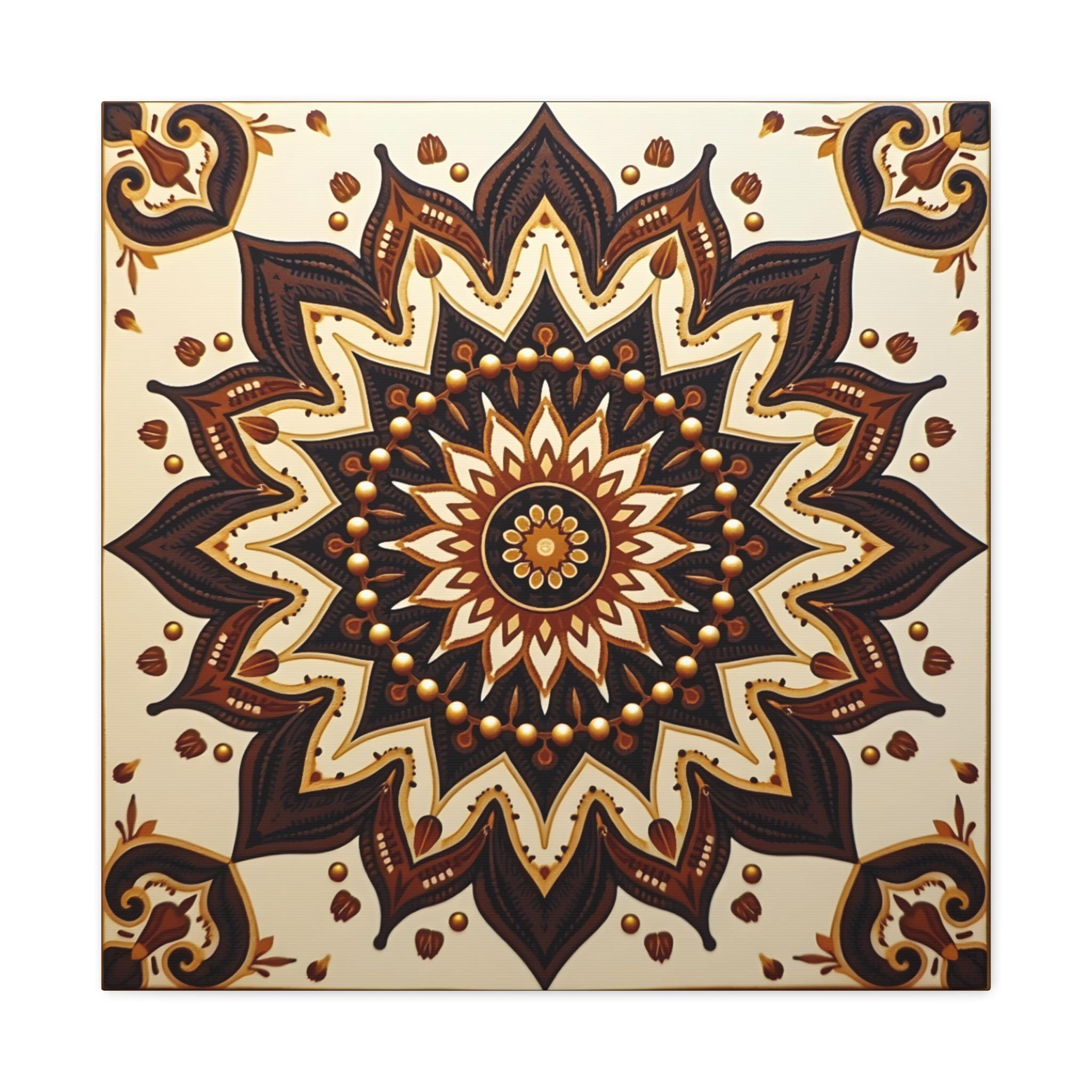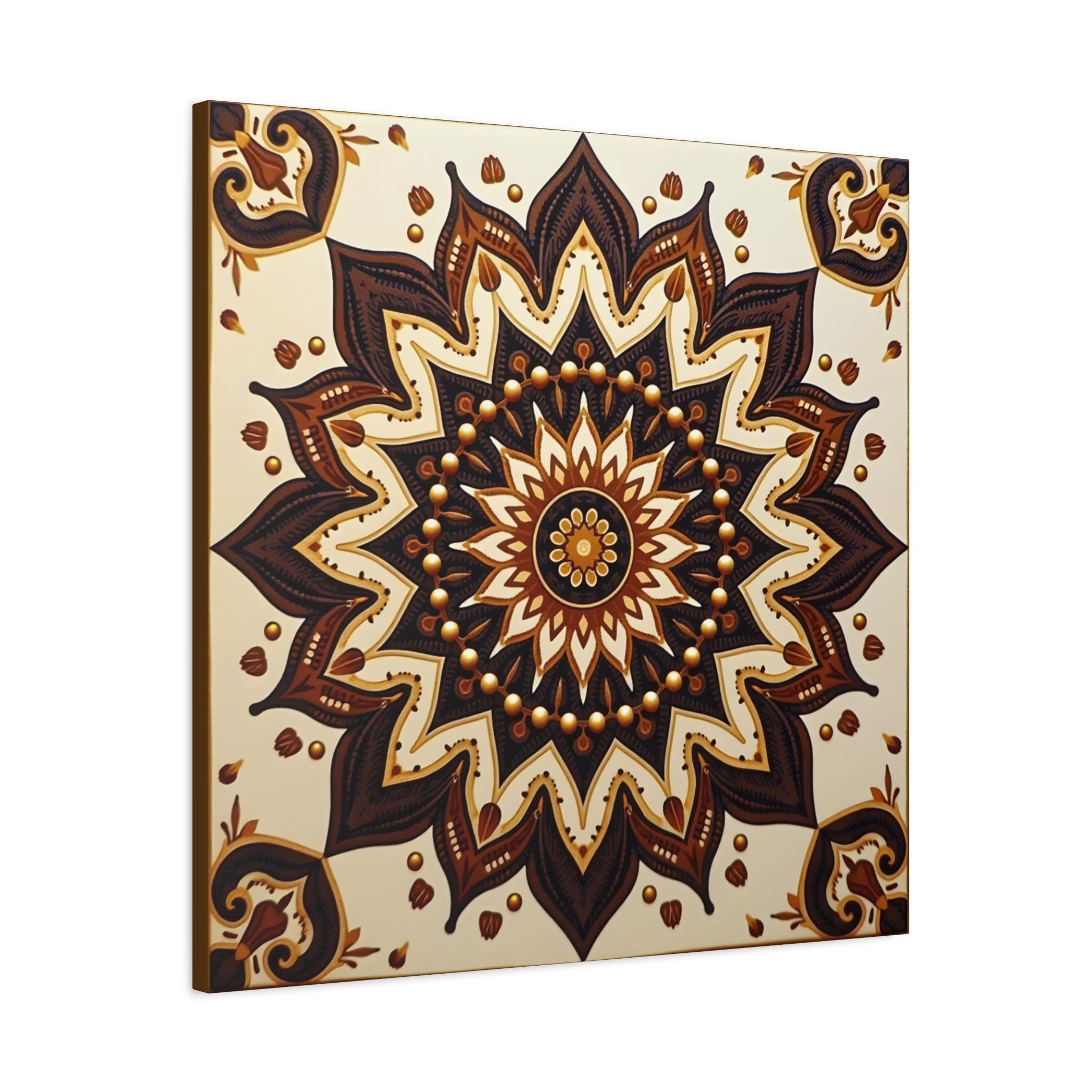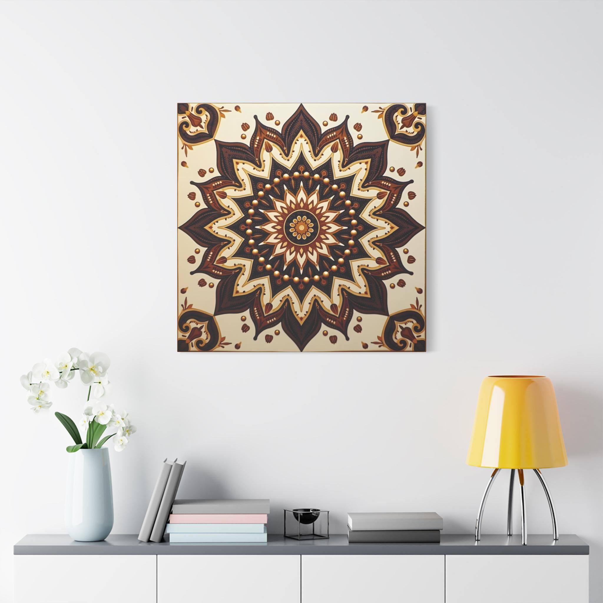 This is an excellent Giclée Canvas Print of a piece categorized as Contemporary Geometric Abstraction with strong influences from Traditional Mandala Art and Ethnic Decorative Motifs. The square format is perfectly suited to the symmetrical nature of the design.