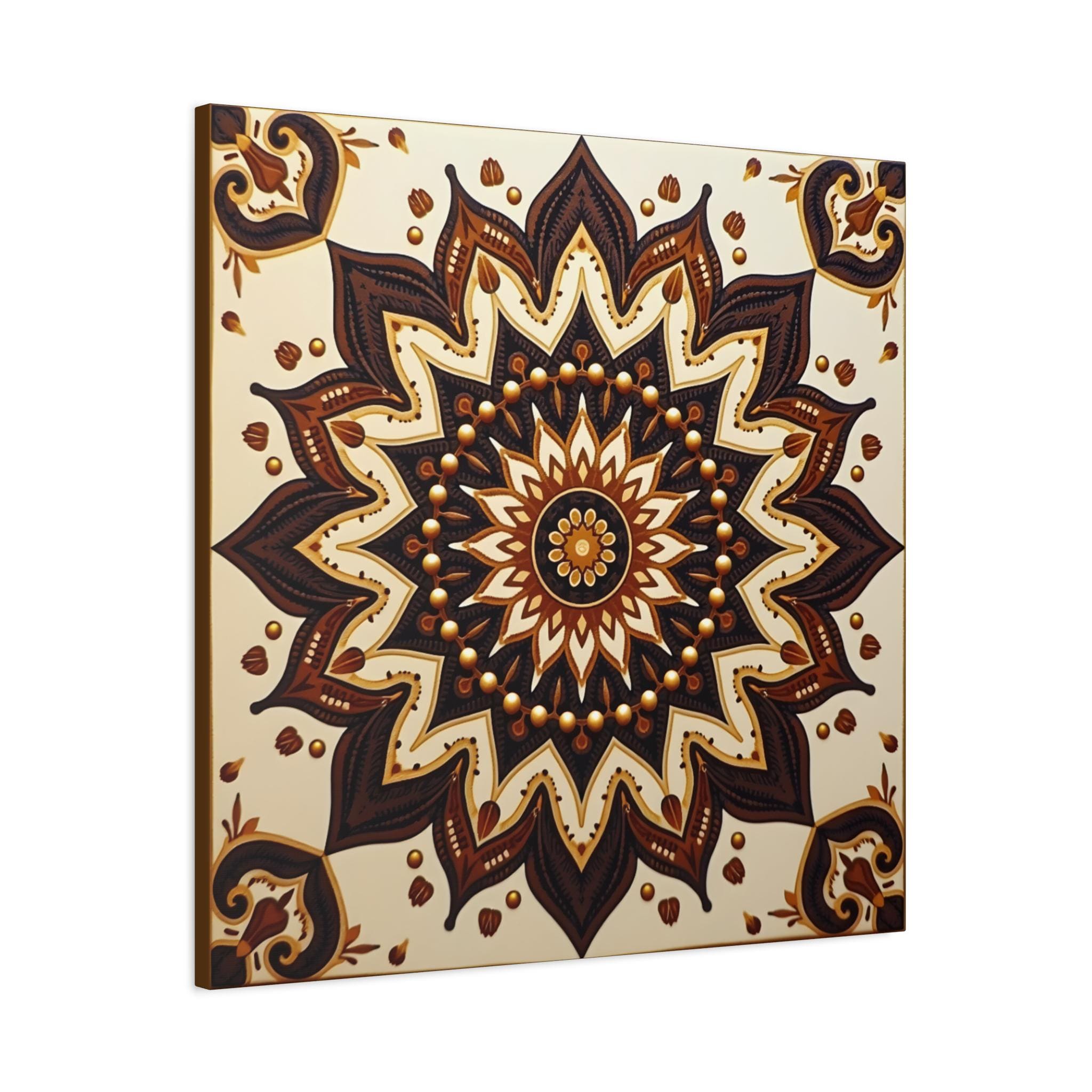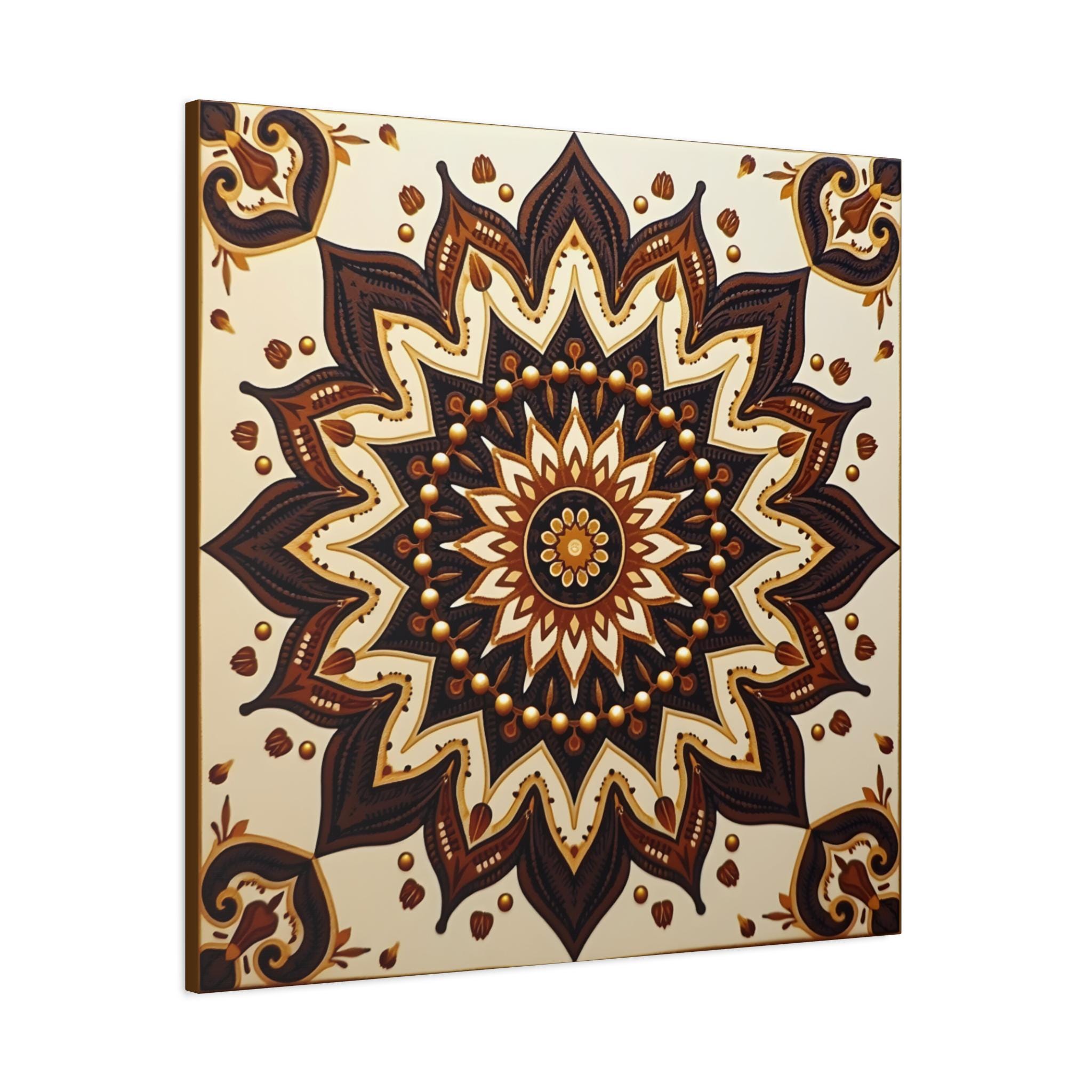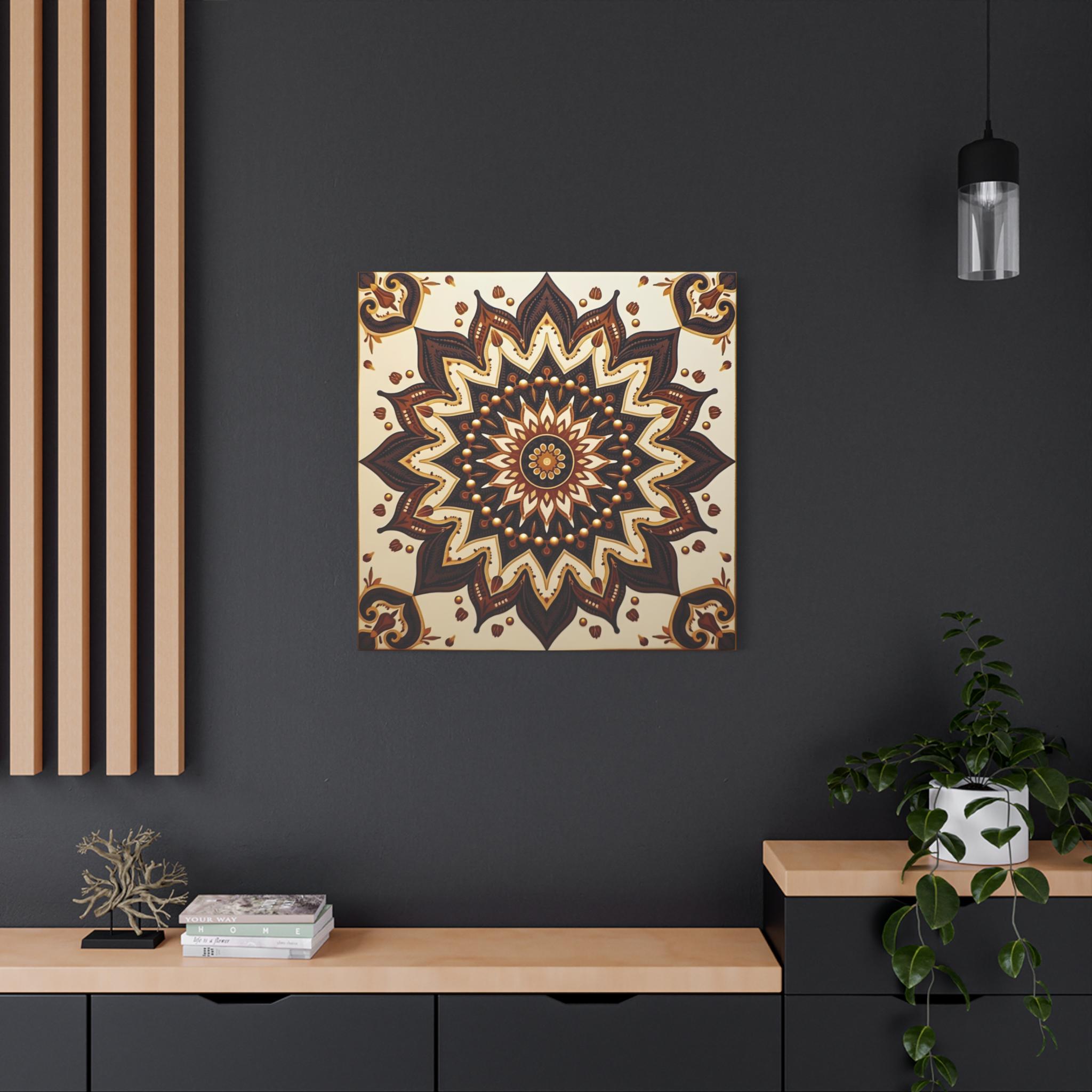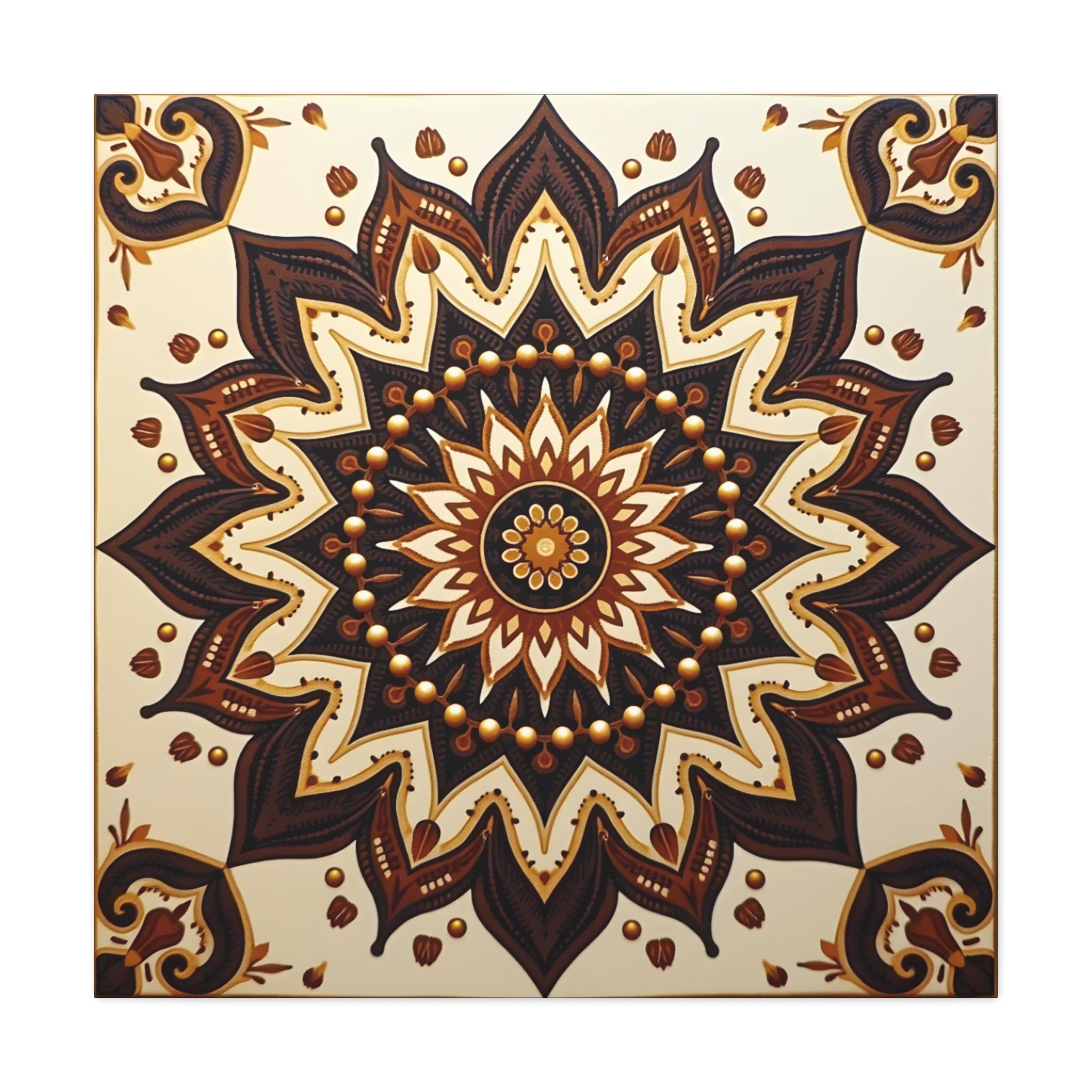 This is an excellent Giclée Canvas Print of a piece categorized as Contemporary Geometric Abstraction with strong influences from Traditional Mandala Art and Ethnic Decorative Motifs. The square format is perfectly suited to the symmetrical nature of the design.