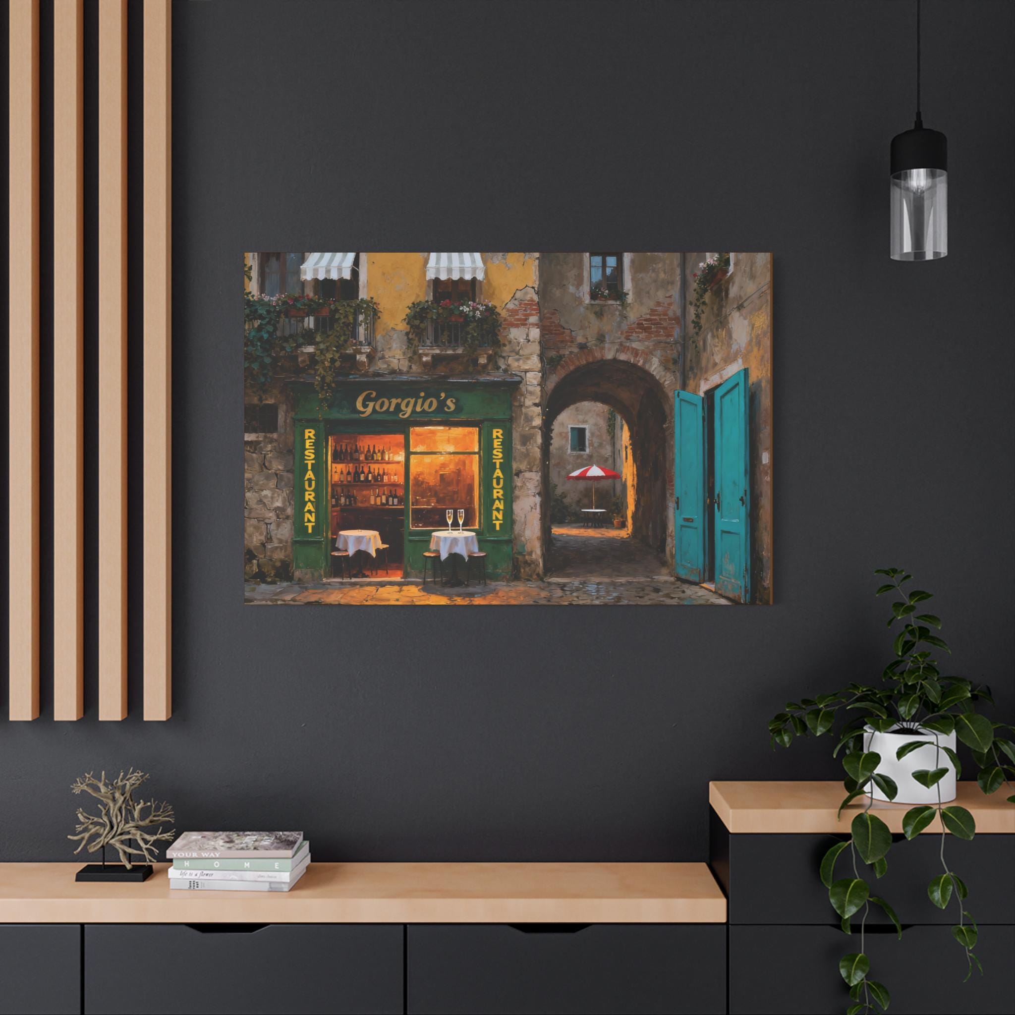 Transform your living space with this stunning stretched canvas print, perfect for adding a touch of elegance and character to any room. The vibrant colors and exquisite details of the artwork evoke a sense of tranquility and charm, reminiscent of quaint street-side cafés. Ideal for home decorators, art enthusiasts, or anyone looking to uplift their interiors, this canvas is not just a decoration but a conversation starter. It’s a great fit for holidays like housewarming, special celebrations, or as a thoughtful gift for friends and family. Bring life to your walls and create an inviting atmosphere that inspires relaxation and joy.