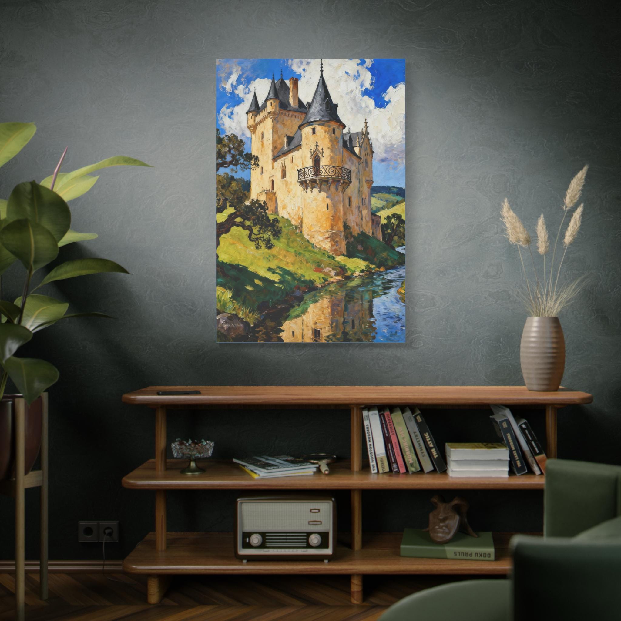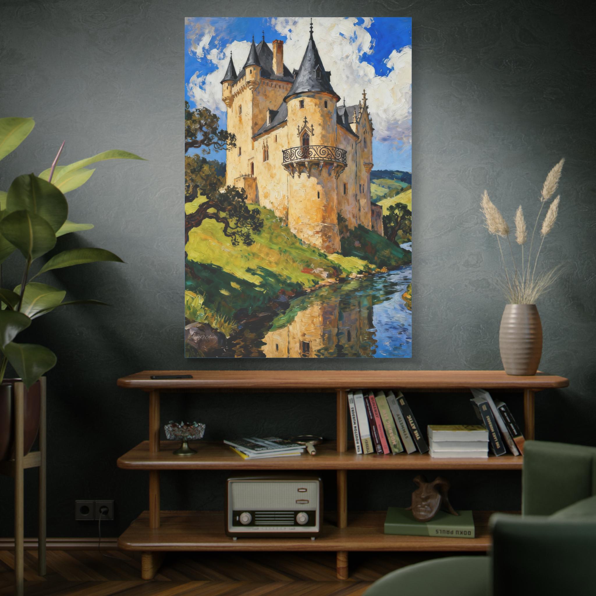Elevate your living space with this Vintage Castle Landscape Stretched Canvas Art Print. Perfect for adding a touch of sophistication to your home decor, this canvas is a great gift idea for art lovers. Ideal for the living room, this wall decor piece exudes a vintage vibe and warmth, making it a cozy addition to any home. Relevant for housewarmings, birthdays, and holidays.