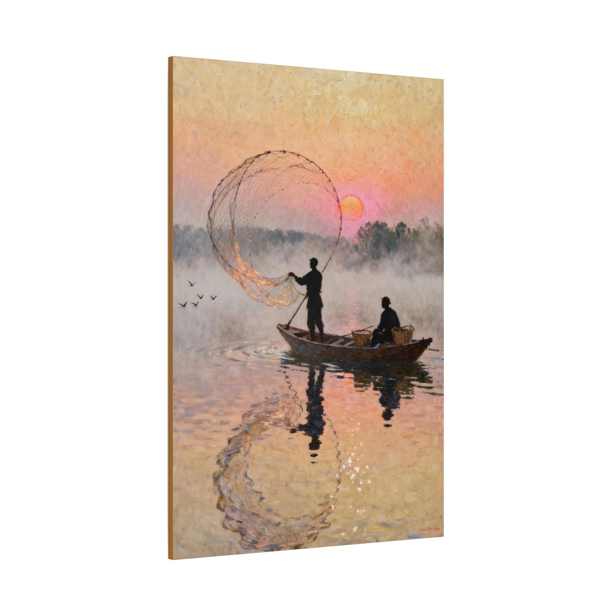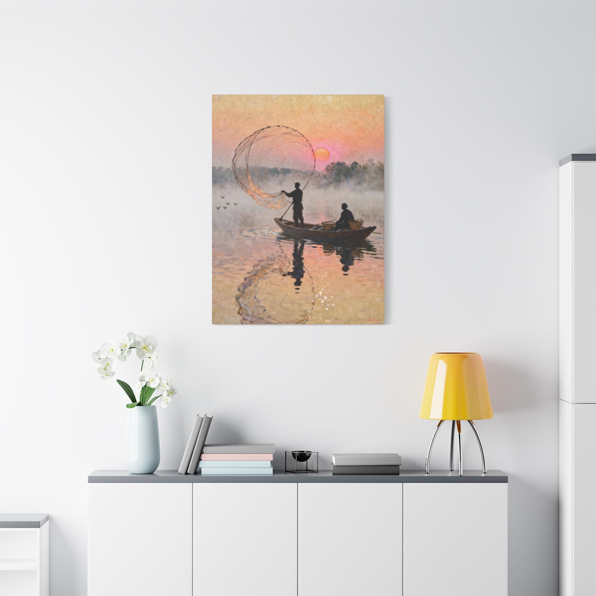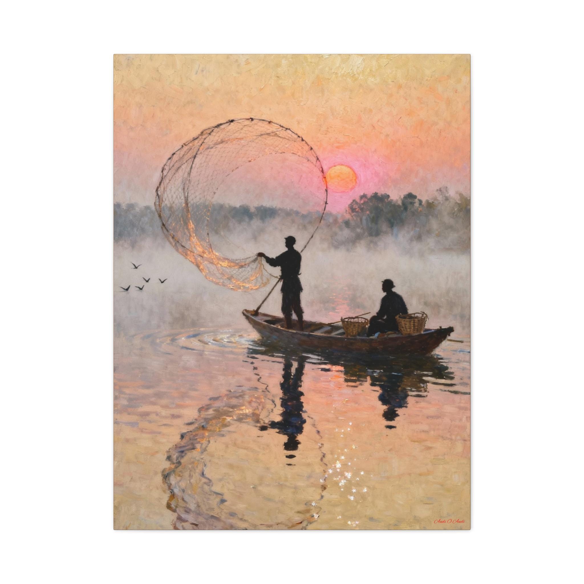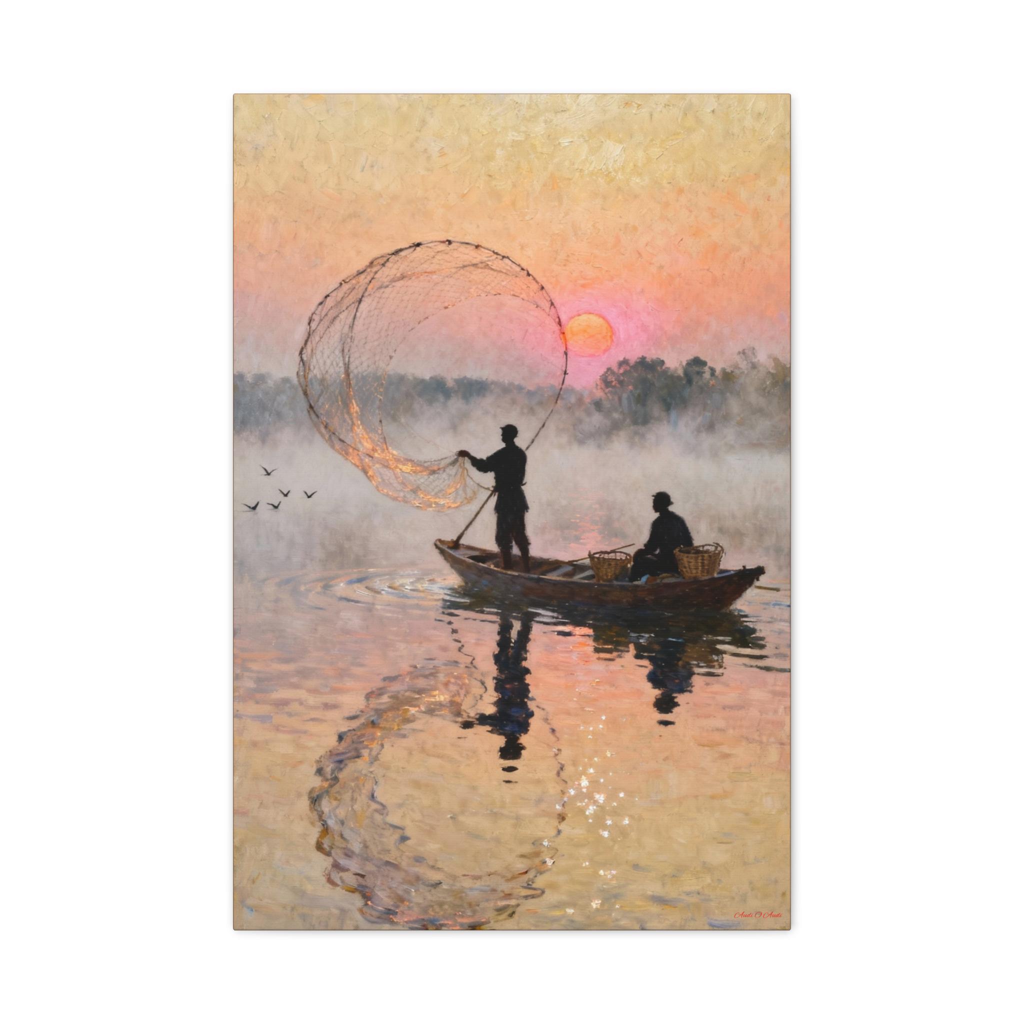 Fishermen at Sunrise Canvas Print: Vintage Fishing Scene Wall Art