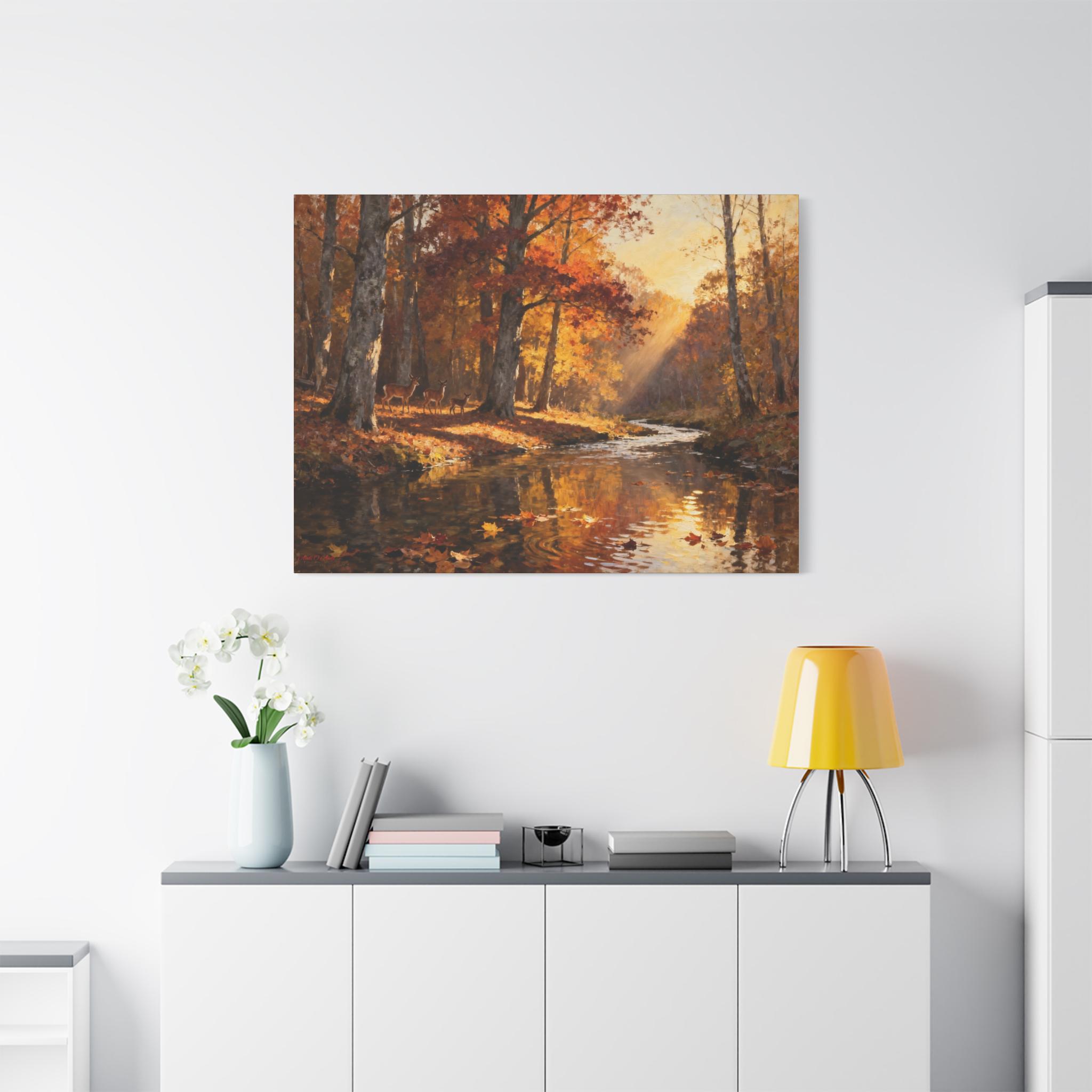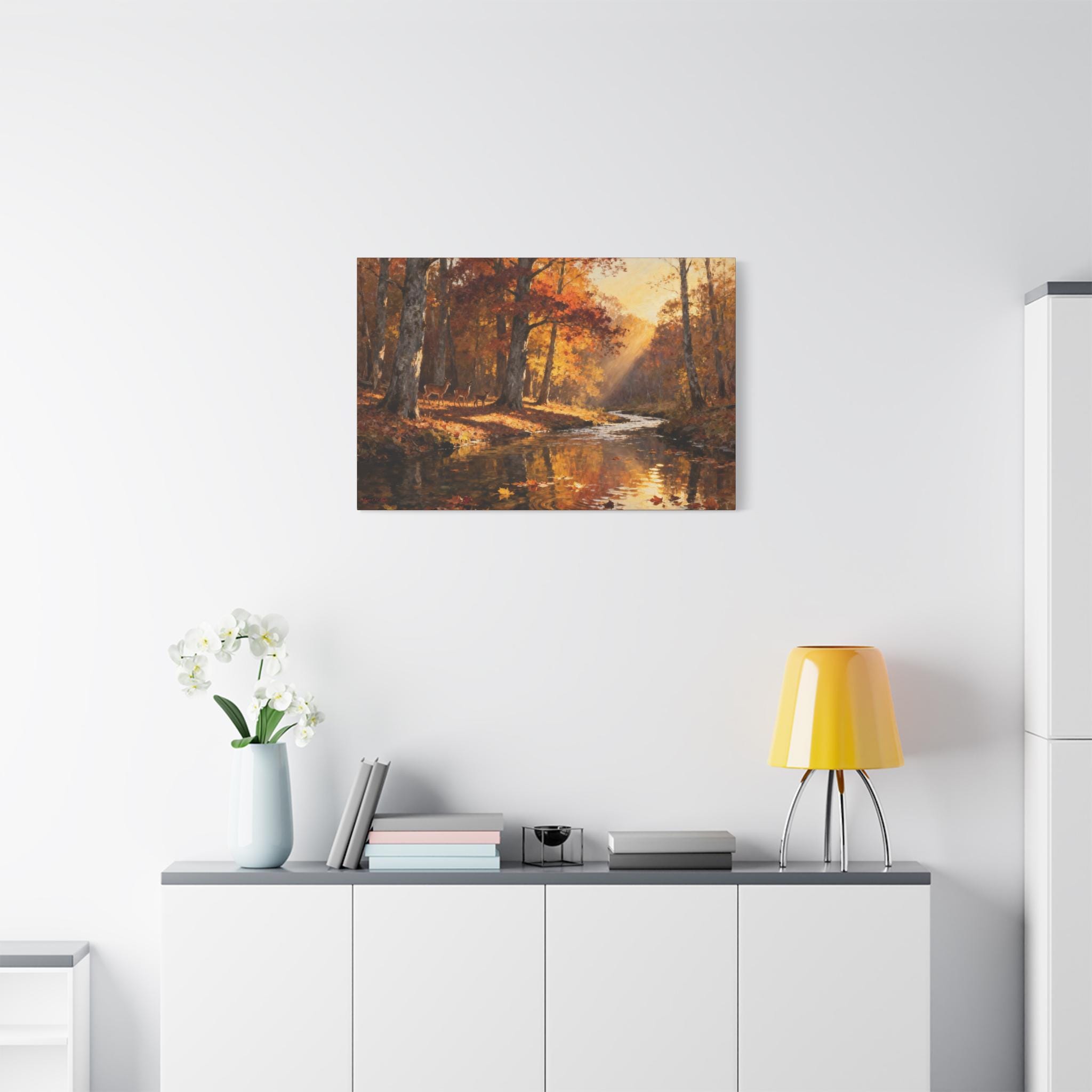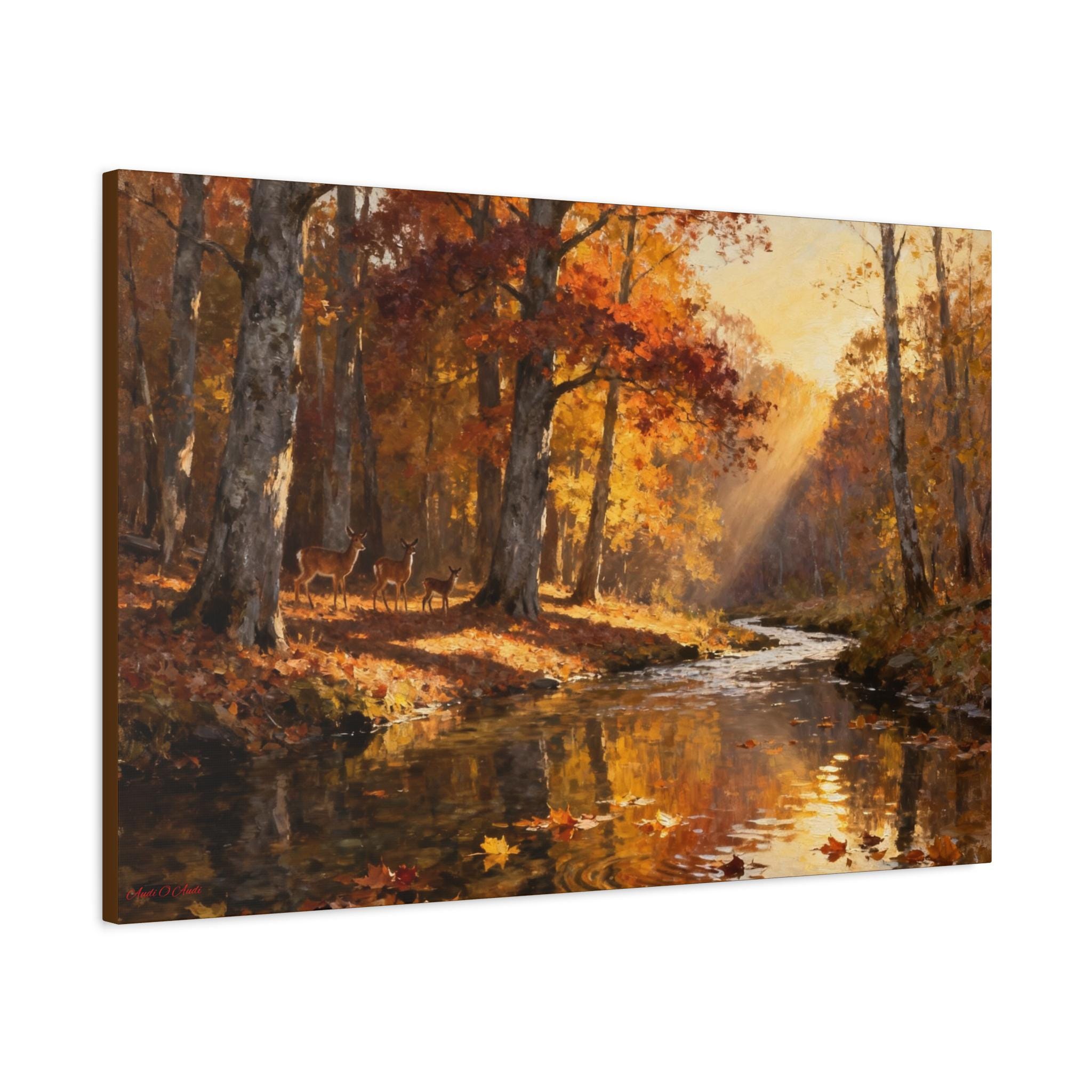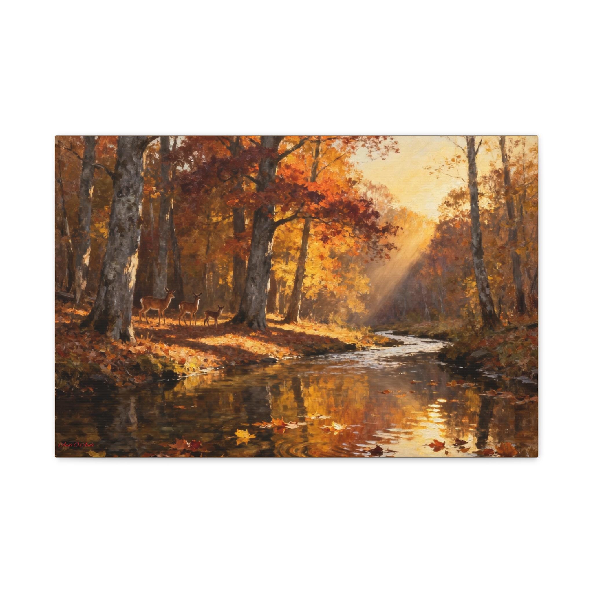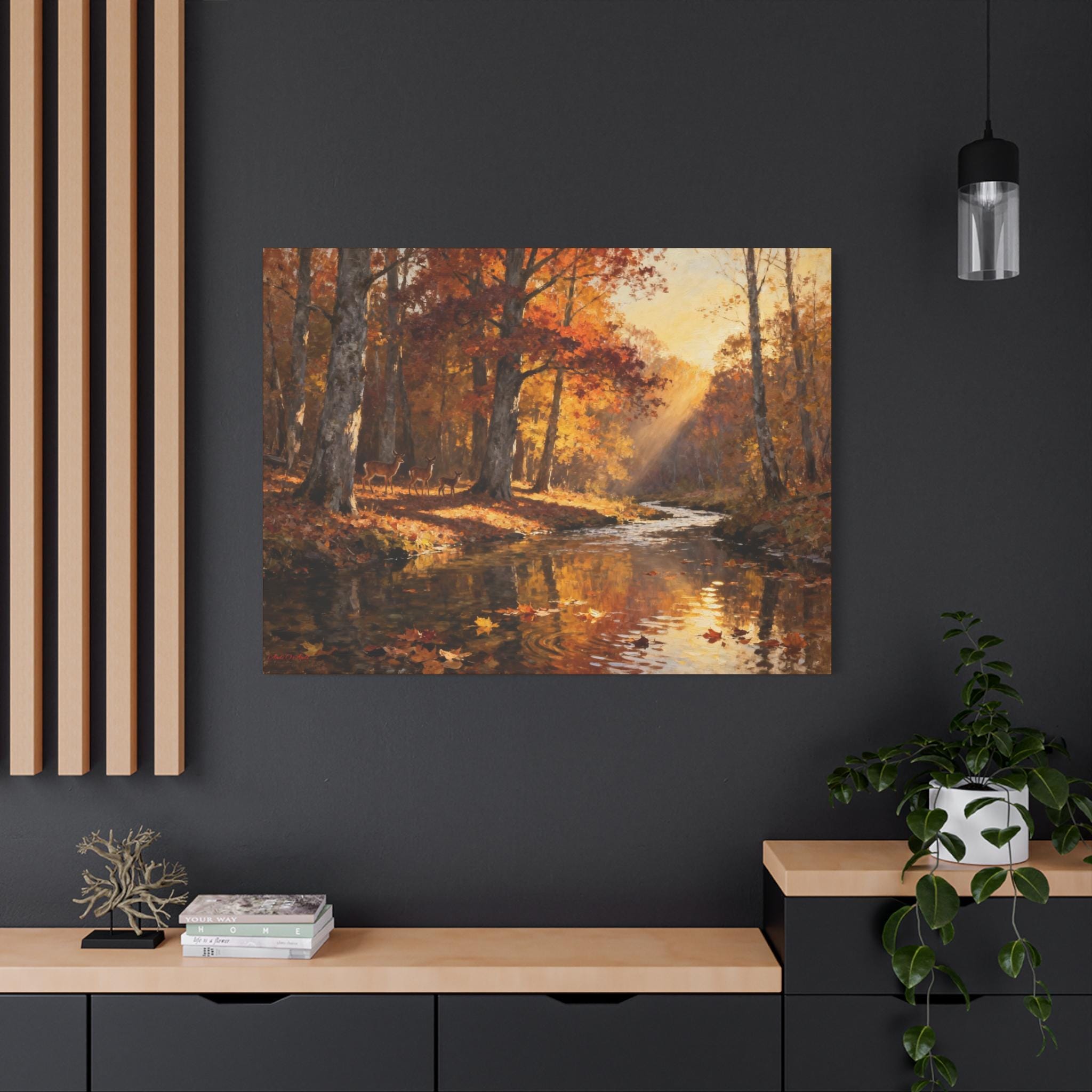 Autumn Landscape Canvas Wall Art: Deer at Golden Stream