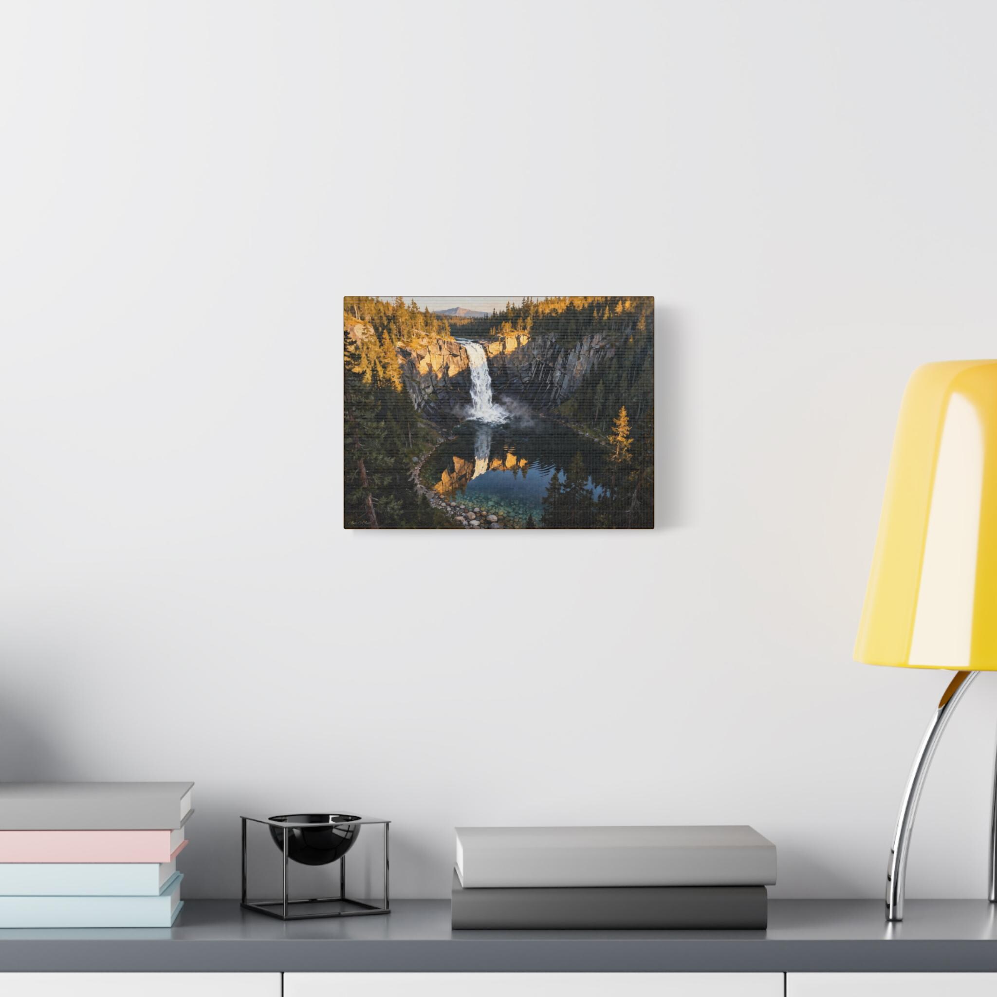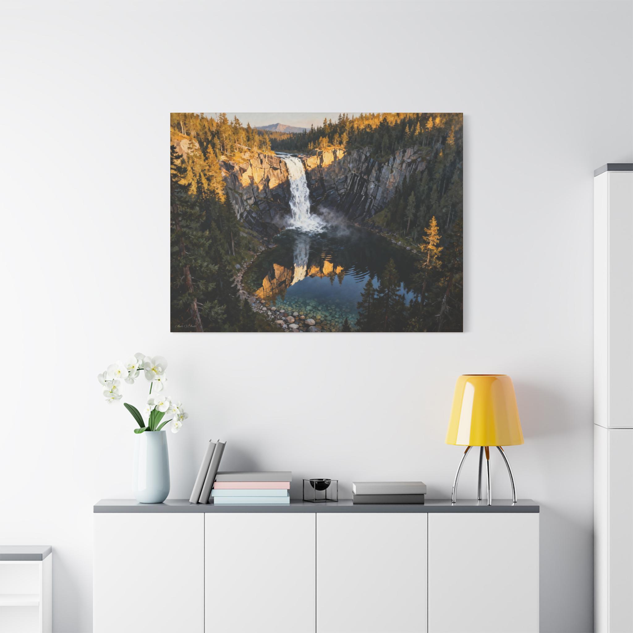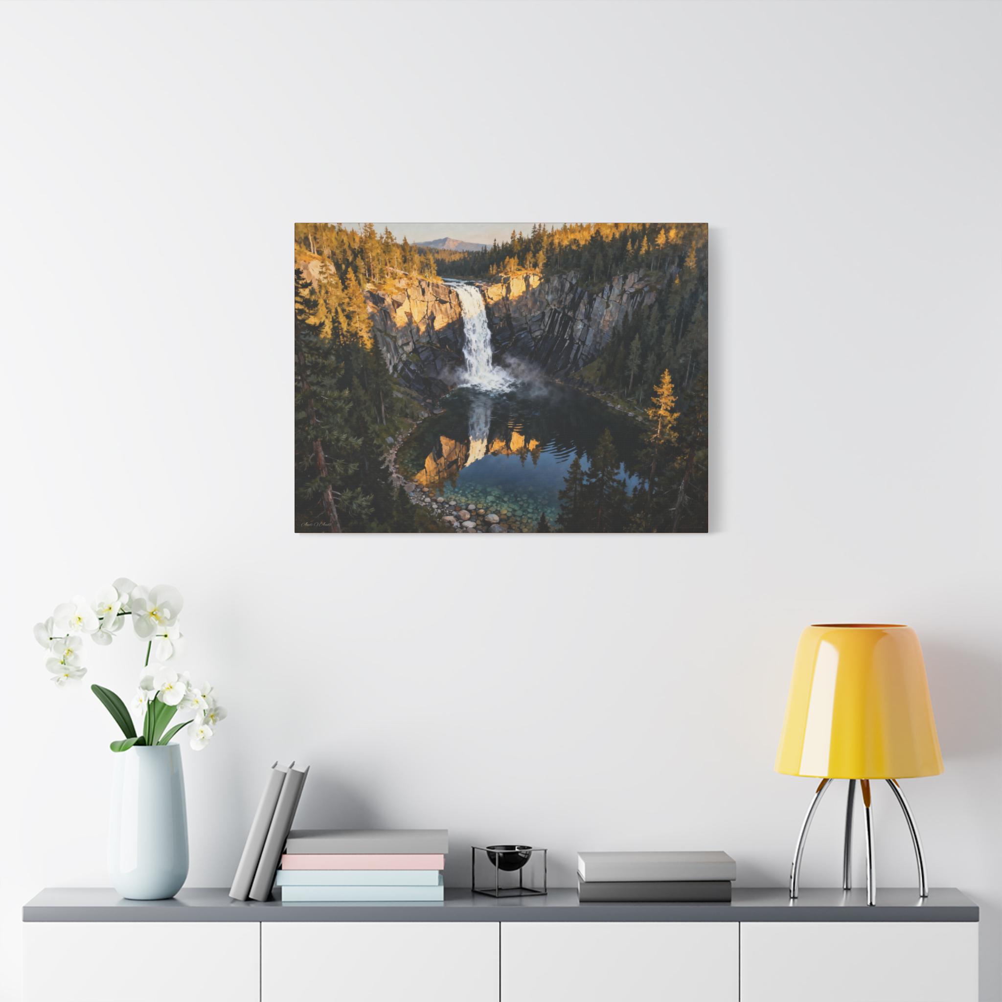 Waterfall & Mountain Canvas Wall Art: Rustic Nature Landscape Print