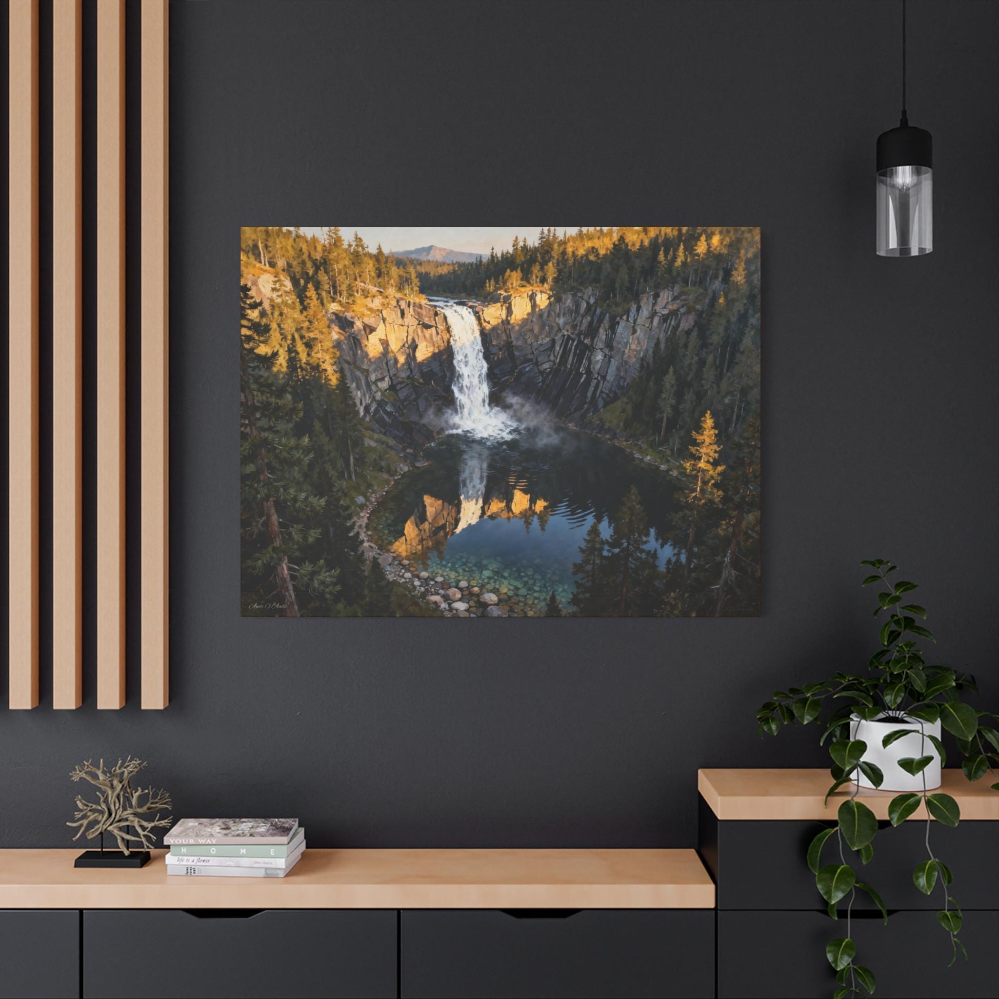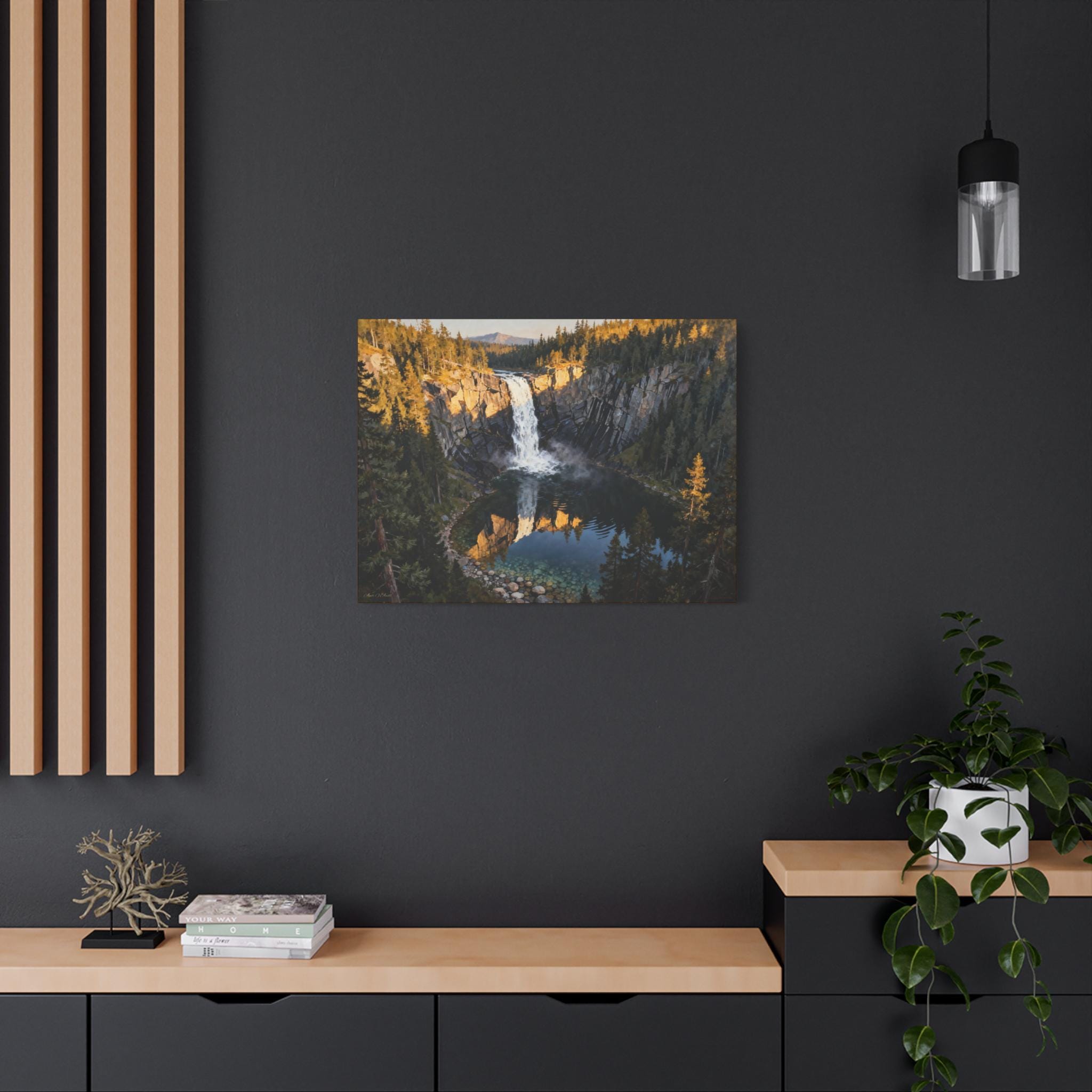 Bring the tranquility of nature into your home with this majestic waterfall canvas. Perfect for nature lovers and those who appreciate rustic home decor. Ideal for celebrating Earth Day, Arbor Day, or as a gift for any nature enthusiast.
