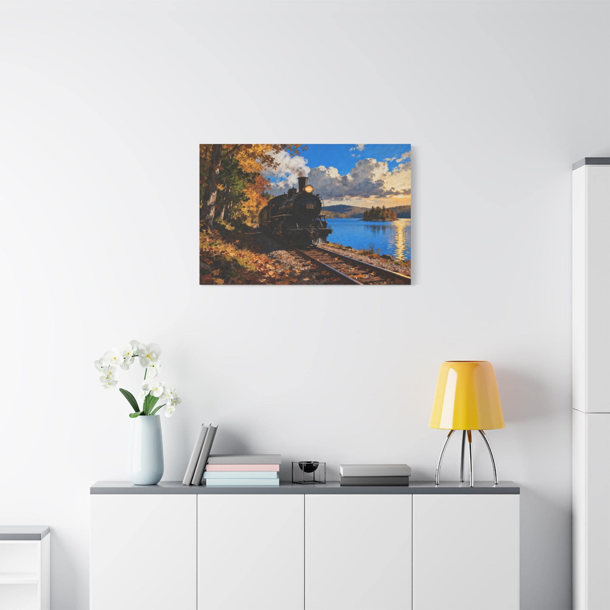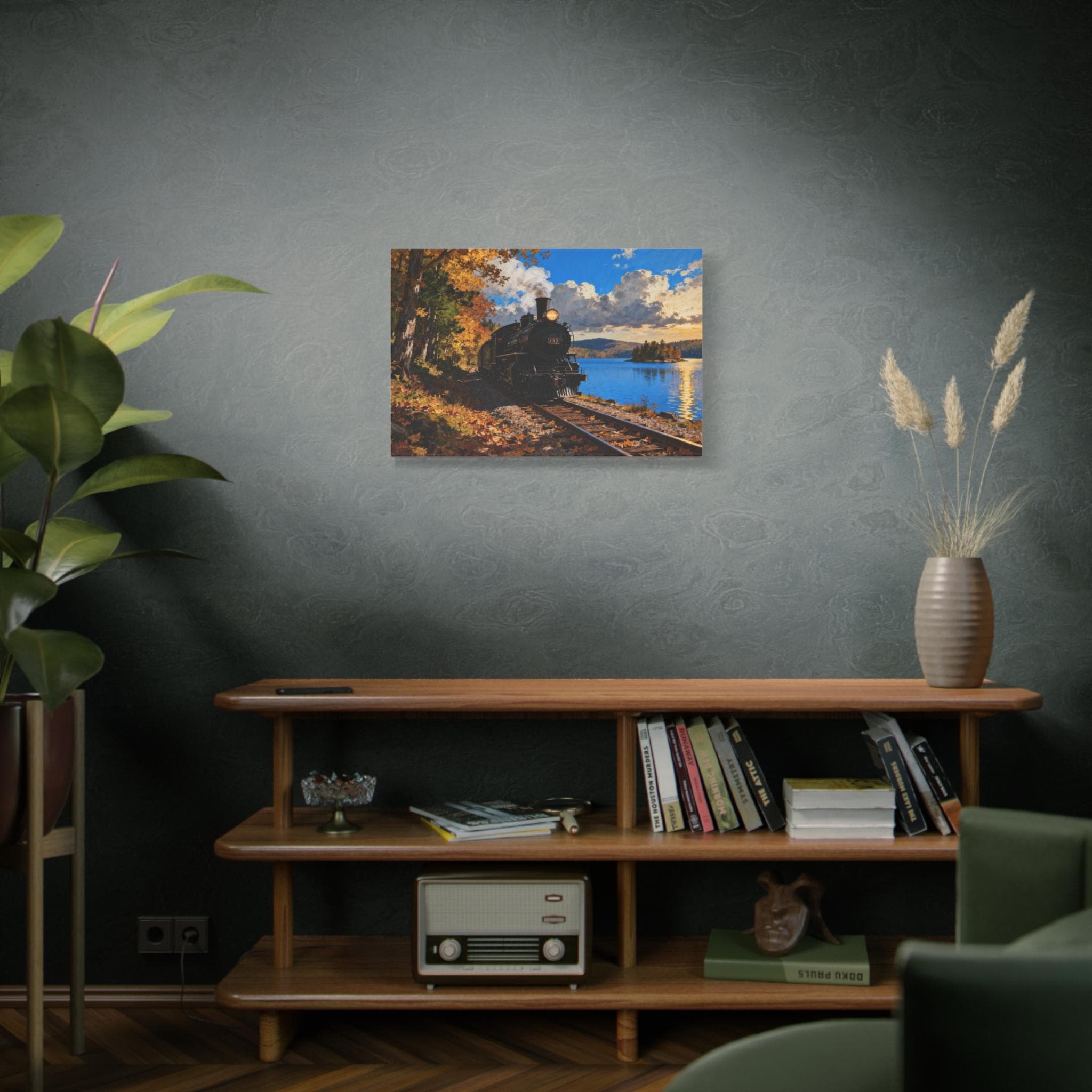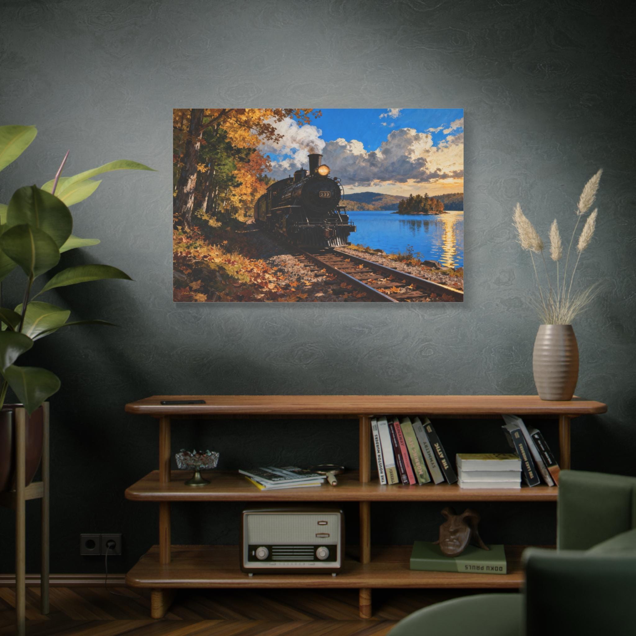 Premium Canvas: Printed on high-grade, archival canvas that ensures the brilliant orange leaves, deep blues, and the metallic sheen of the train remain vivid and sharp.