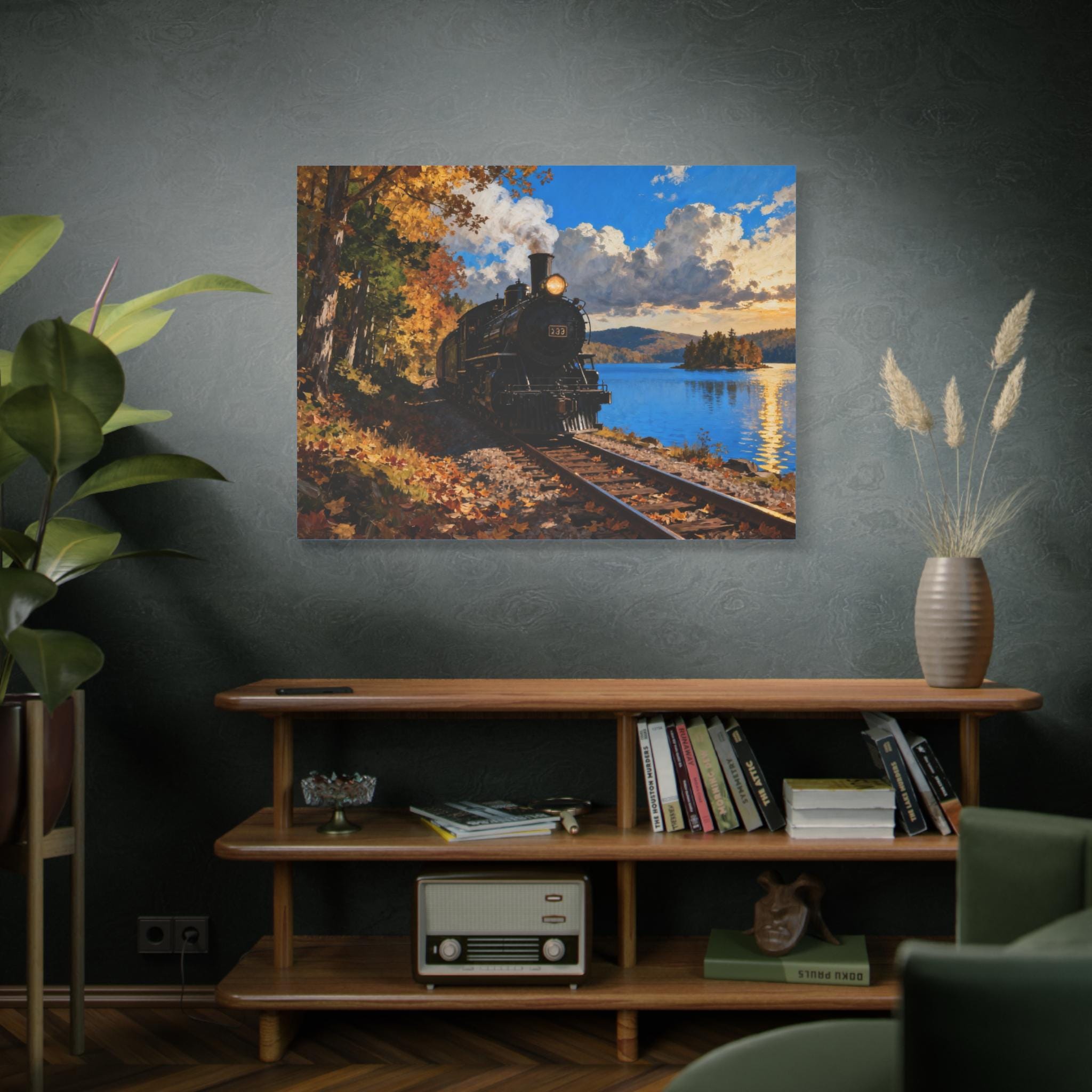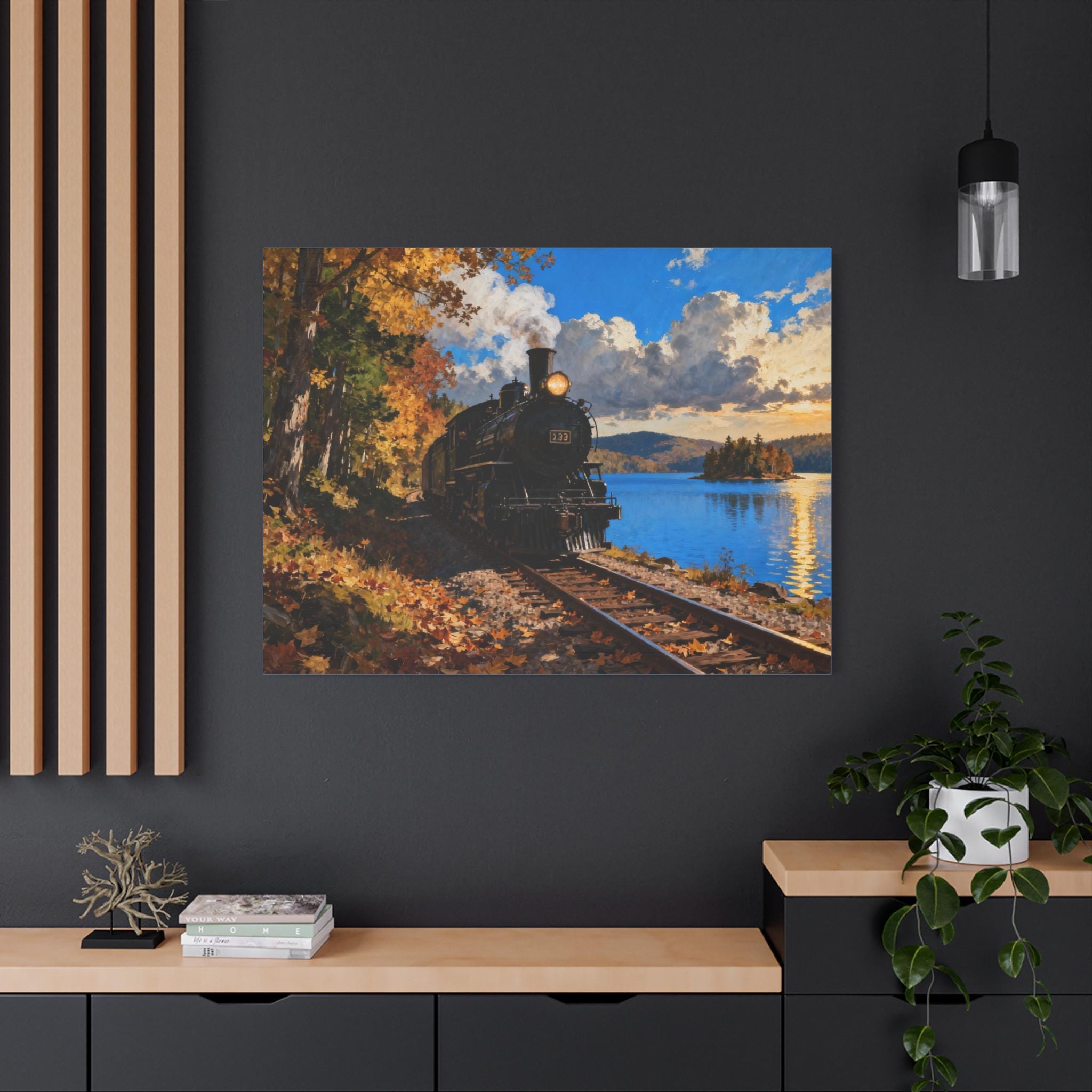 Transform your space with this stunning Matte Canvas, a perfect blend of artistry and quality. Featuring a serene landscape of a steam locomotive by a lakeside, this canvas evokes a nostalgic and peaceful vibe, ideal for creating a warm atmosphere in any room. Perfect for home decorators, art lovers, and train enthusiasts, this piece makes an excellent addition to your living room, office, or bedroom. It’s a thoughtful gift for occasions such as housewarmings, birthdays, and even holidays like Christmas or Father's Day, reminding us of the beauty of nature and history.