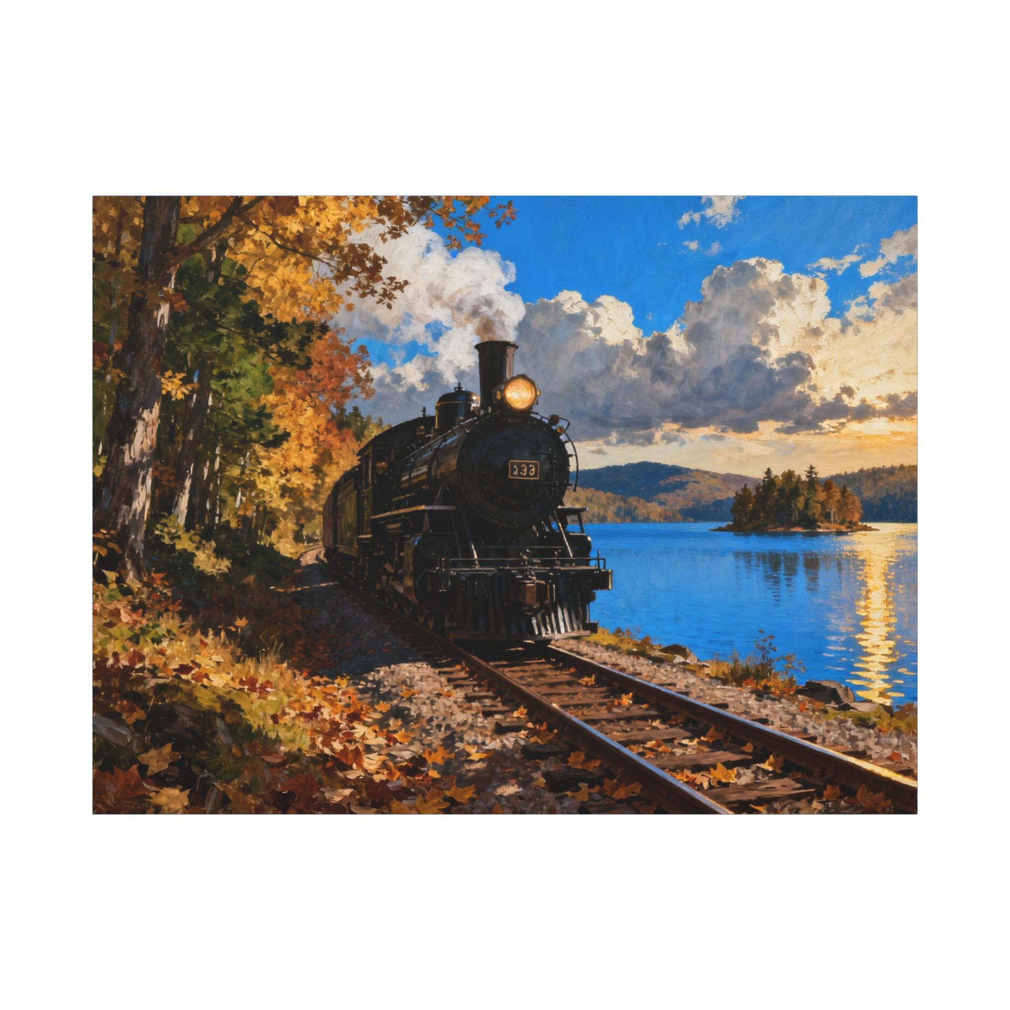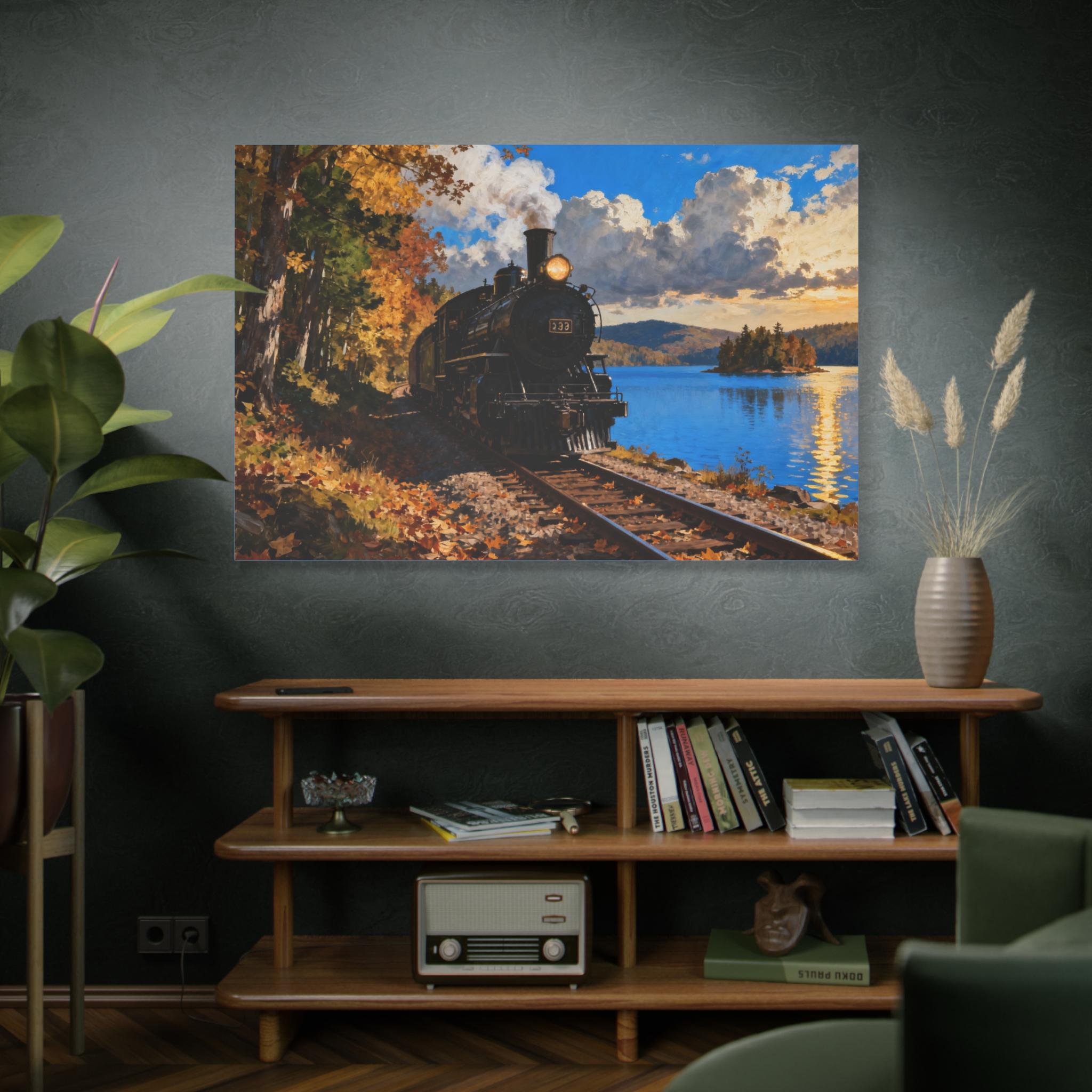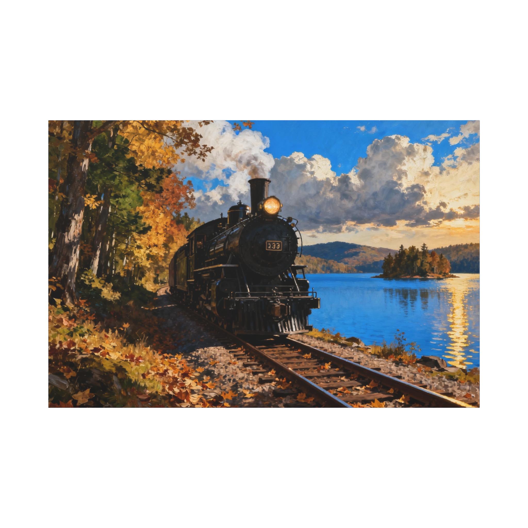 Vintage Train Canvas Print: Lakeside Steam Locomotive Wall Art