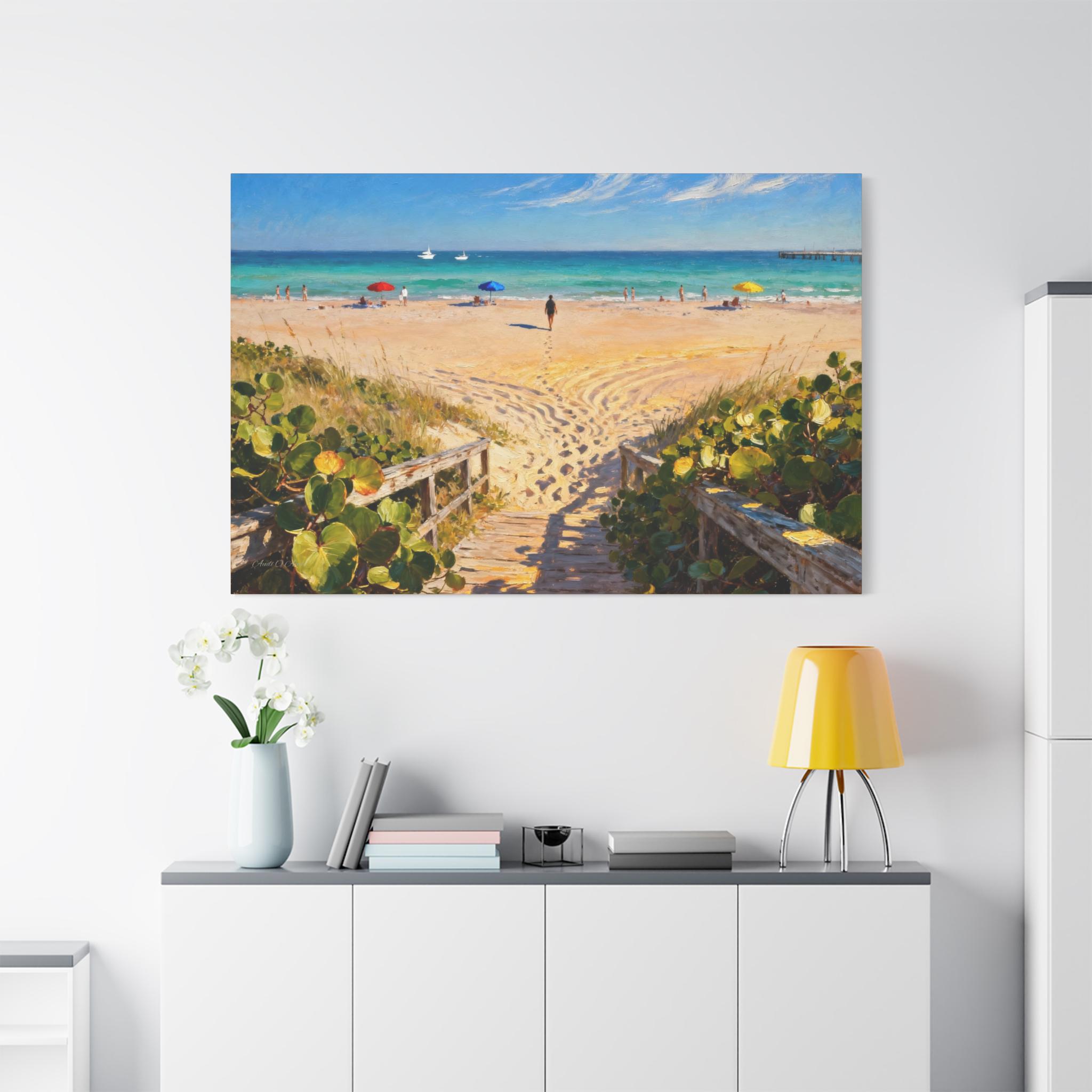 Bring the calming beach vibes into your home with this Path to the Sea Canvas Print. Perfect for beach lovers, this coastal decor piece adds a touch of the ocean to any room. Ideal for home improvement projects or as a thoughtful gift for special occasions such as birthdays or housewarmings.