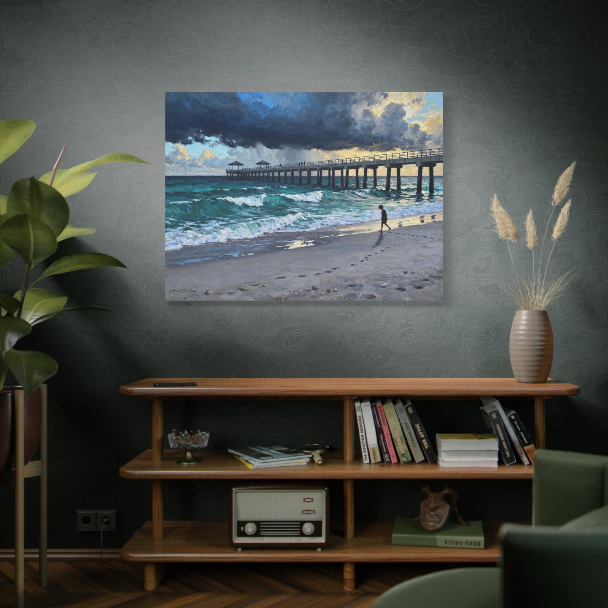 Solitude by the Shore Coastal Canvas Art offers a peaceful and serene vibe, perfect for those who love coastal landscapes and relaxing beach scenes. It can be a great addition to a living room, bedroom, or office space, bringing a touch of tranquility to the decor. Ideal for beach lovers, nature enthusiasts, and those who appreciate art inspired by the sea. Relevant for home decor, beach house decor, relaxation spaces, and coastal-themed rooms.