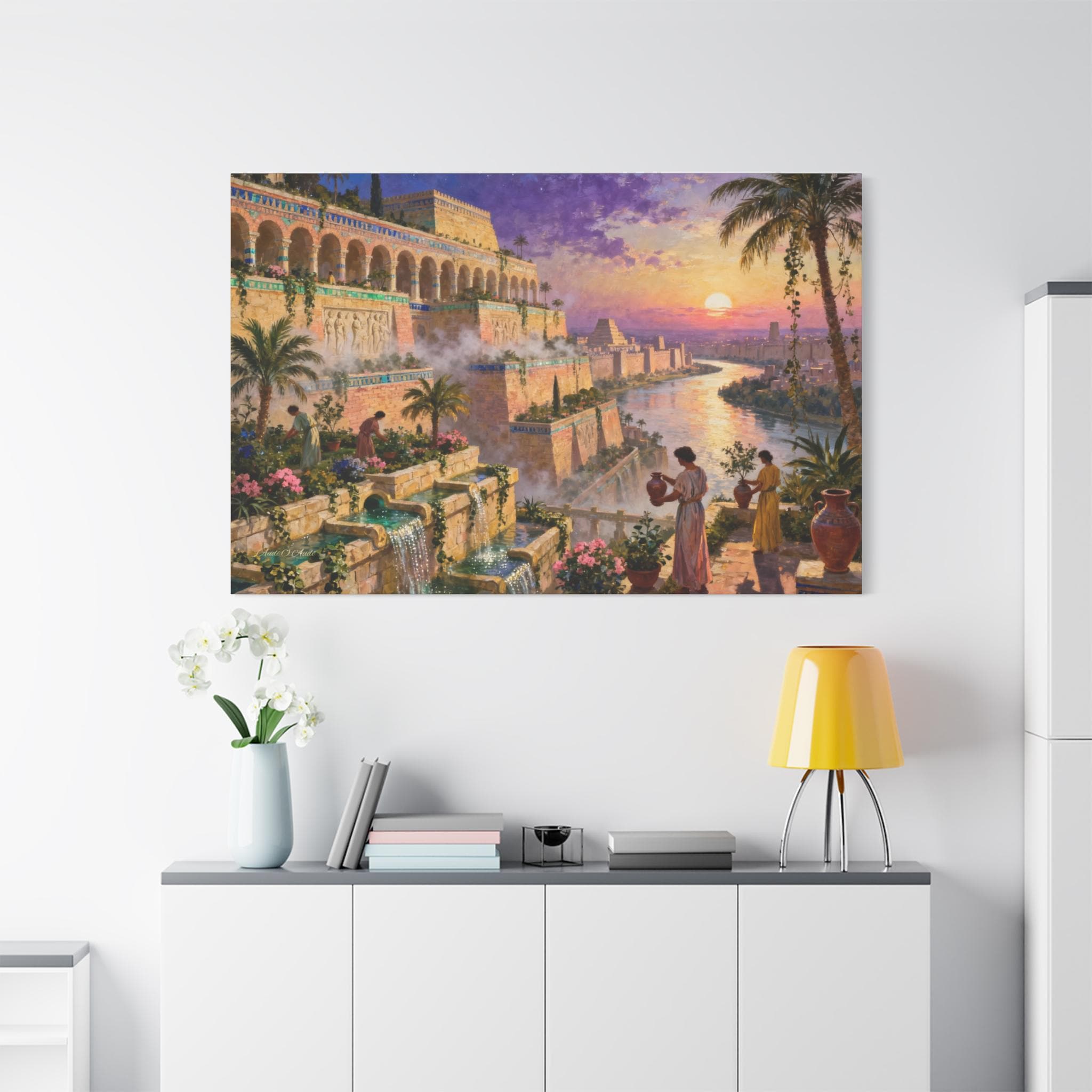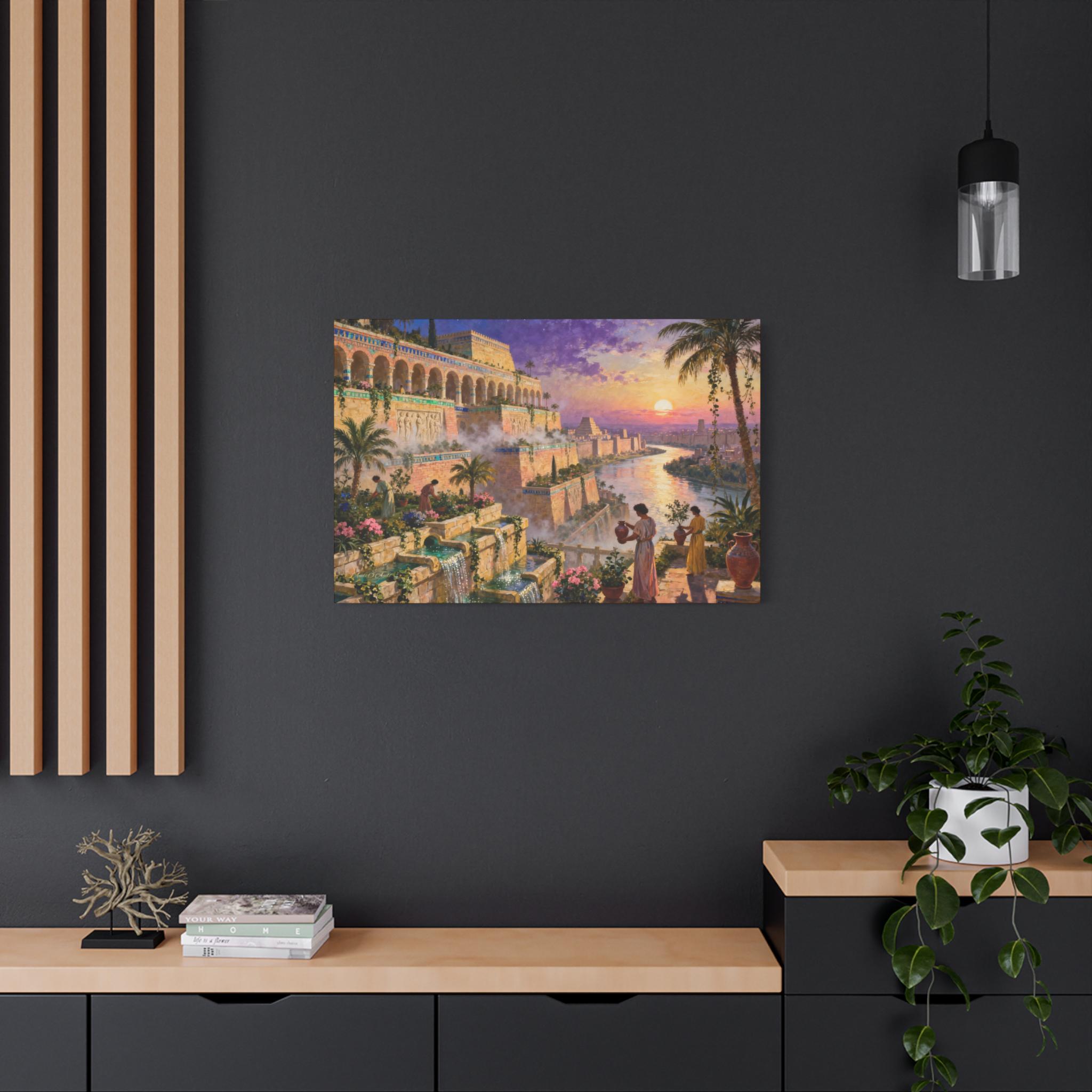The Canvas brings the Majesty Of Babylon into your home with a serene landscape artwork. Perfect for art lovers looking to add a gallery wall decor to their living room. A sustainable product made with cotton and polyester composite canvas and pine wood frame, printed with latex inks. Ideal for those looking to elevate their home interior with a unique piece of art.