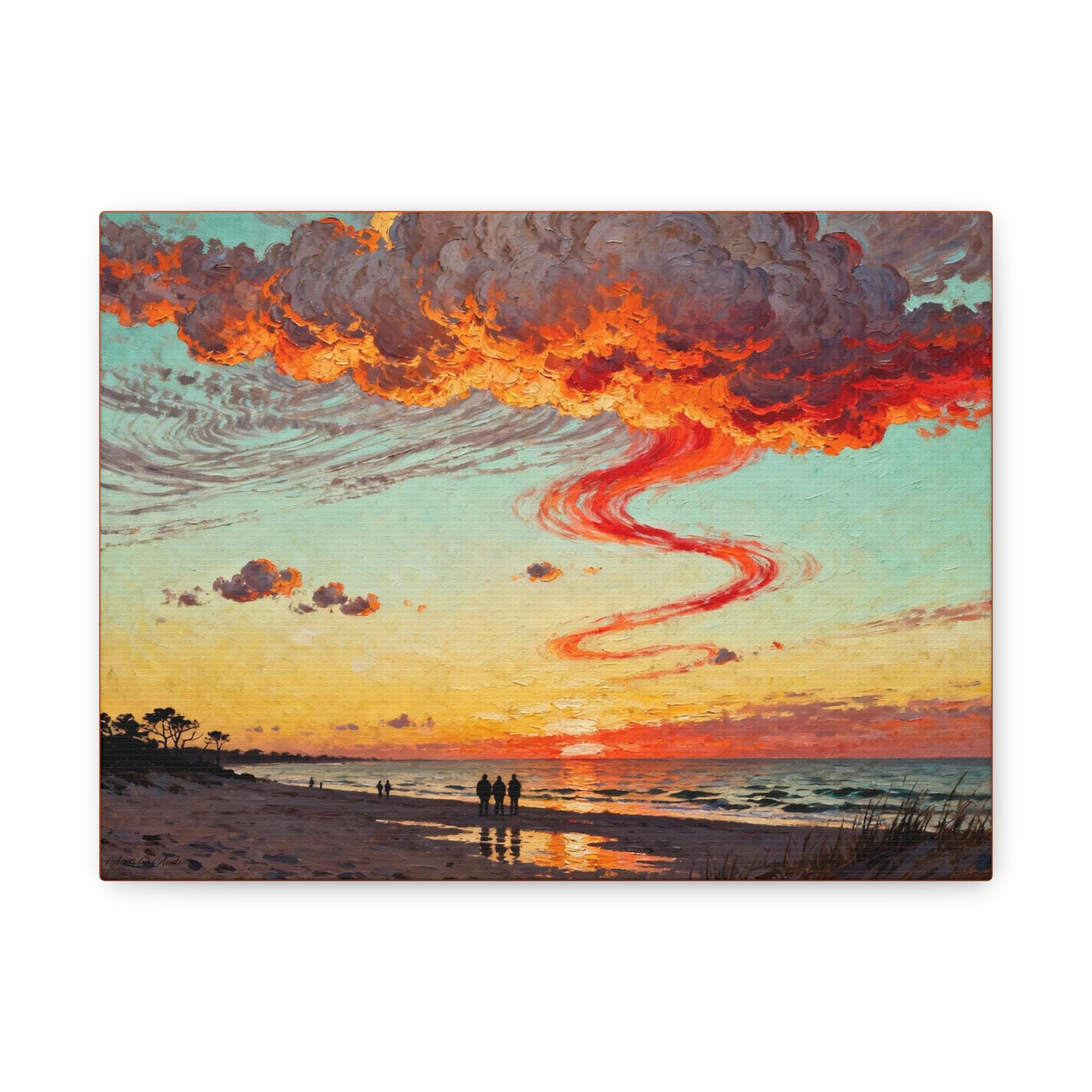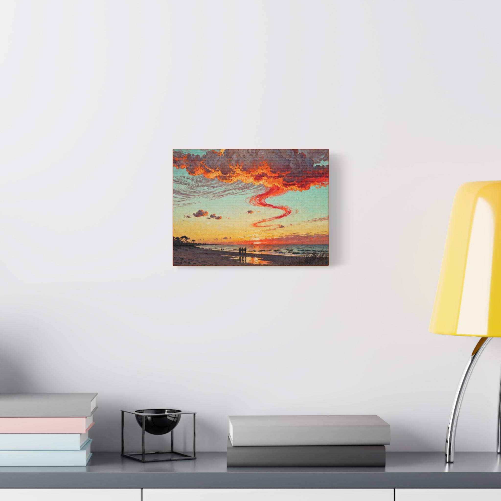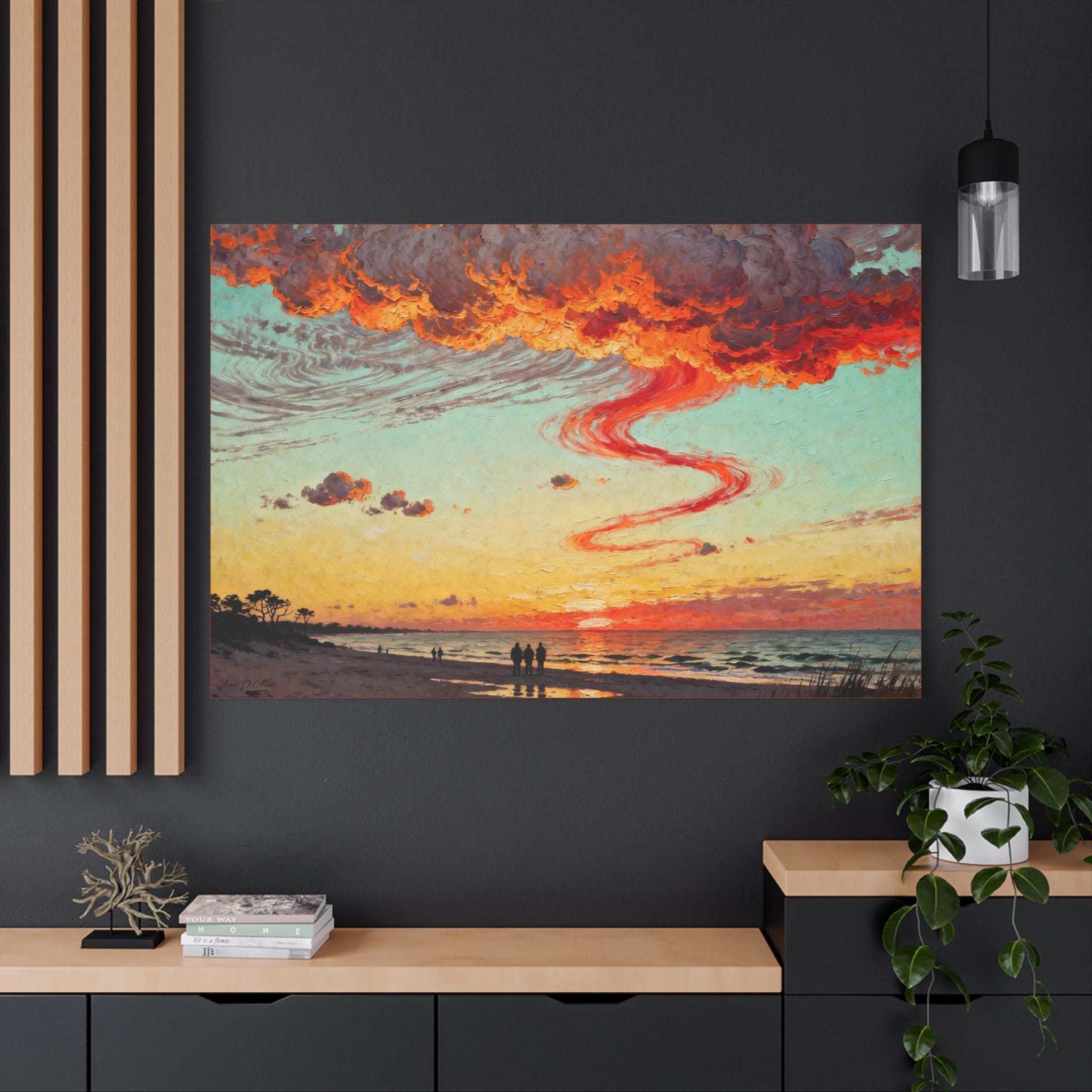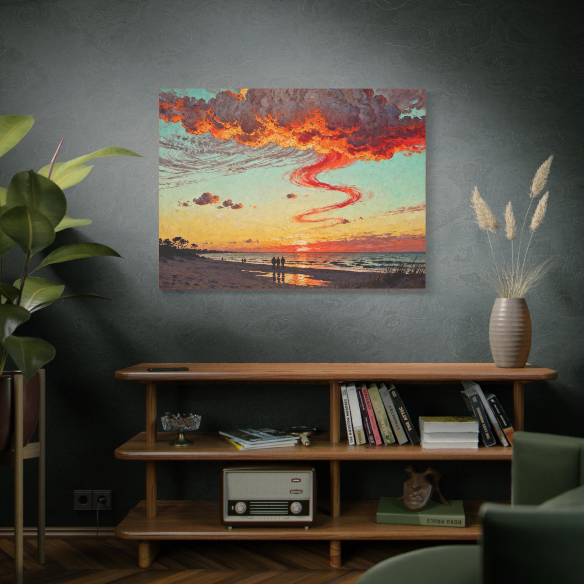 Canvas Art Print, Ember Horizon Beach Wall Decor, Coastal Home Decoration, Gifts for Ocean Lovers, Colorful Landscape Painting, Stretched