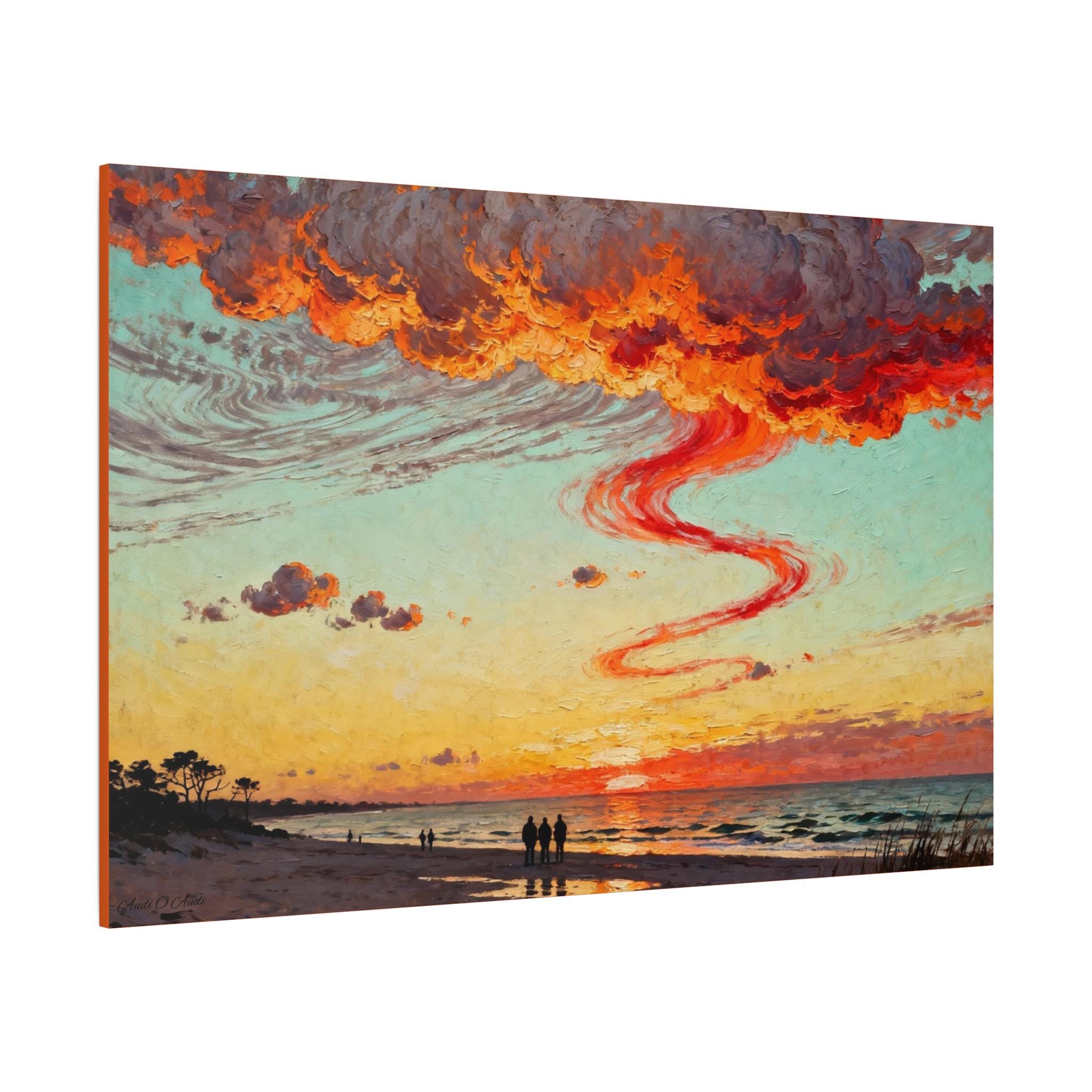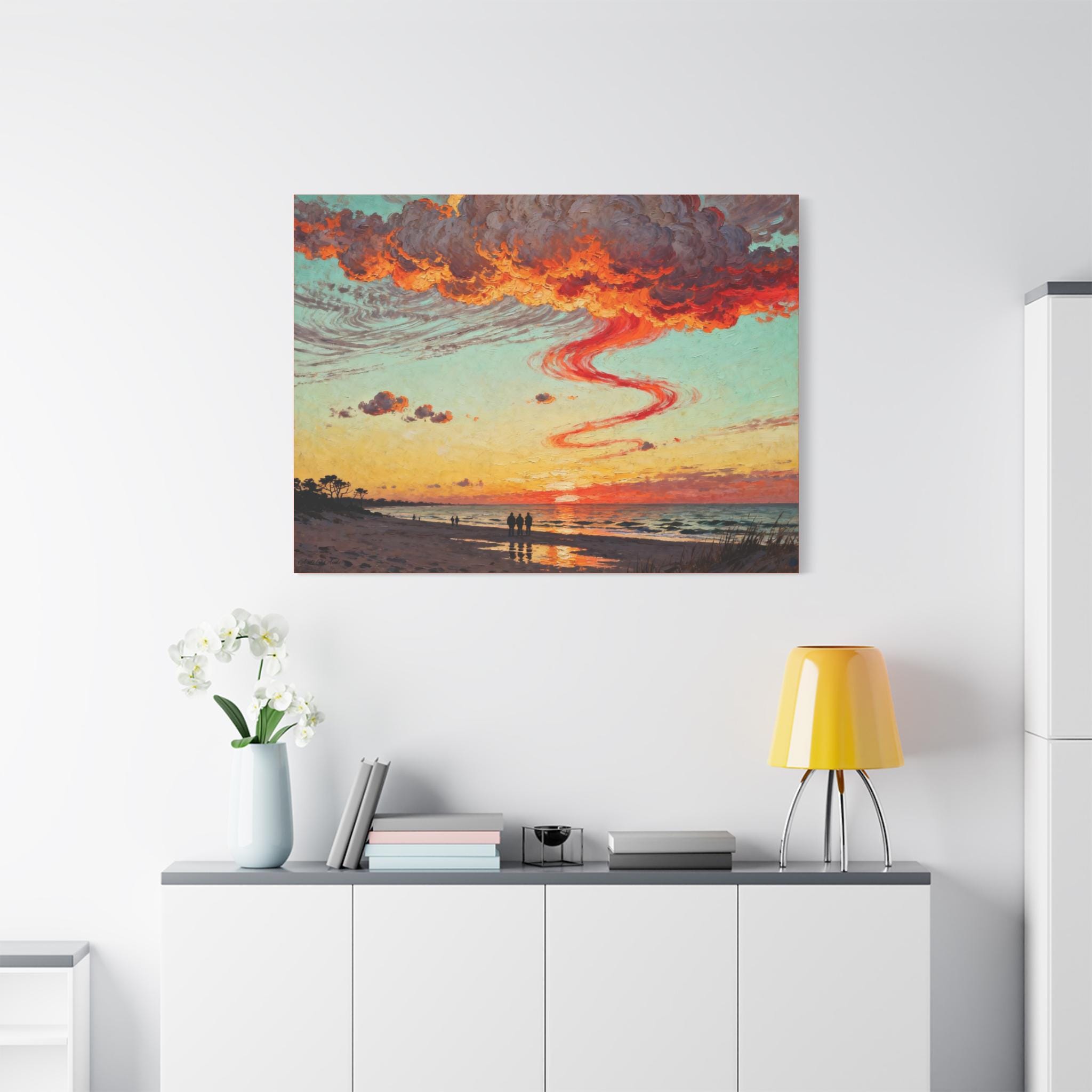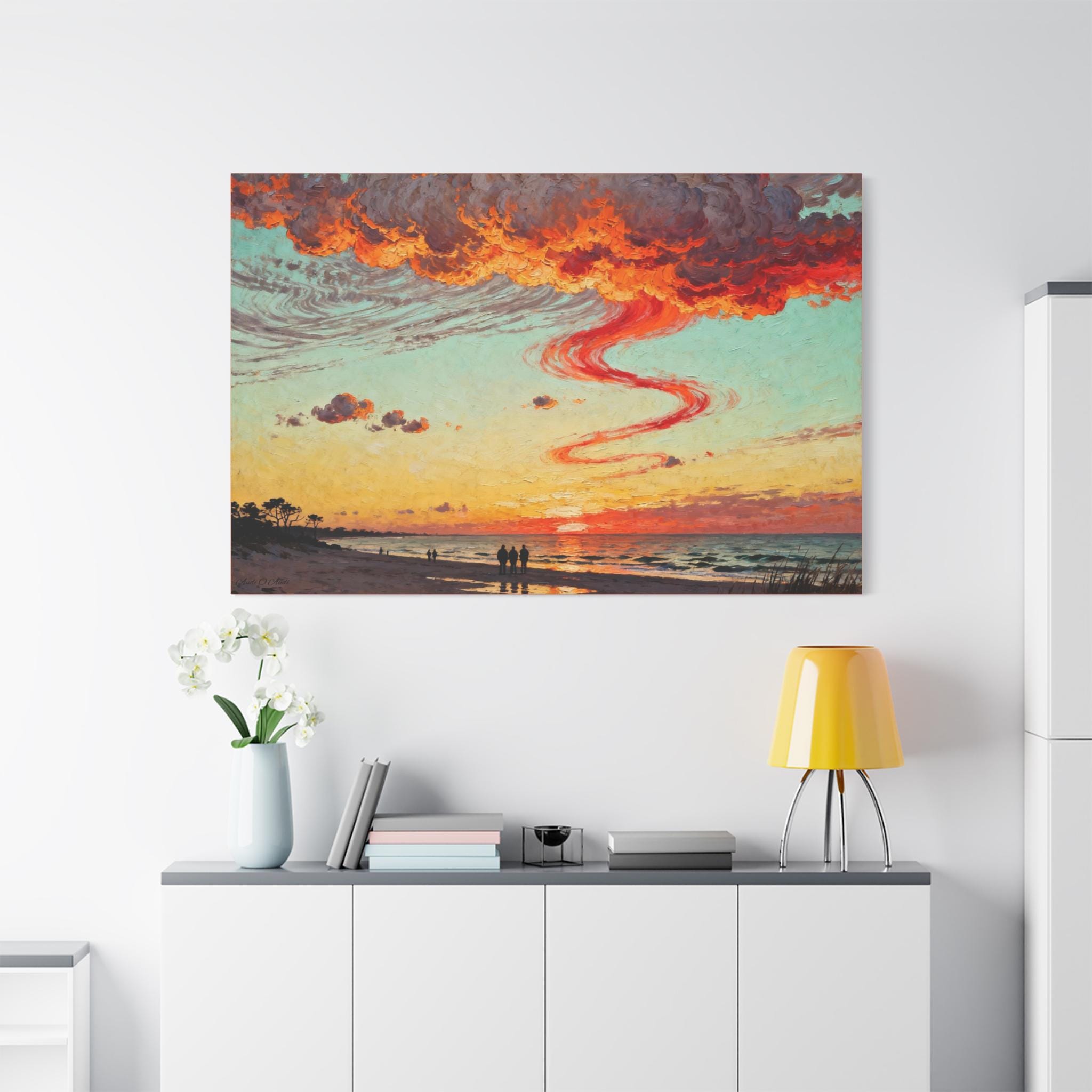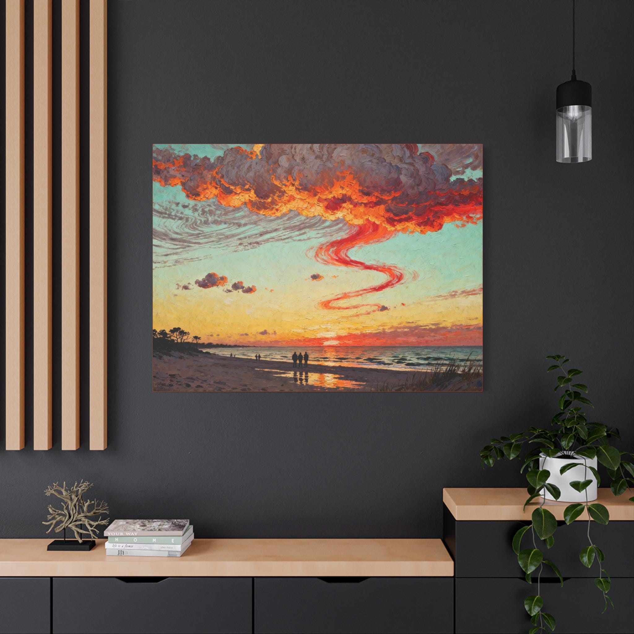 Canvas Art Print, Ember Horizon Beach Wall Decor, Coastal Home Decoration, Gifts for Ocean Lovers, Colorful Landscape Painting, Stretched