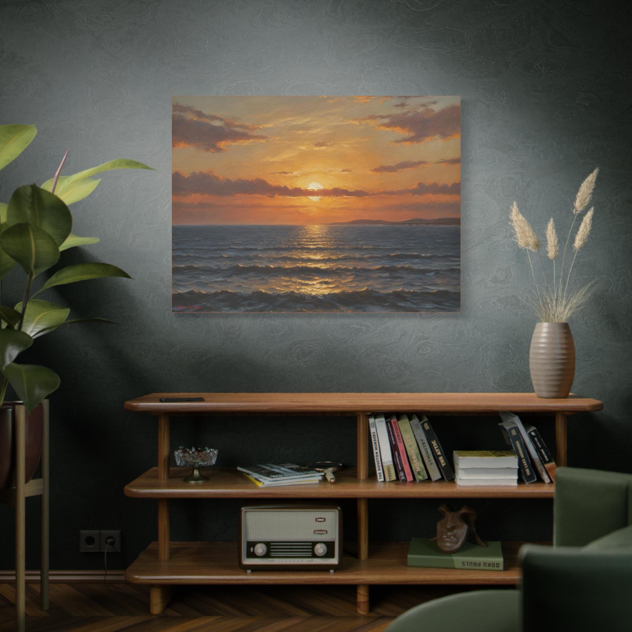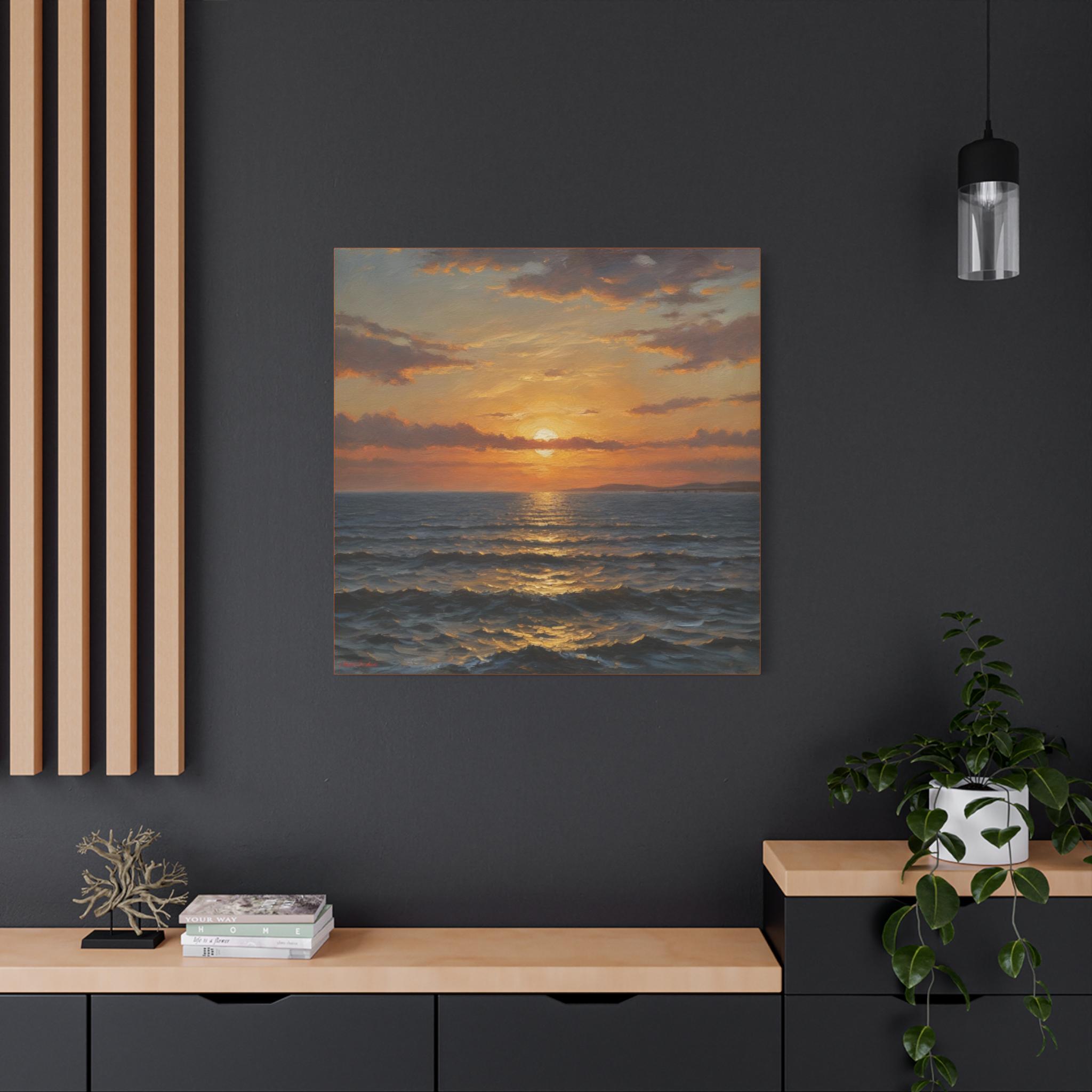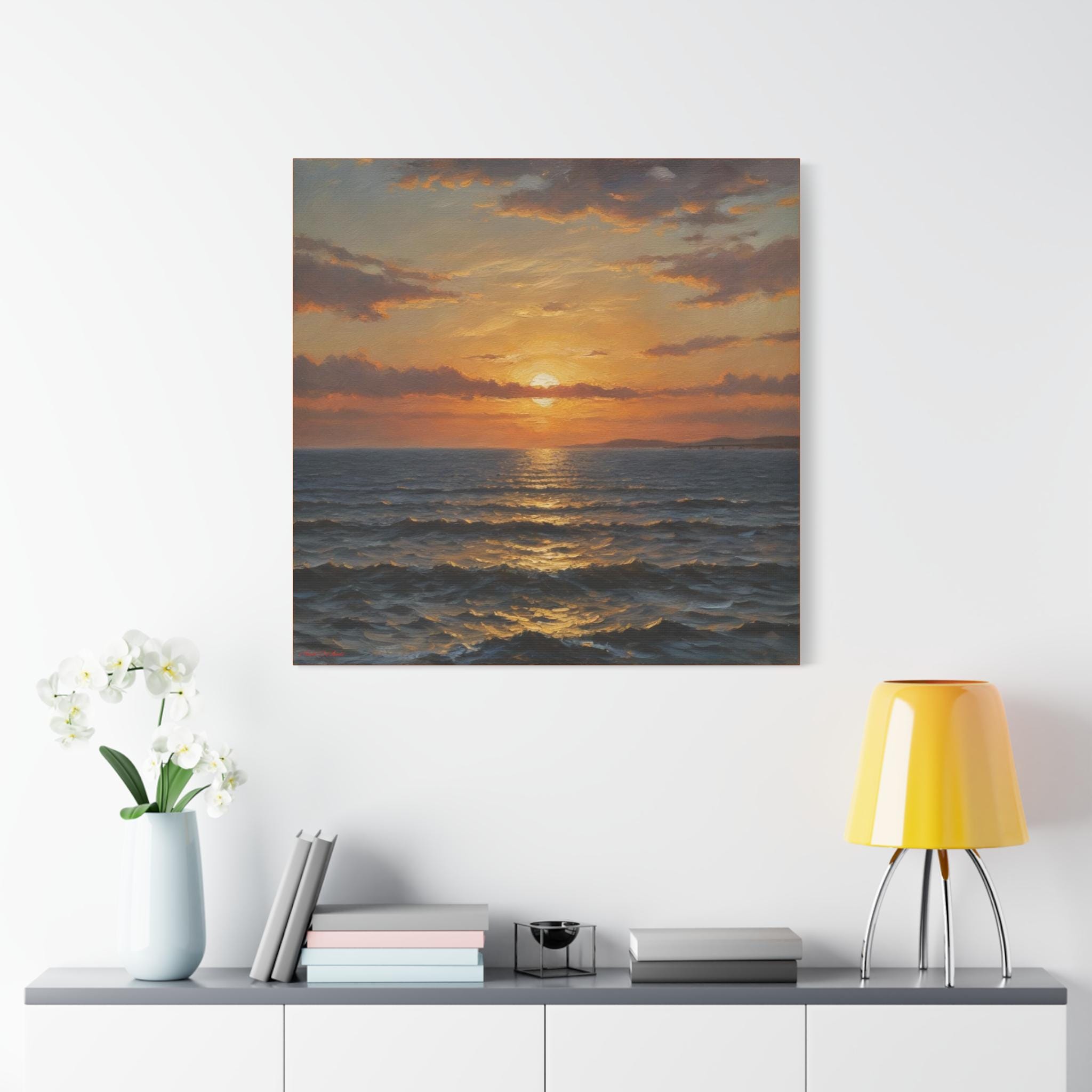 Embrace the calming atmosphere of an ember evening with this Sunset Wave Canvas Print. Perfect for ocean lovers looking to add a touch of coastal art to their home decor. Ideal for gifting during holidays, birthdays, or special occasions.