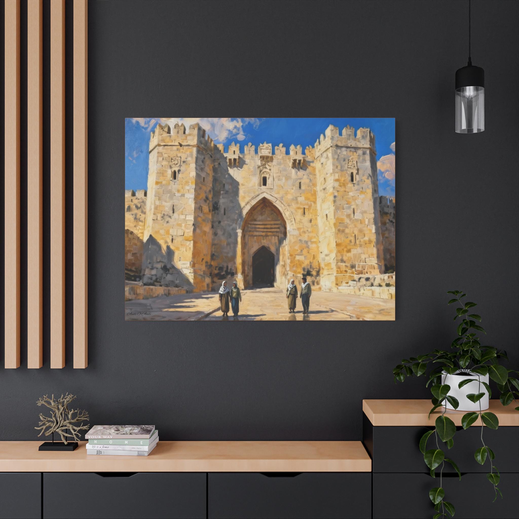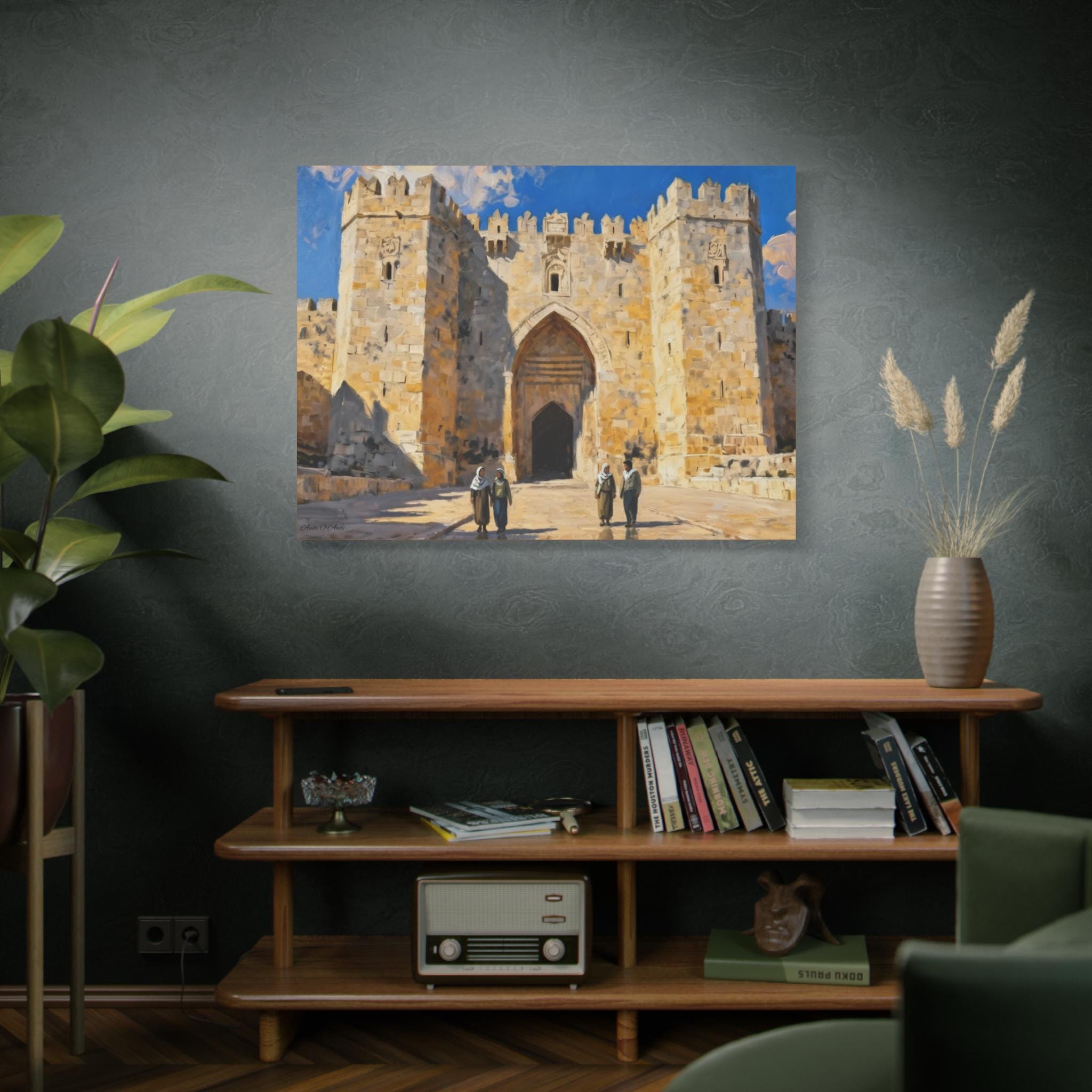 Immerse yourself in the urban landscape with this Damascus Gate canvas art. Perfect for adding a cultural touch to your home gallery or as a travel-inspired gift. Relevant for individuals who appreciate art, culture, and travel. Ideal for decorating homes, offices, or gifting during holidays or special occasions.
