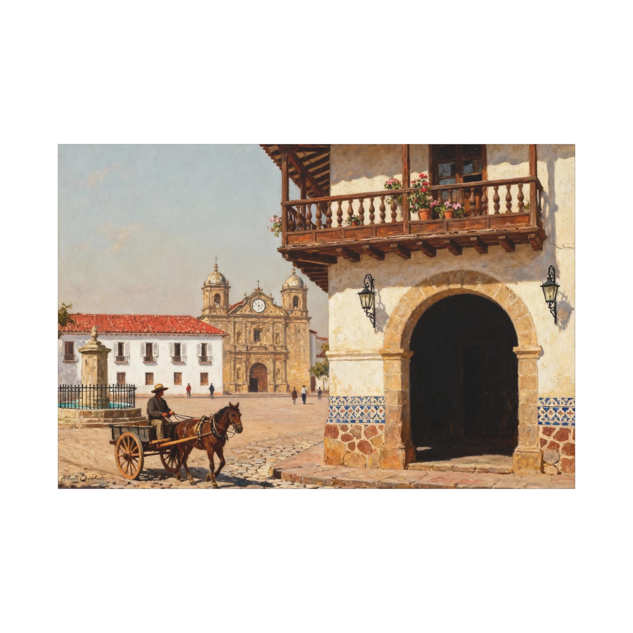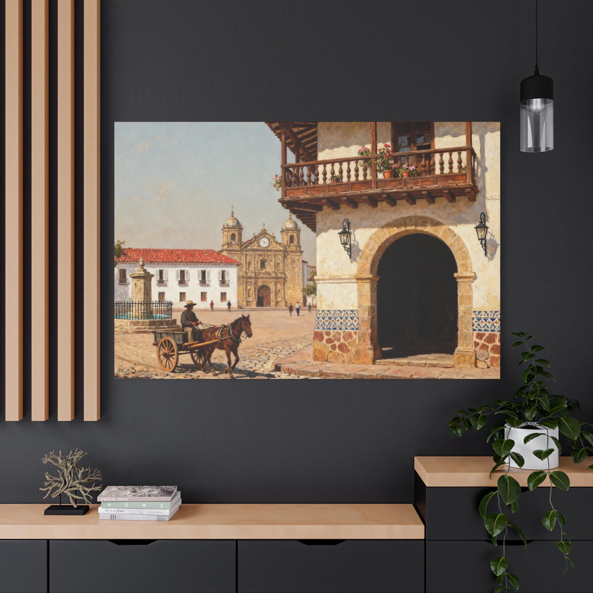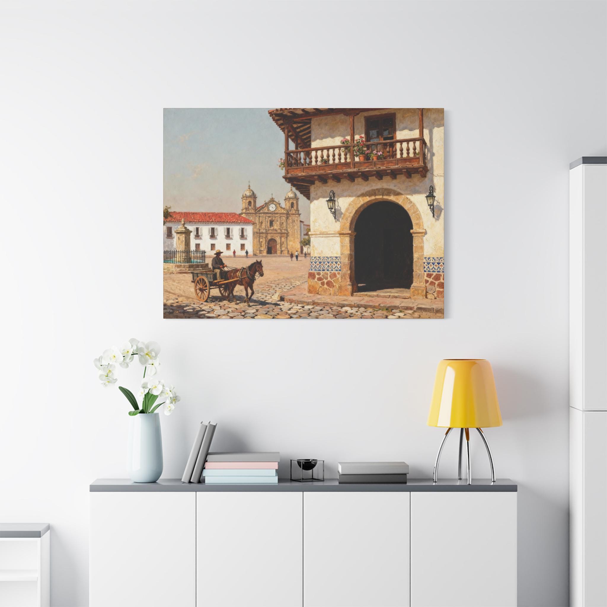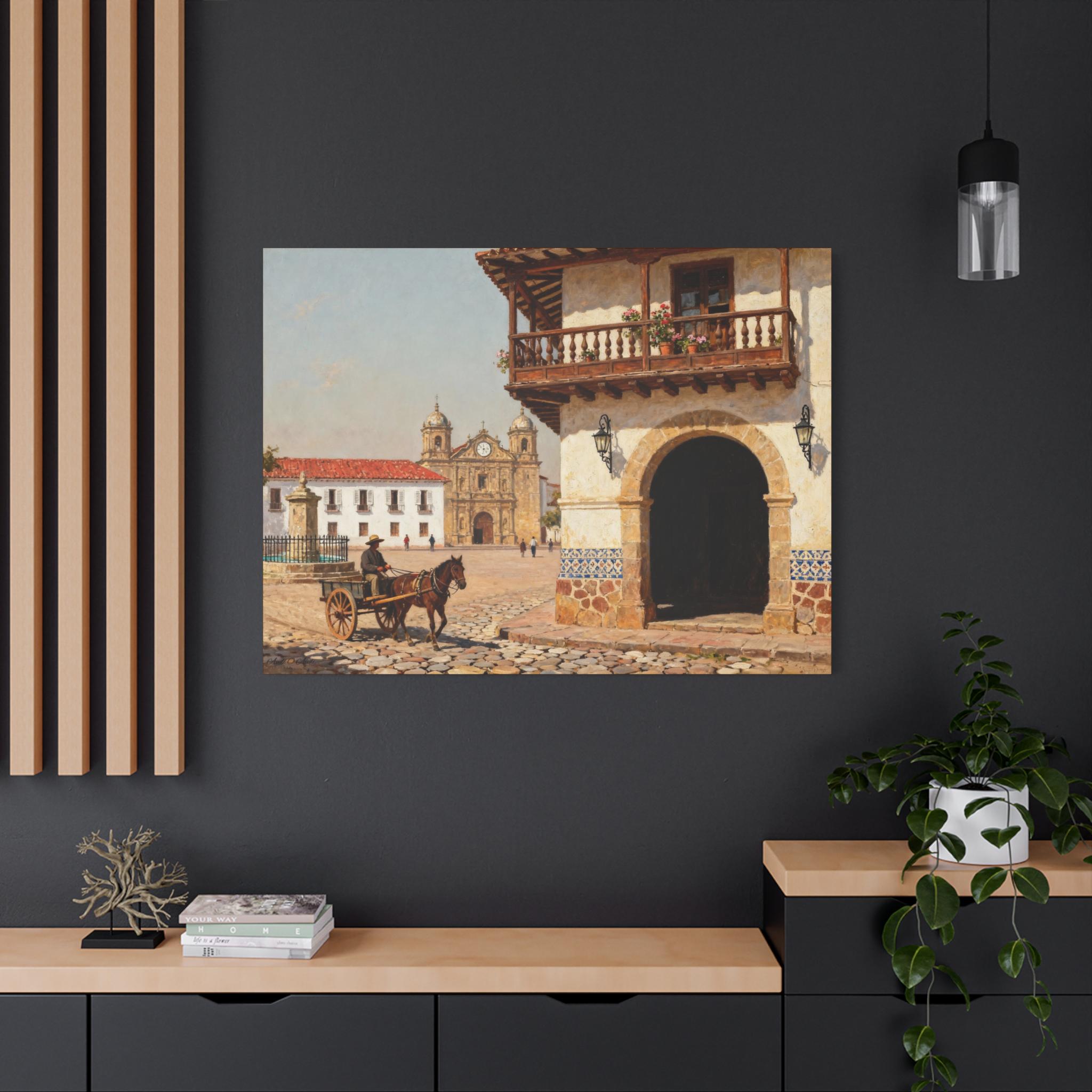 Colonial Town Square Canvas Print: Vintage Rustic Wall Art