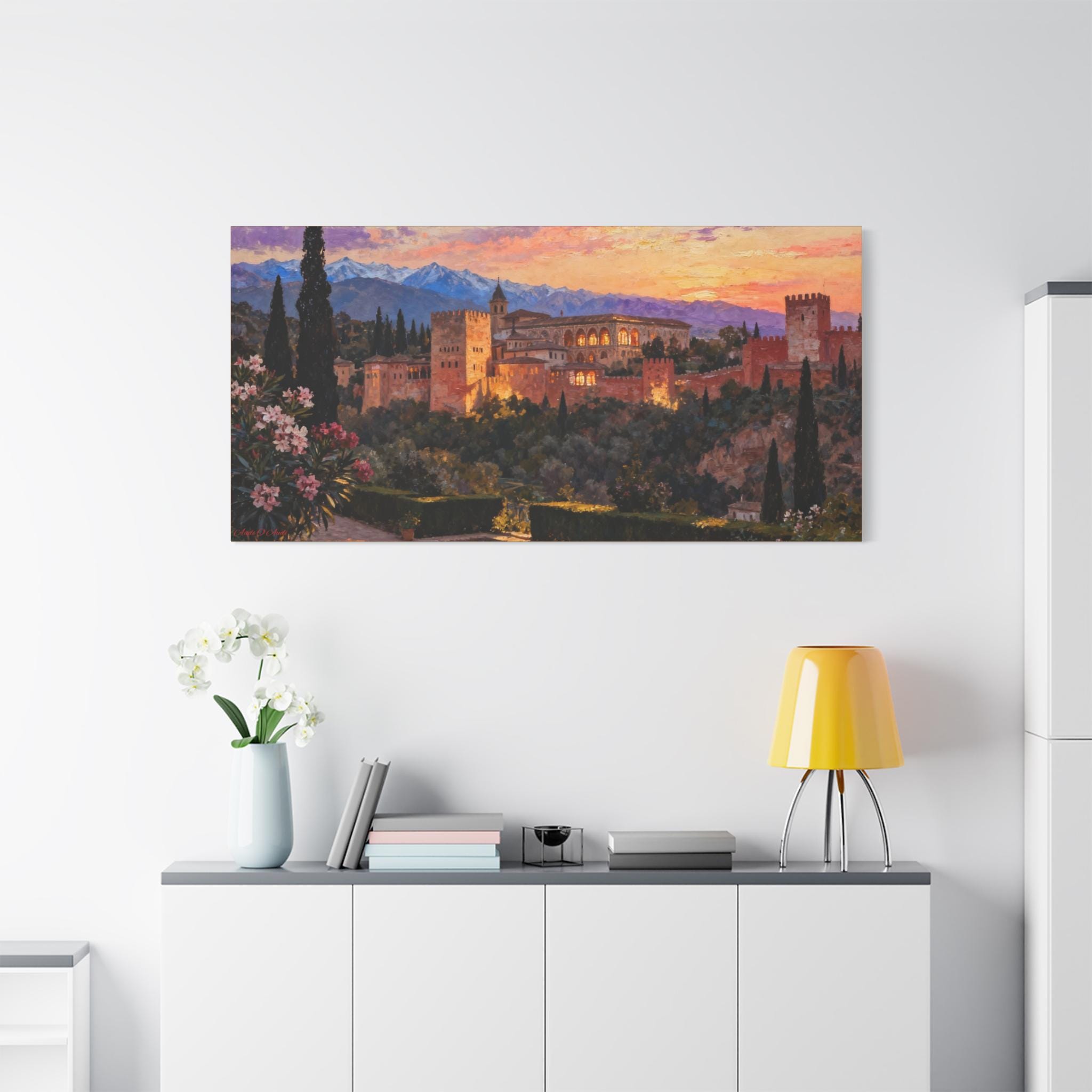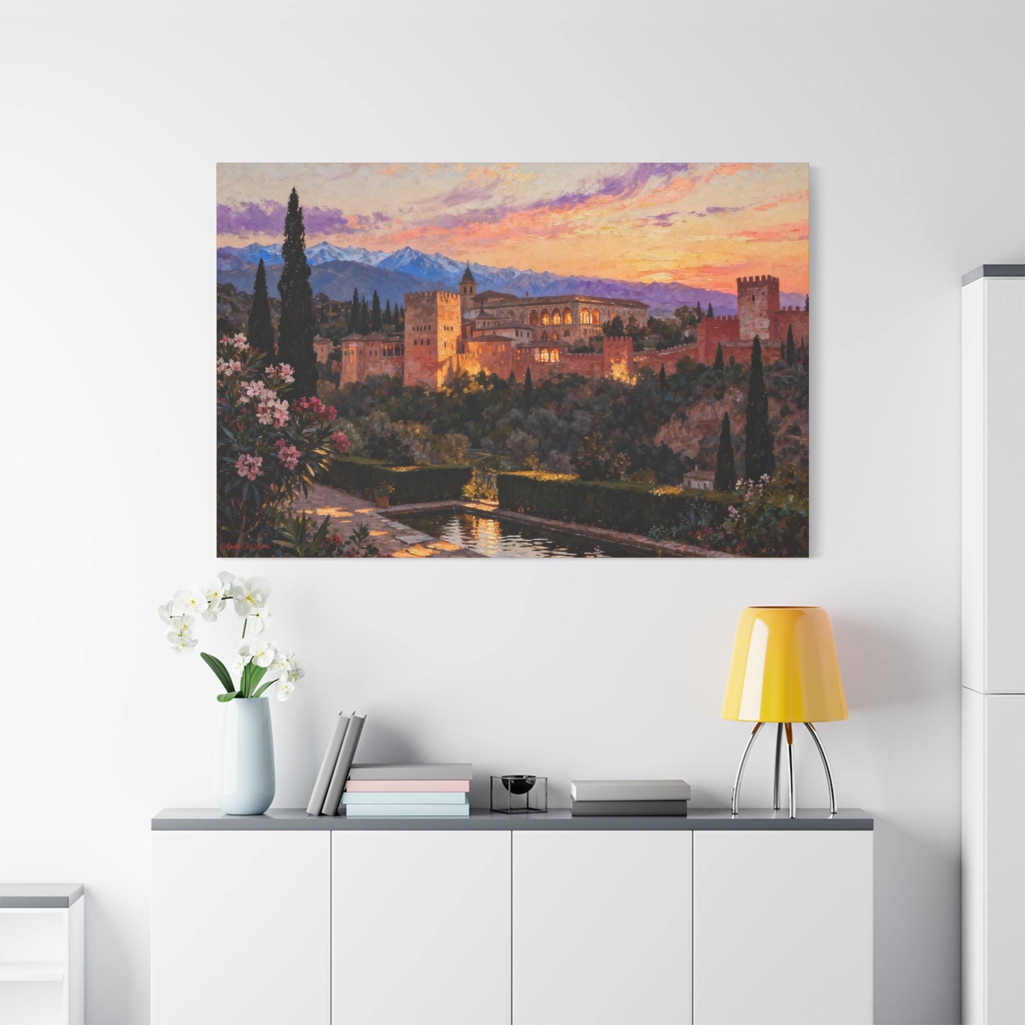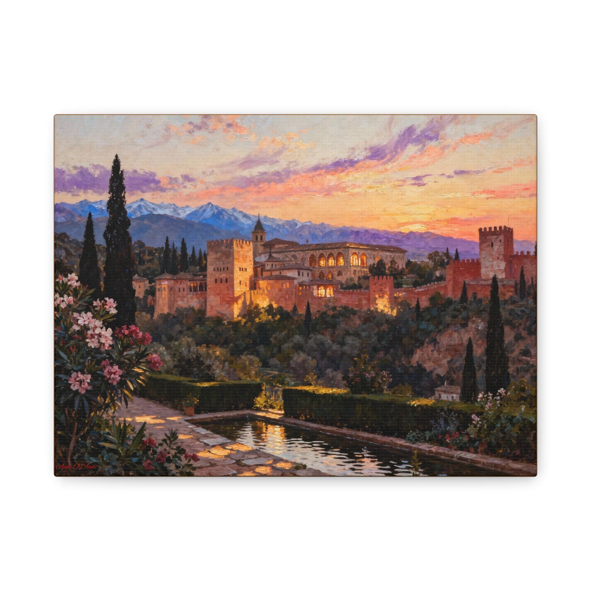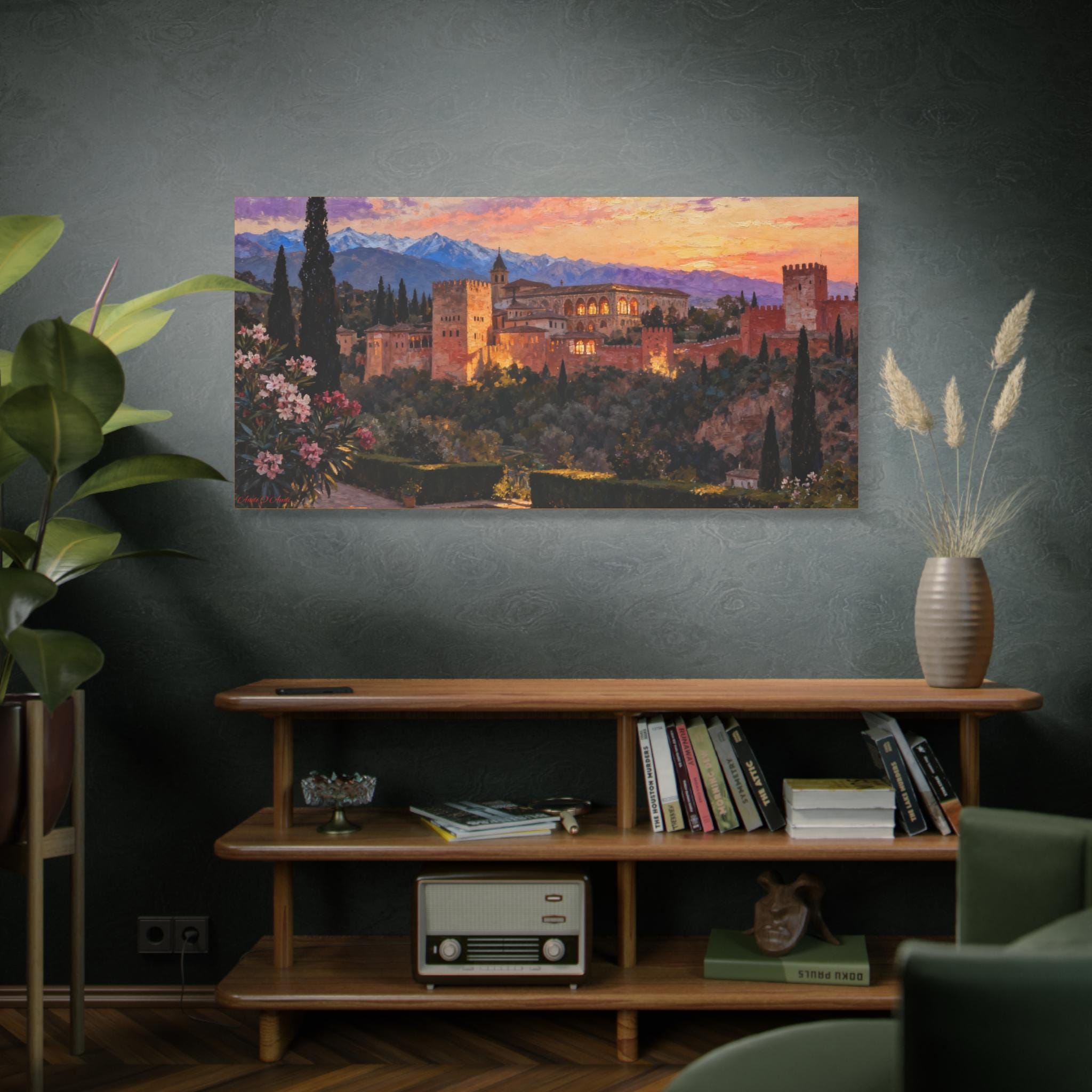 Alhambra Sunset Canvas Wall Art: Vintage Style Landscape Print