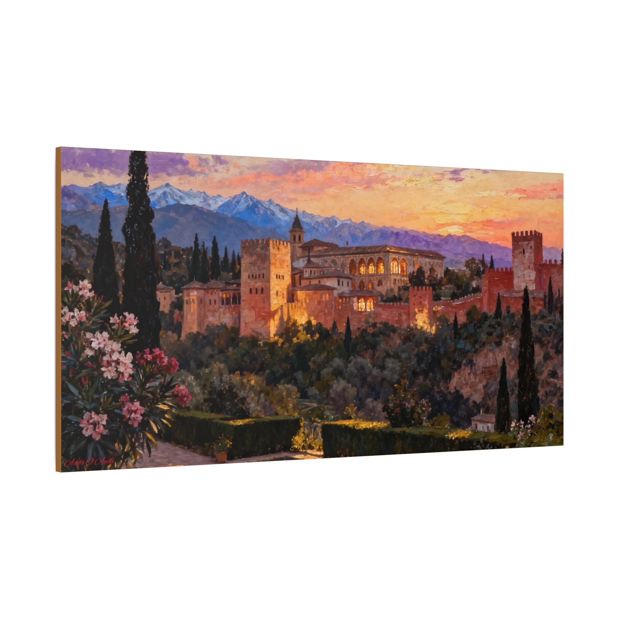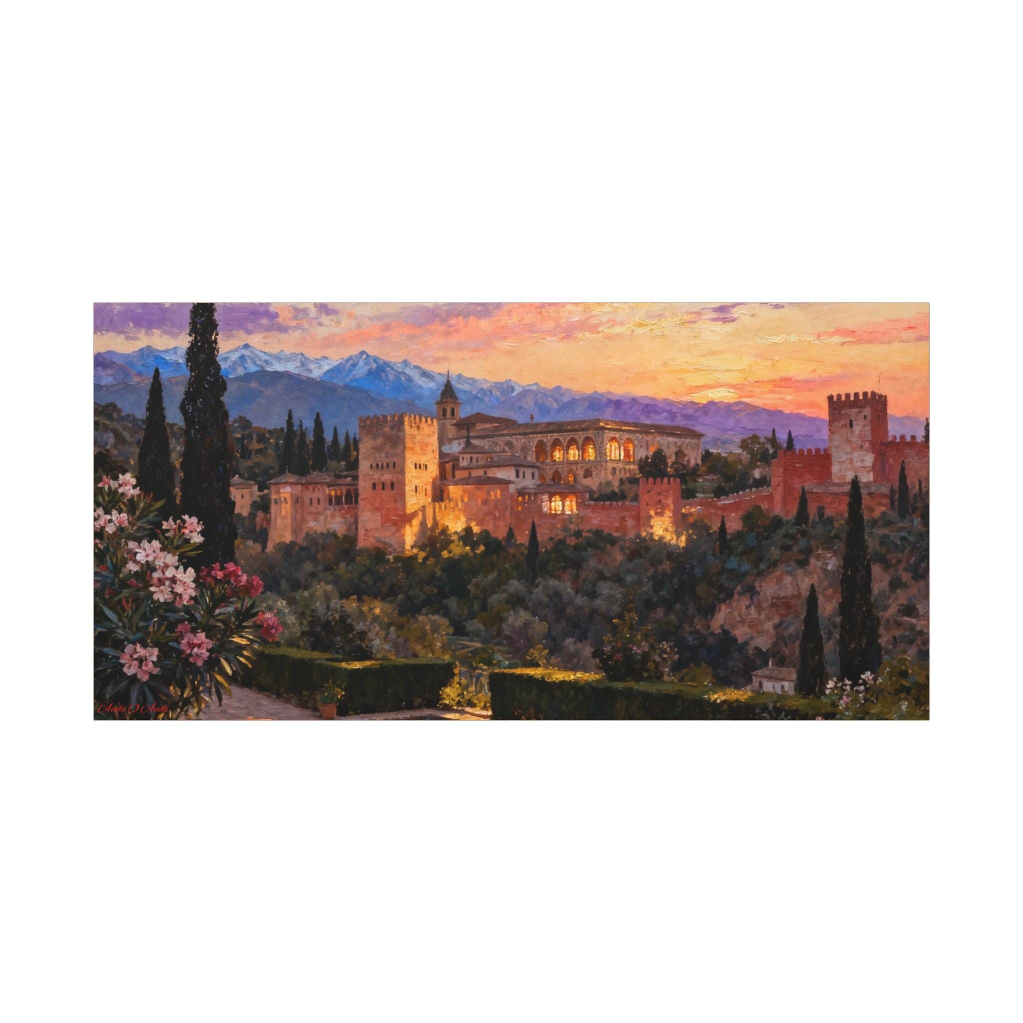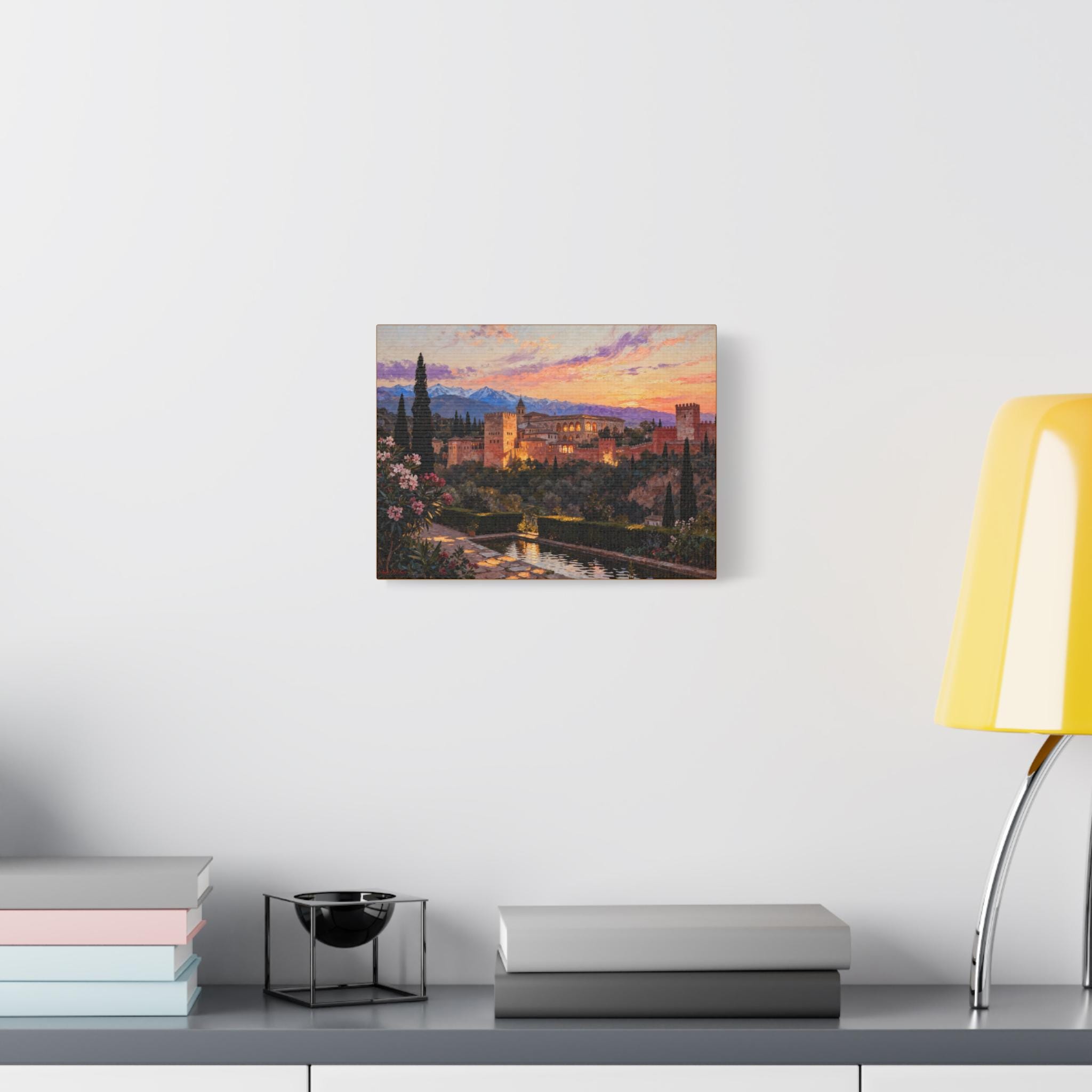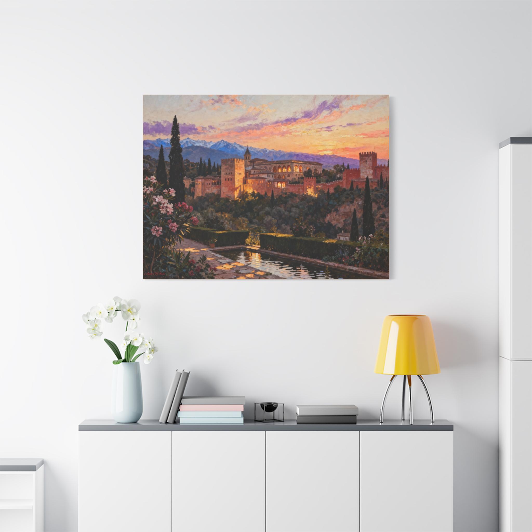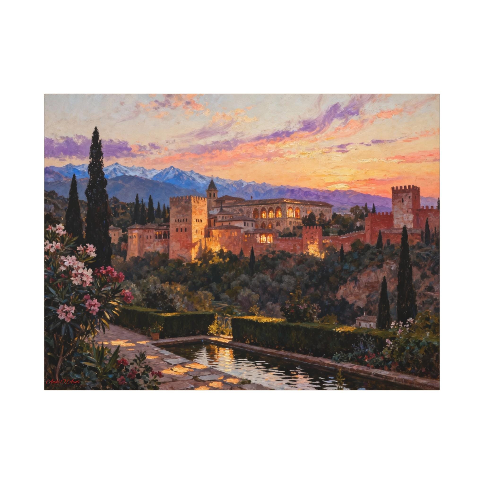Alhambra Sunset Canvas Wall Art: Vintage Style Landscape Print