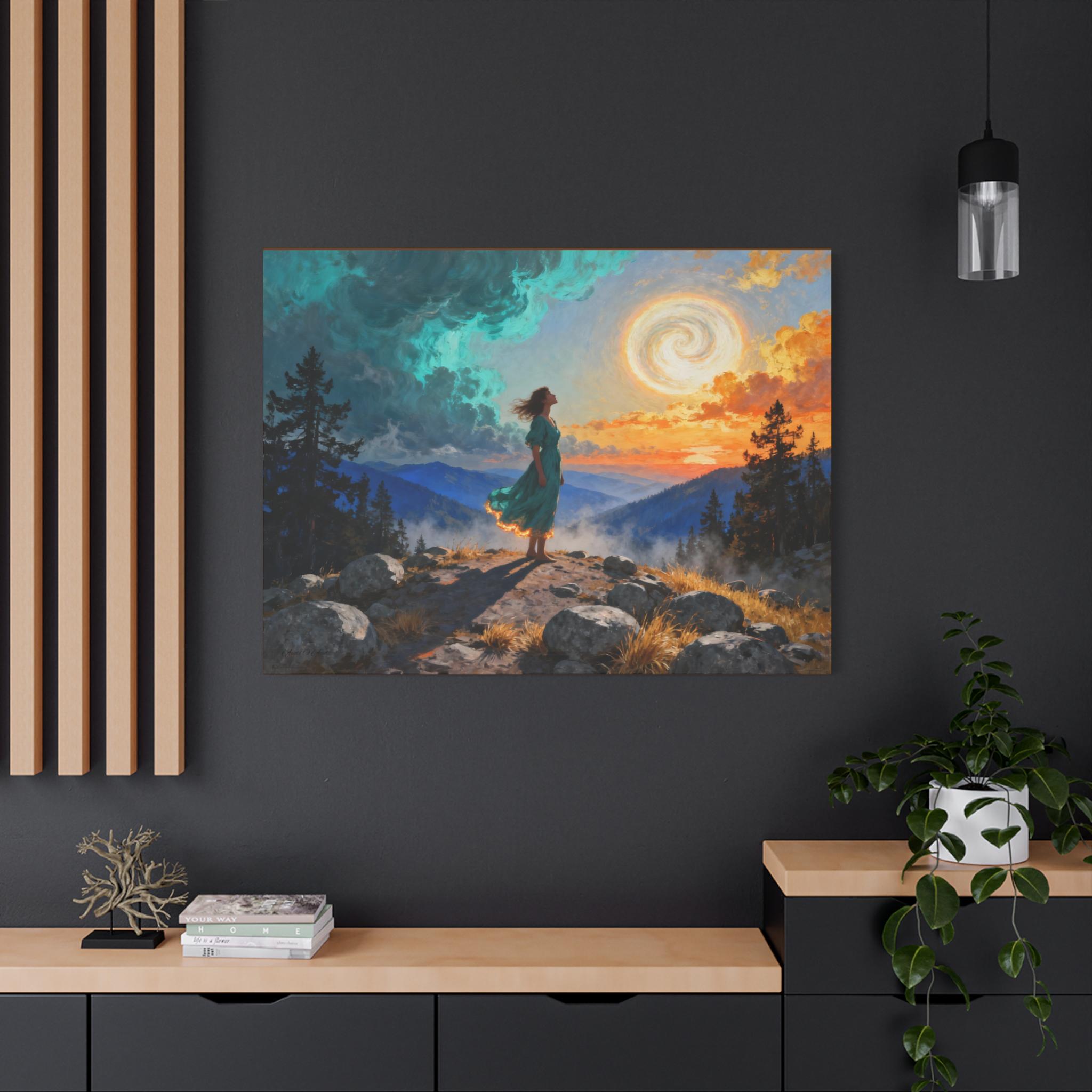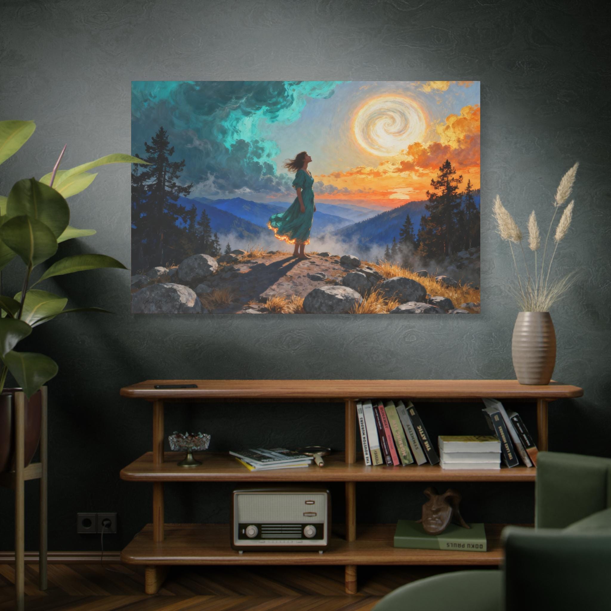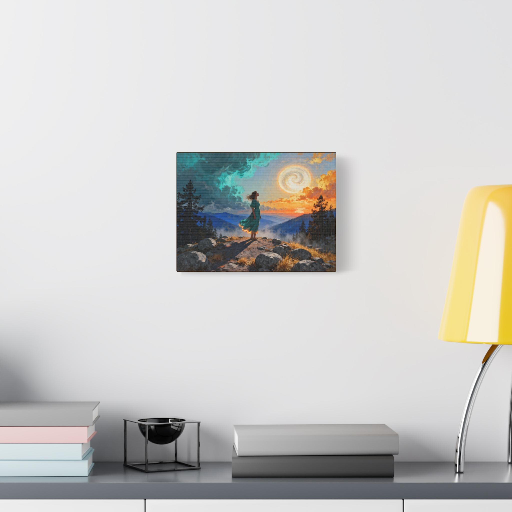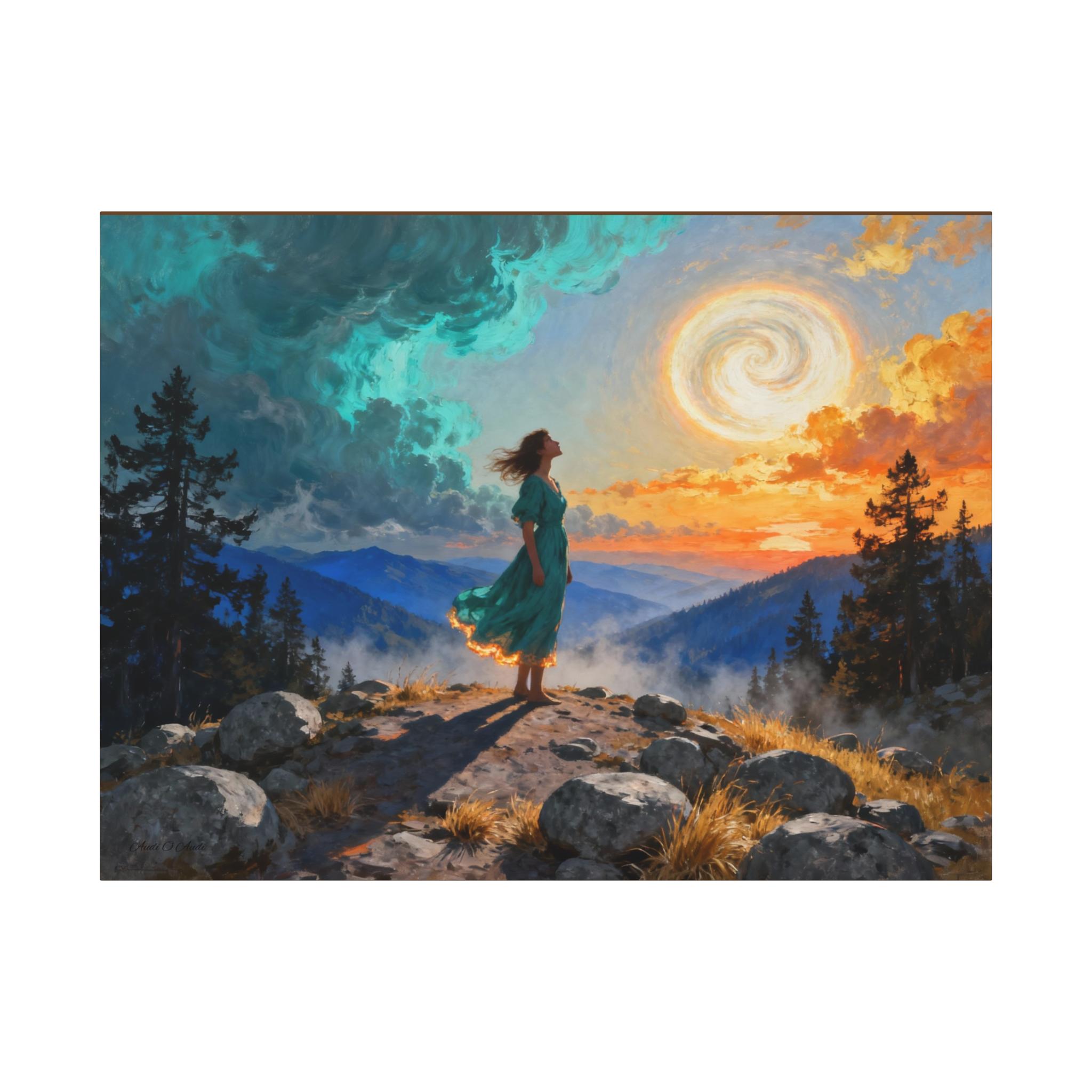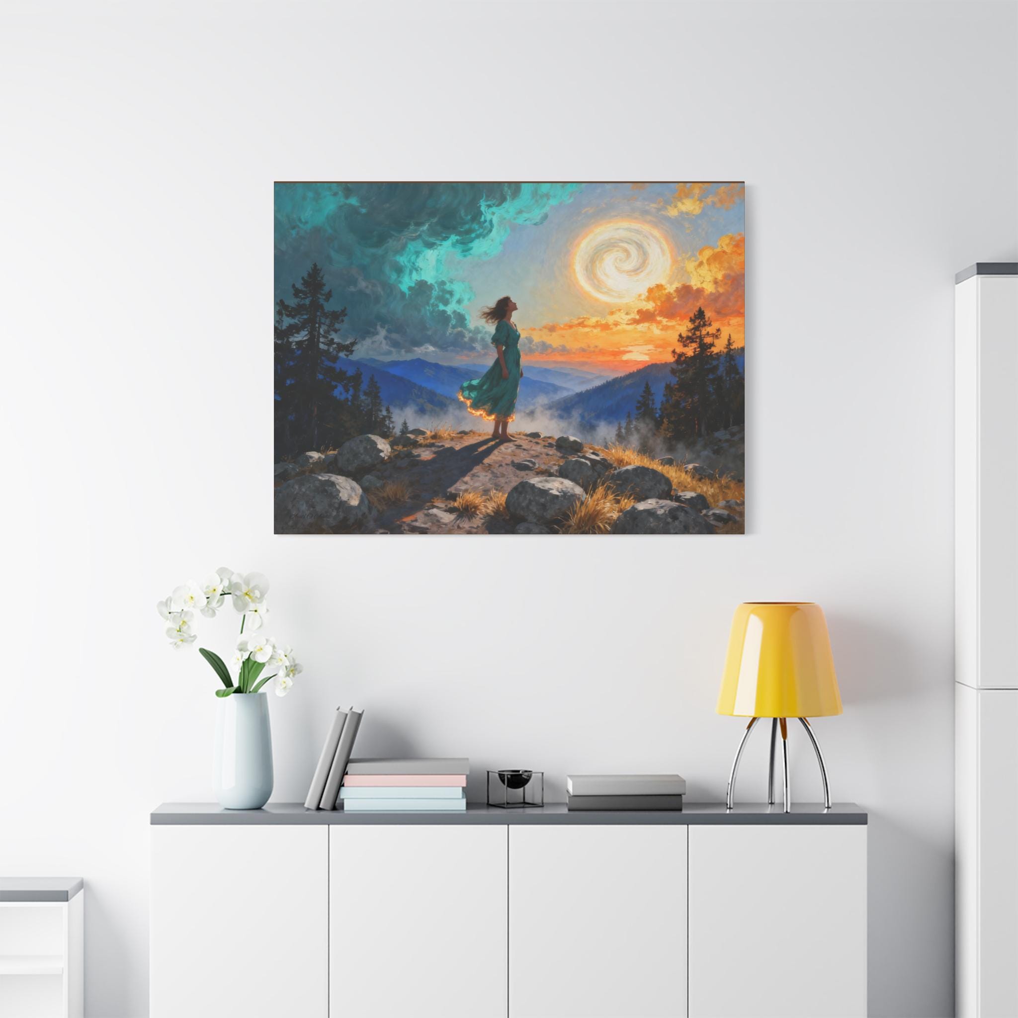 Dreamy Landscape Matte Canvas: Inspirational Woman, Mountain View Wall Art