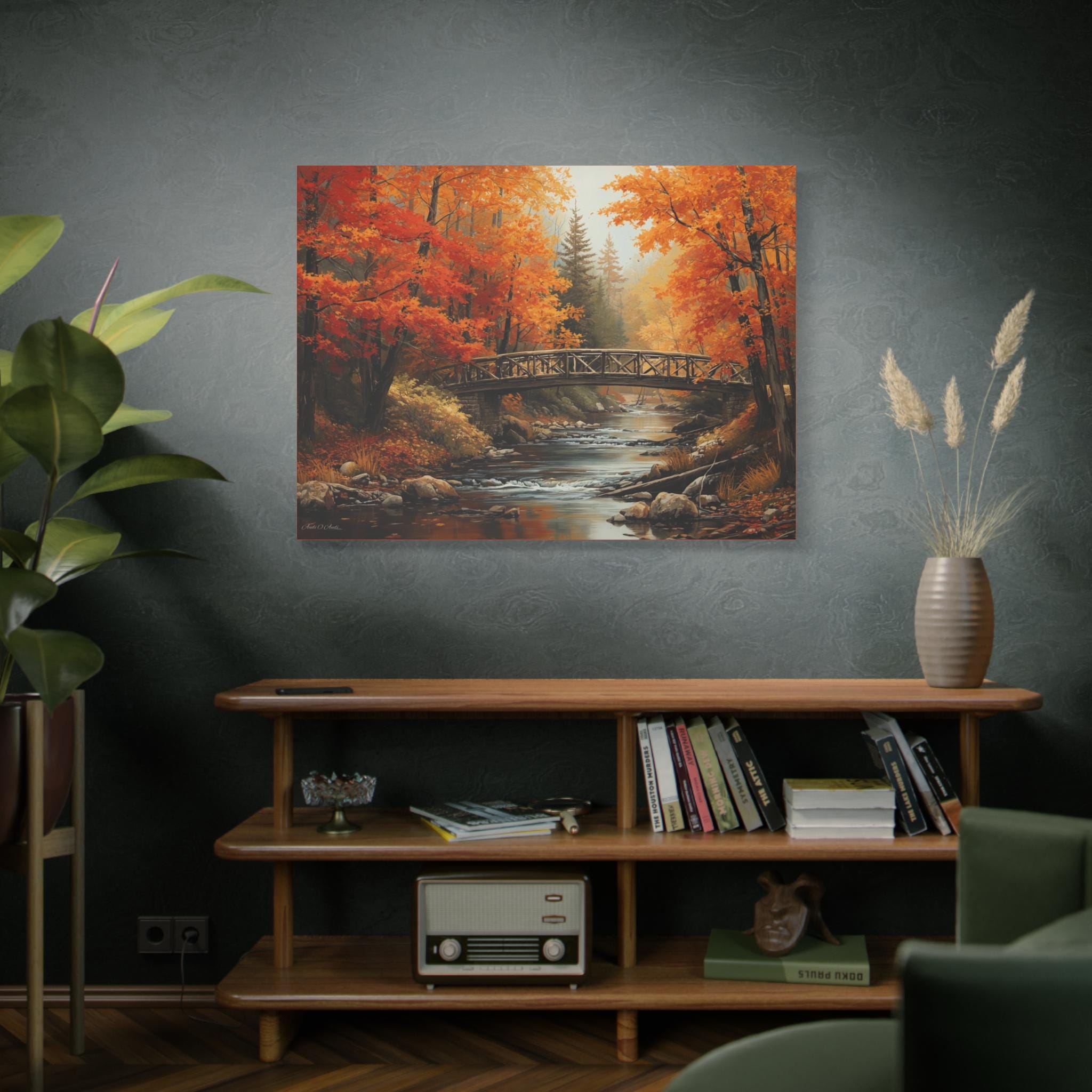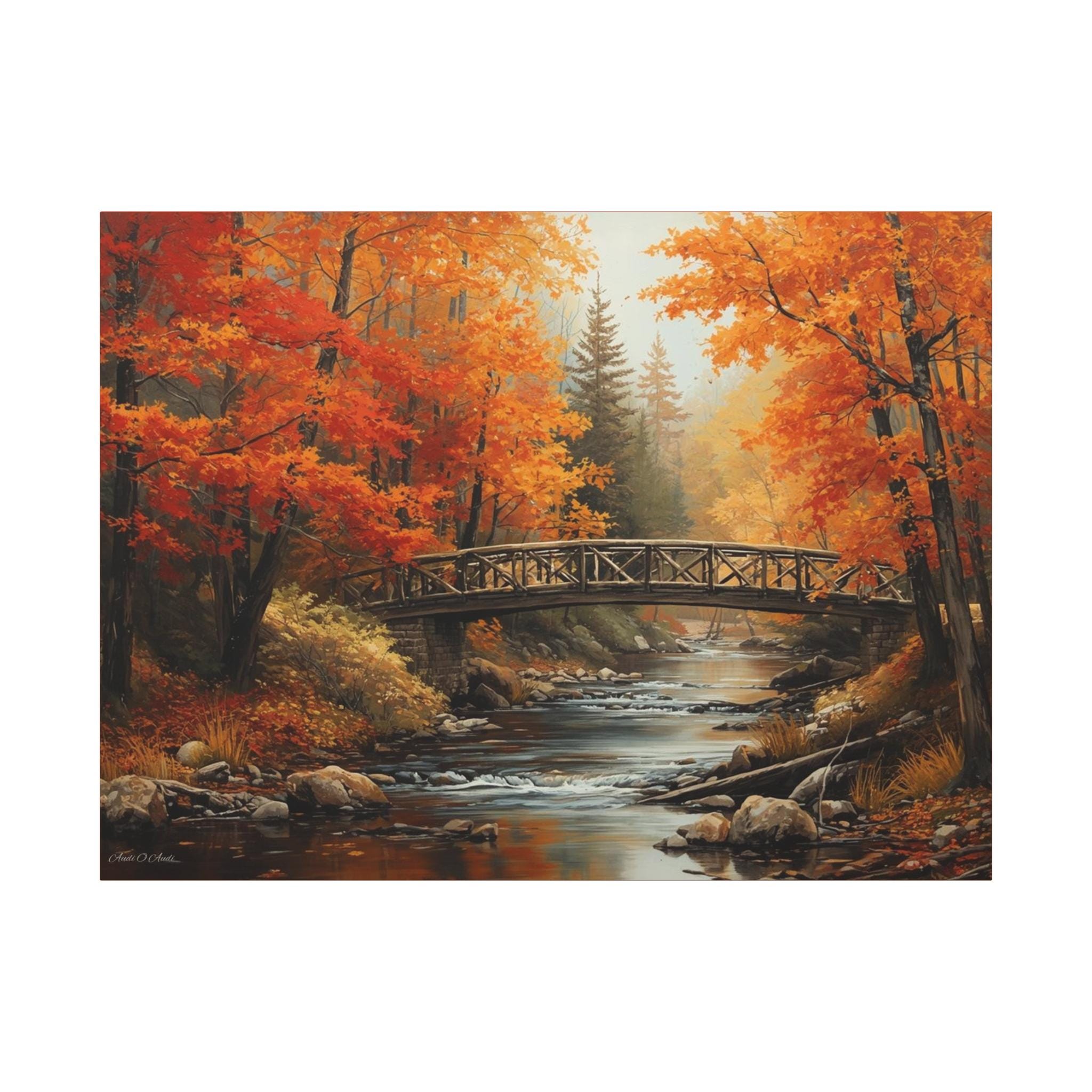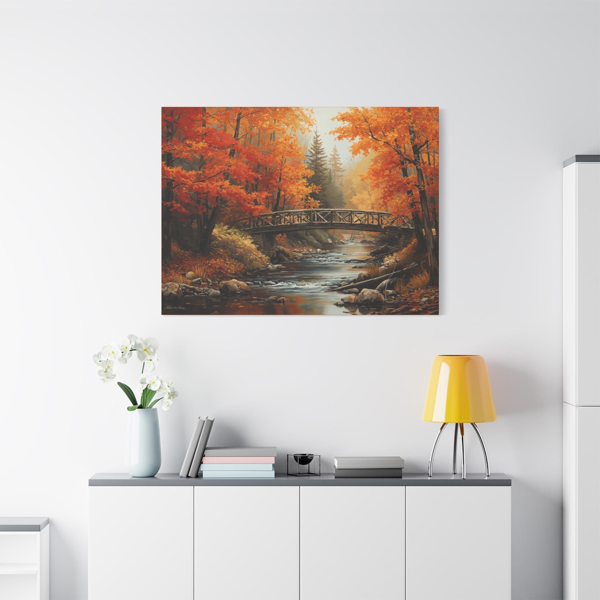 Autumn Bridge Canvas Print: Tranquil Fall Landscape Wall Art