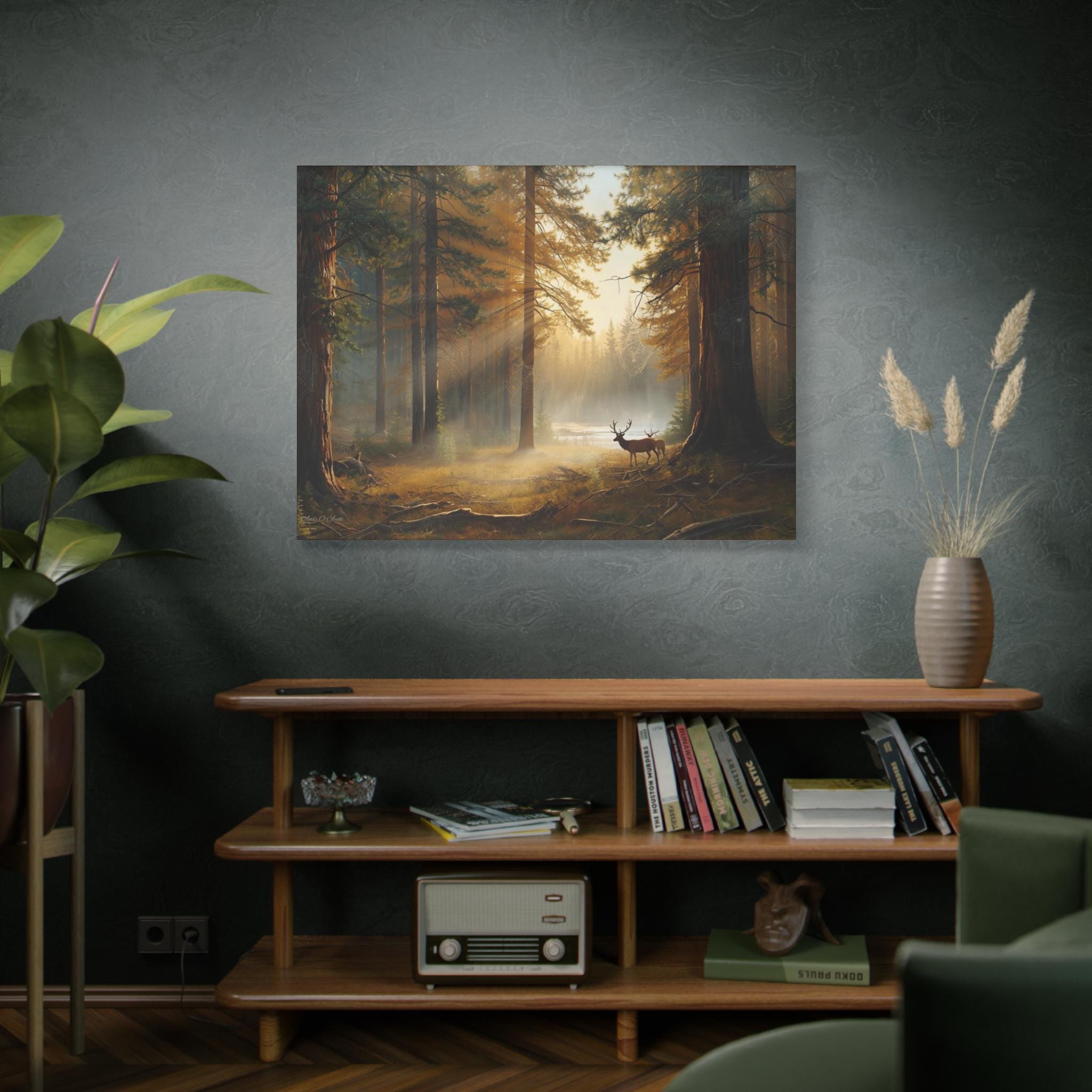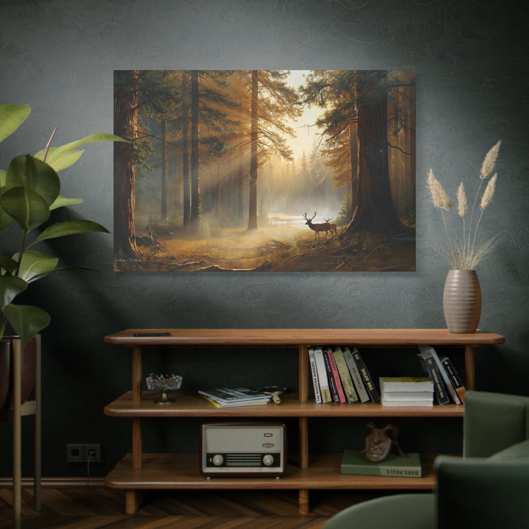 Deer in Forest Canvas Wall Art: Rustic Nature Photo Decor