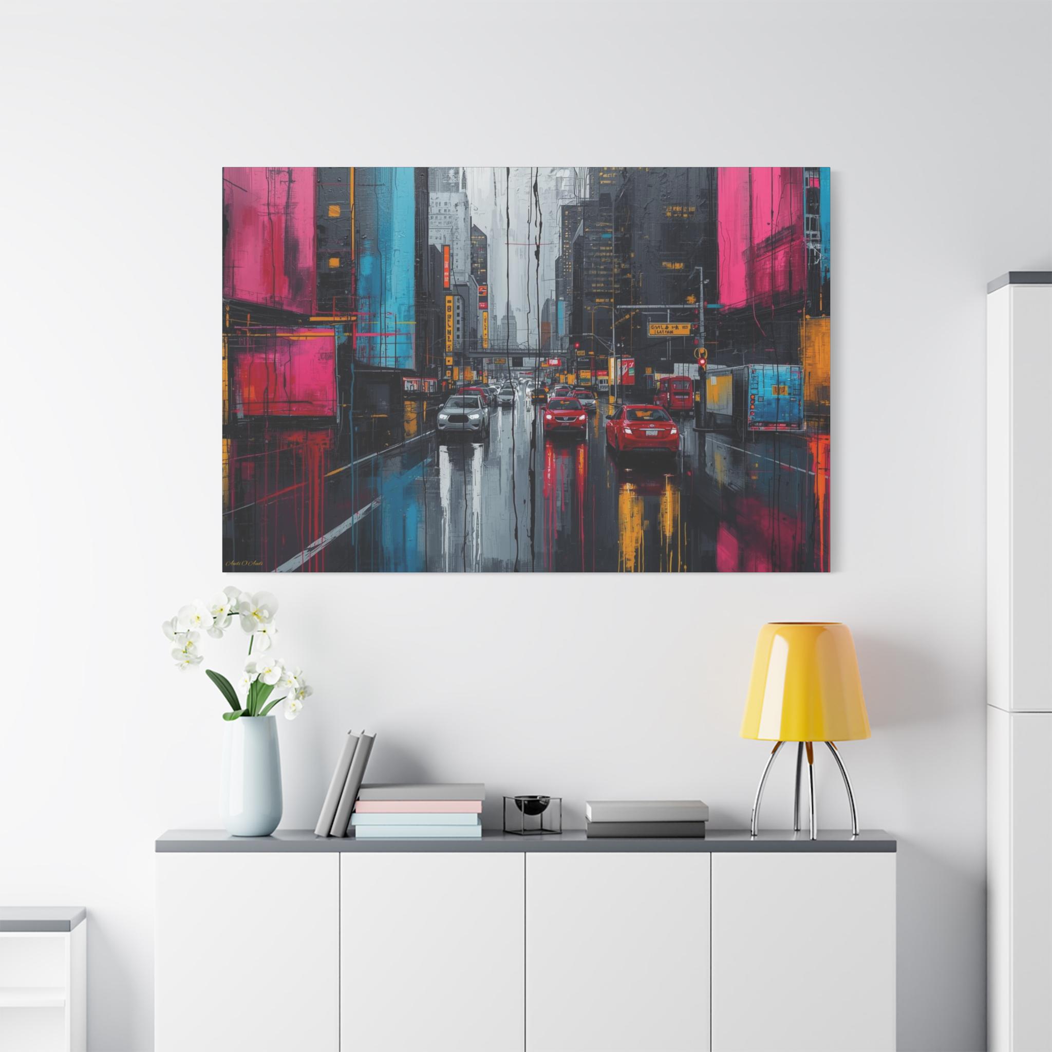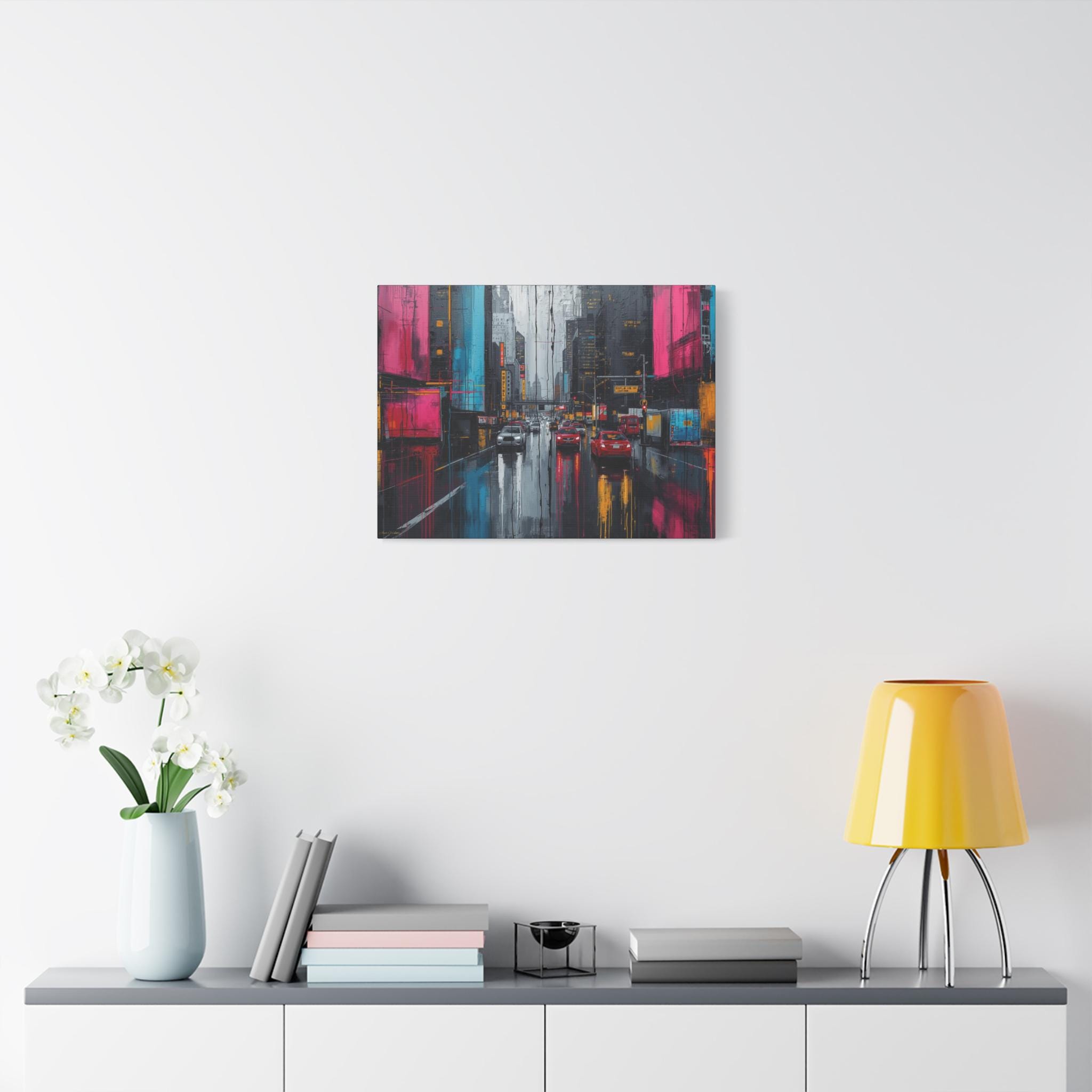 Bring a burst of color and modern aesthetics into your home with this stunning matte canvas. This vibrant artwork captures the bustling energy of city life, making it a perfect centerpiece for any room. Whether displayed in your living room, office, or a creative space, its eye-catching design creates a lively atmosphere and sparks conversation. Ideal for art enthusiasts and anyone looking to brighten up their surroundings, this piece is perfect for holidays, housewarming gifts, or simply as a treat for yourself. Celebrate special occasions such as birthdays or anniversaries with this artwork that transcends seasons and trends.