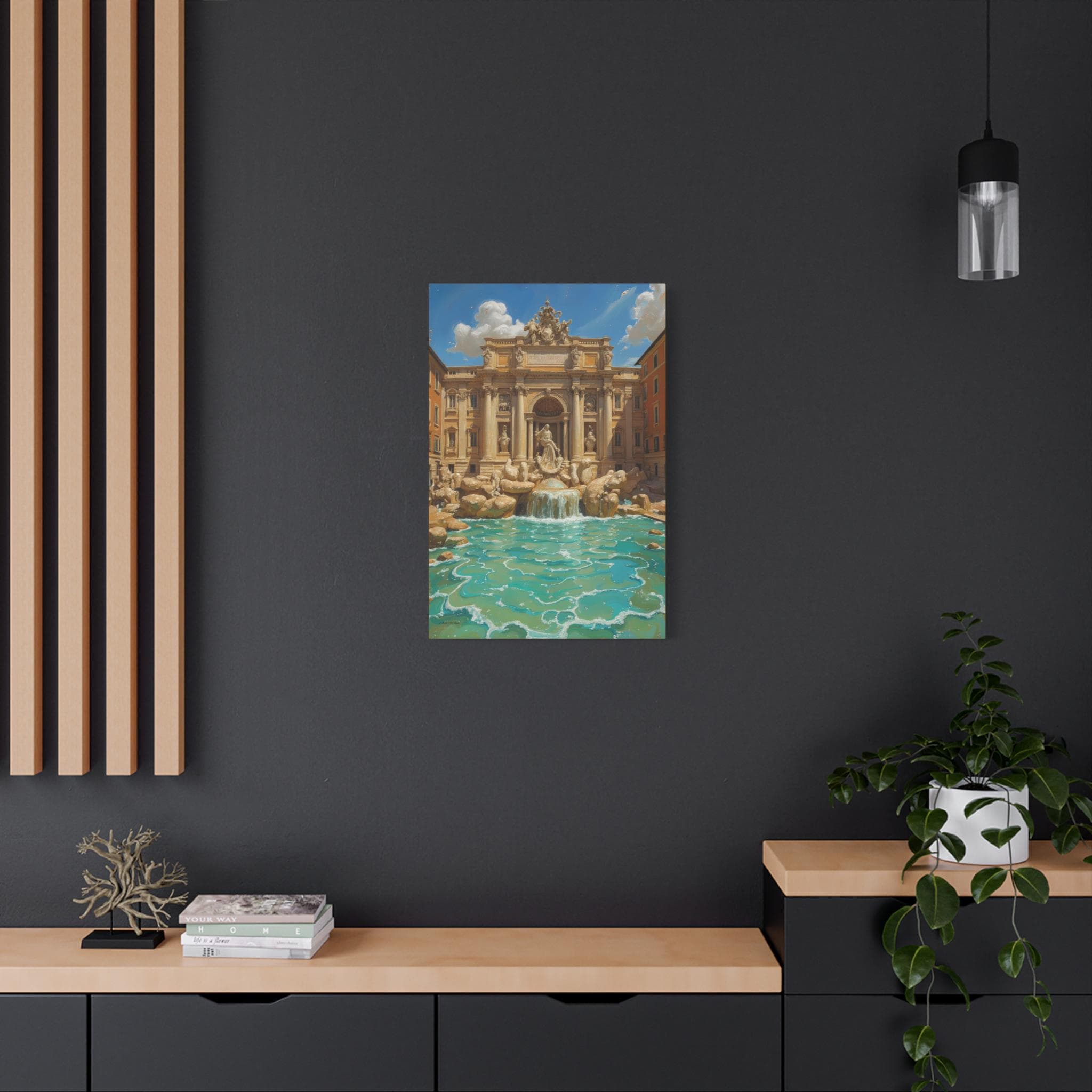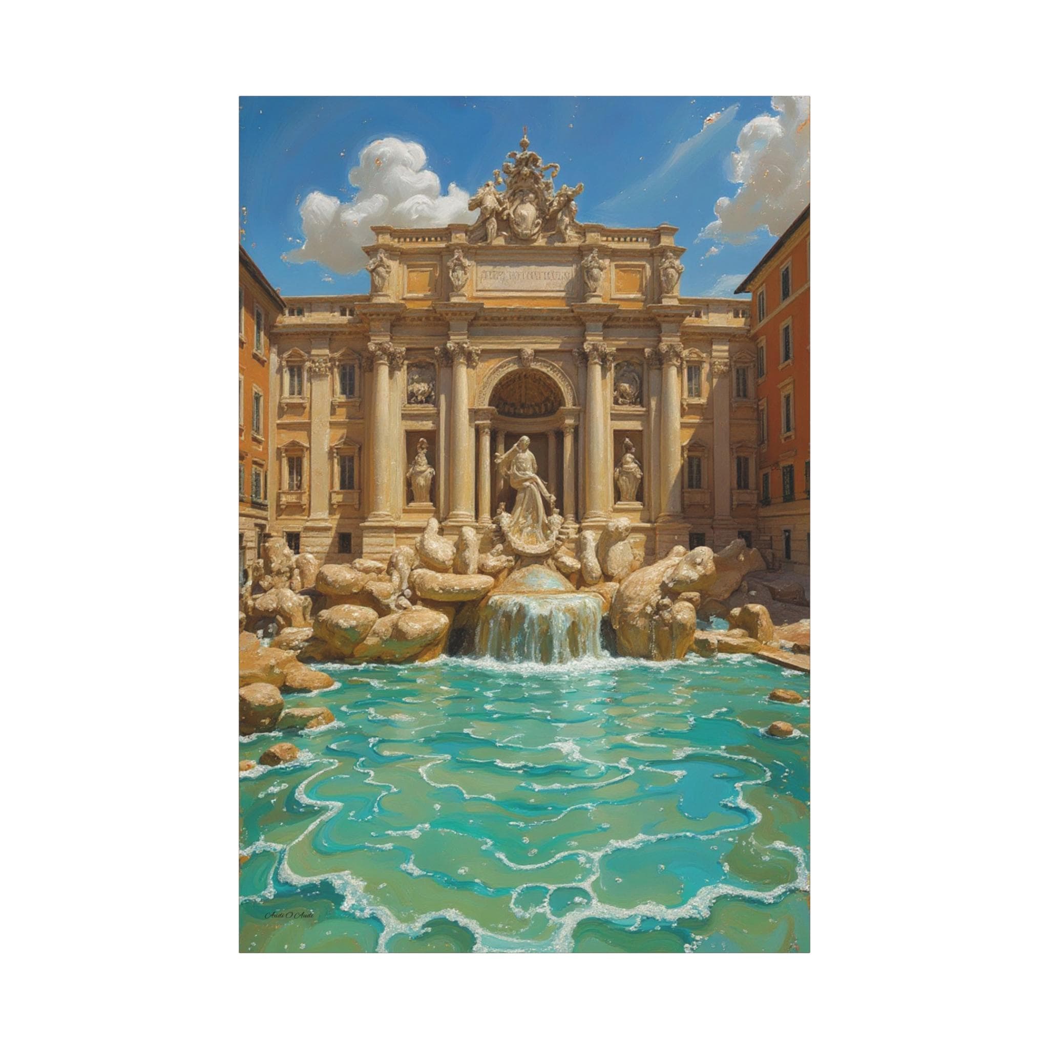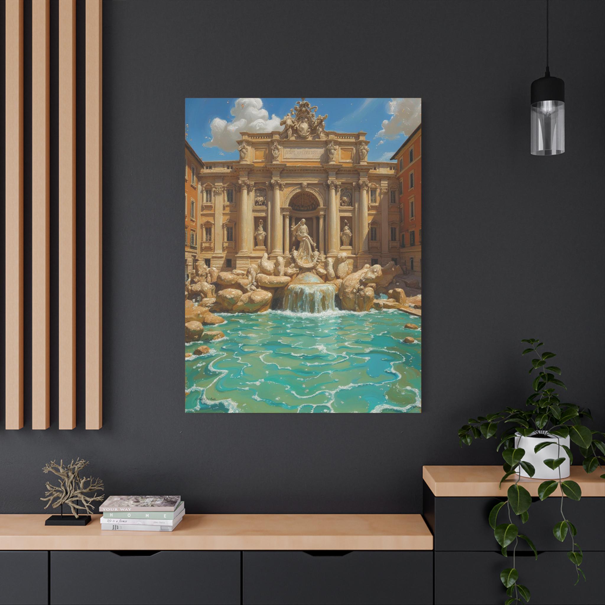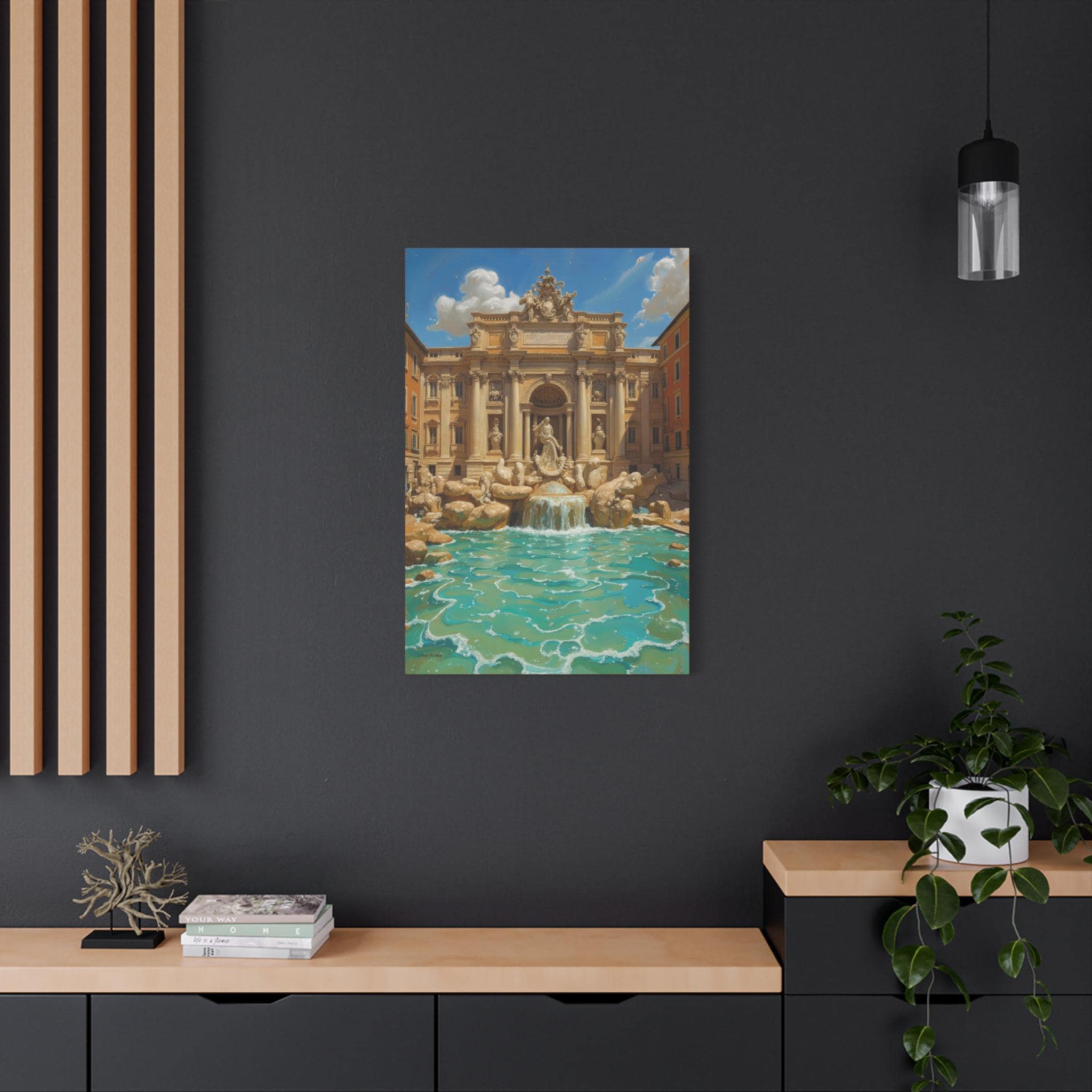 Bring the eternal romance and brilliant sunlight of Rome into your home with this stunning canvas print of the iconic Trevi Fountain. This artwork captures the monumental beauty of the fountain and the vivid, legendary turquoise of its waters.