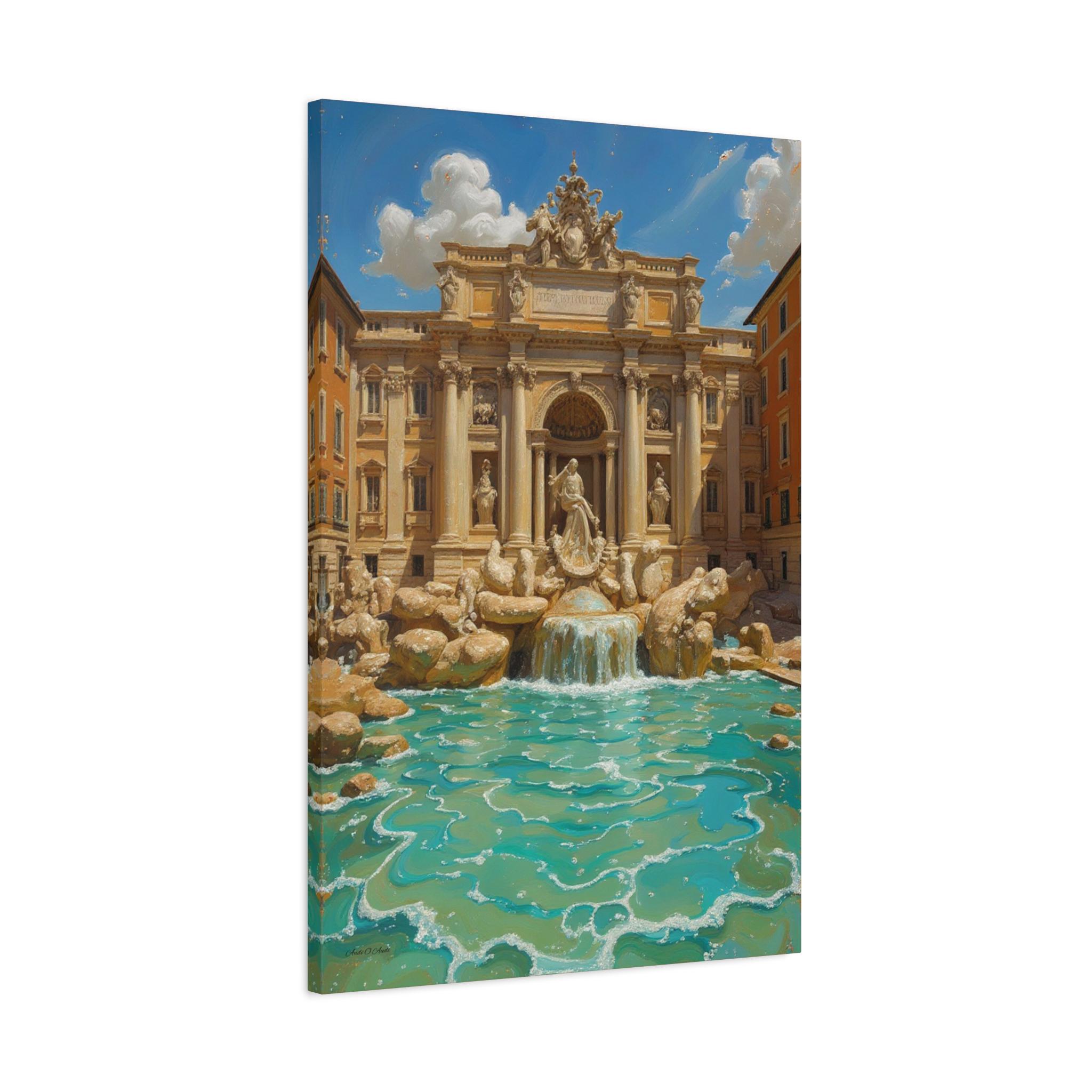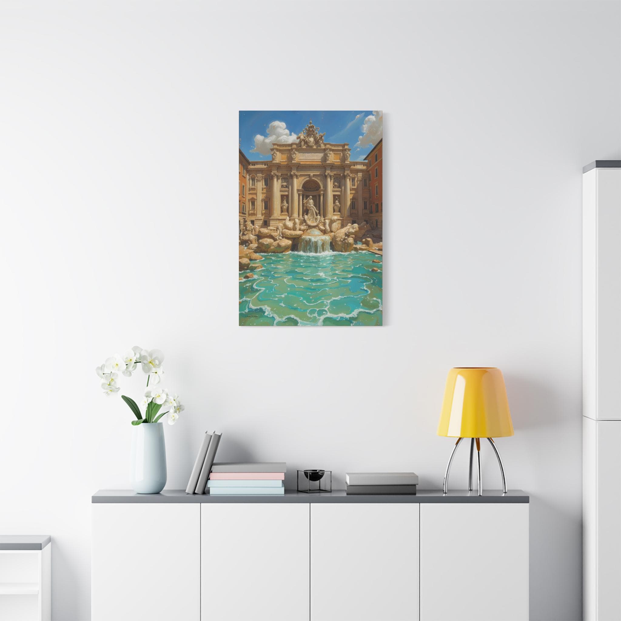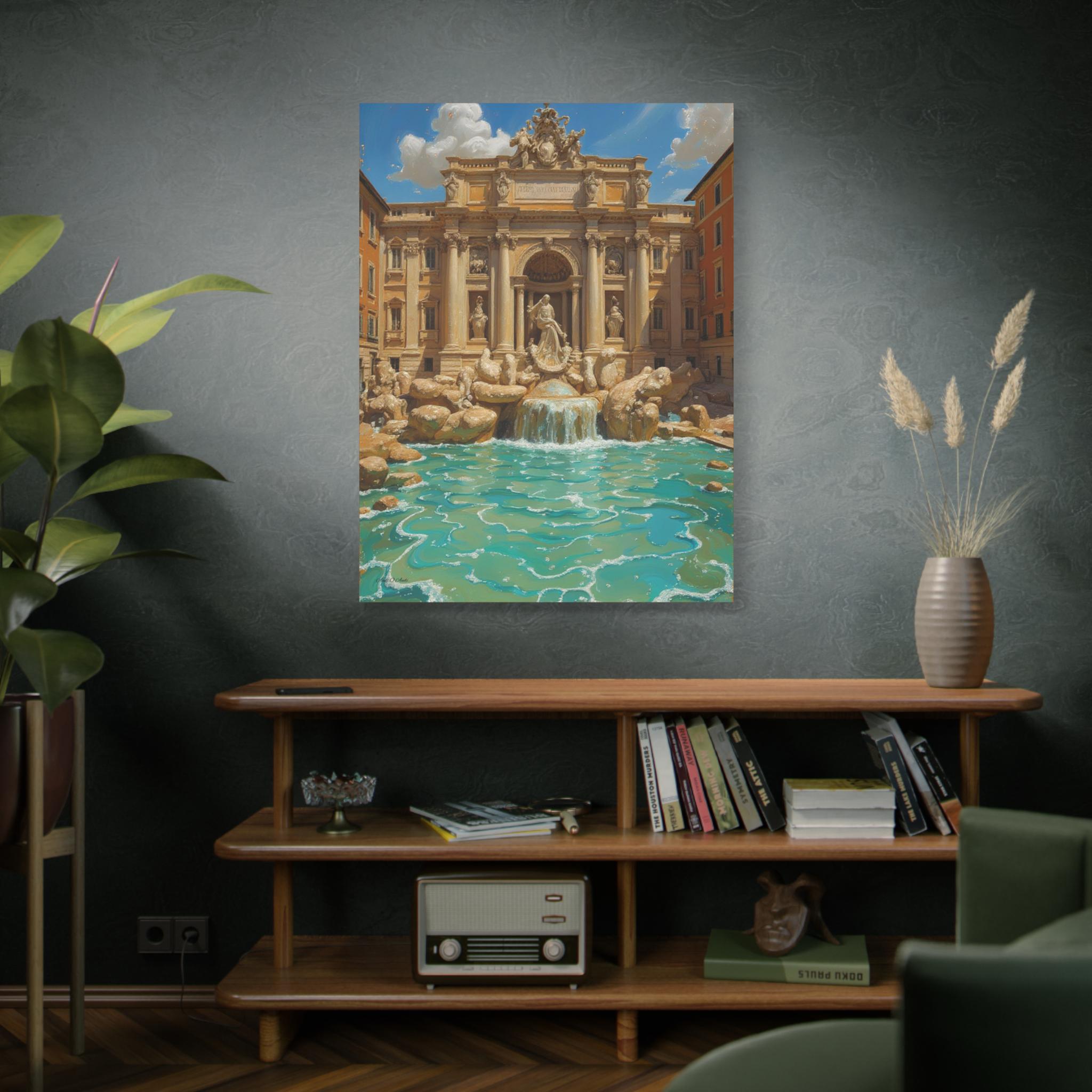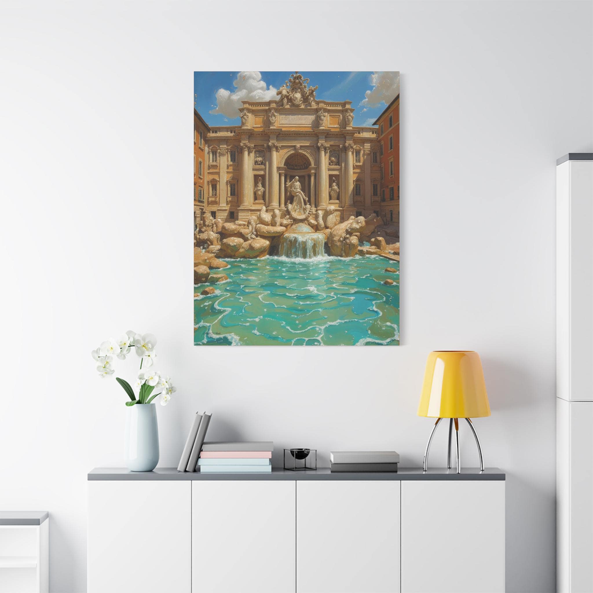 Bring the eternal romance and brilliant sunlight of Rome into your home with this stunning canvas print of the iconic Trevi Fountain. This artwork captures the monumental beauty of the fountain and the vivid, legendary turquoise of its waters.