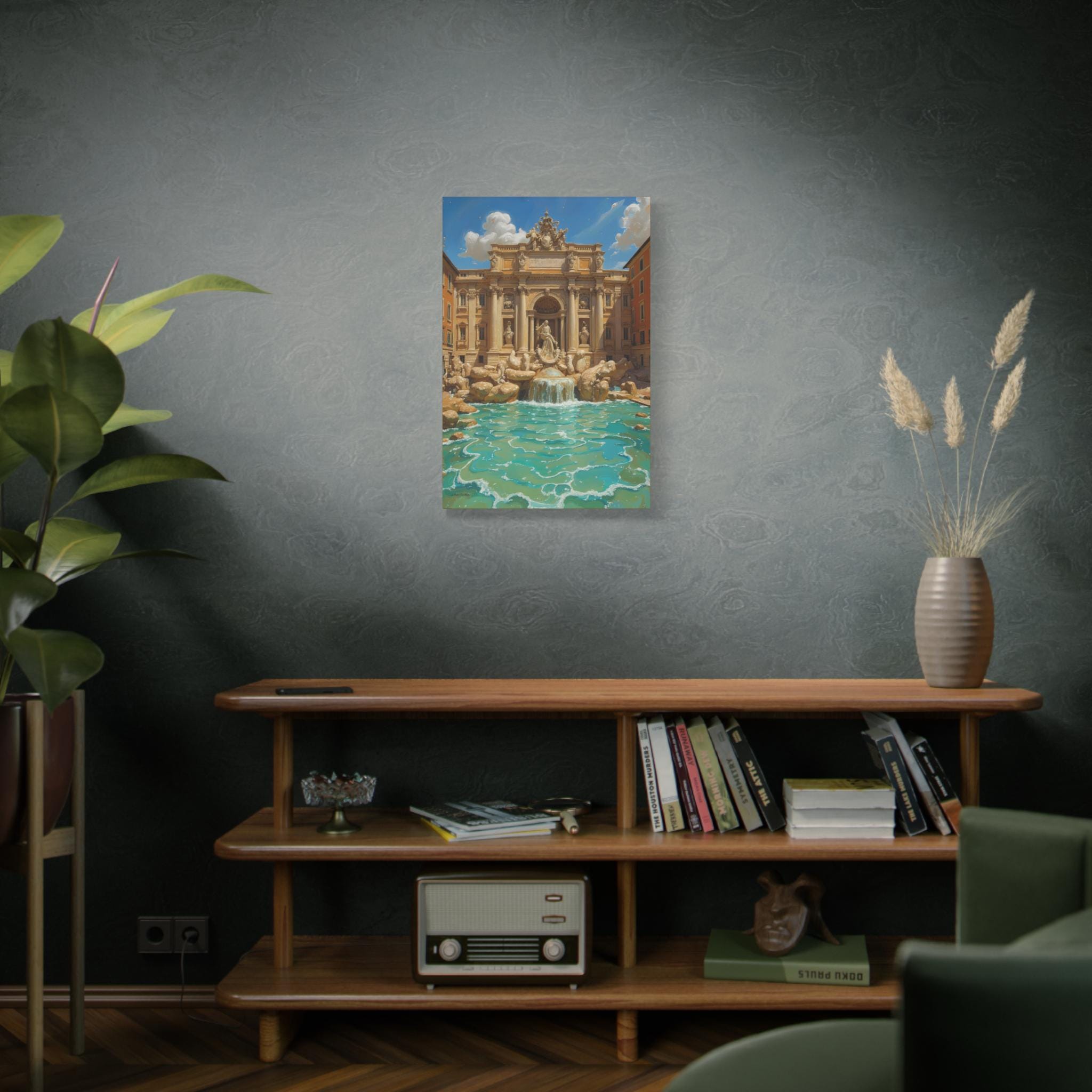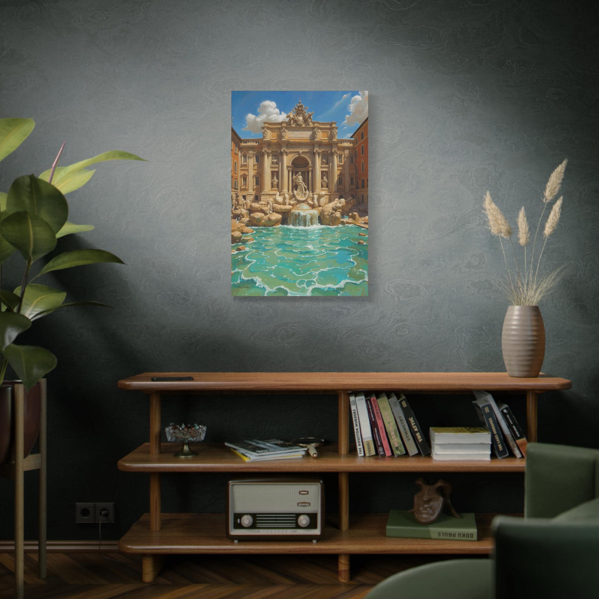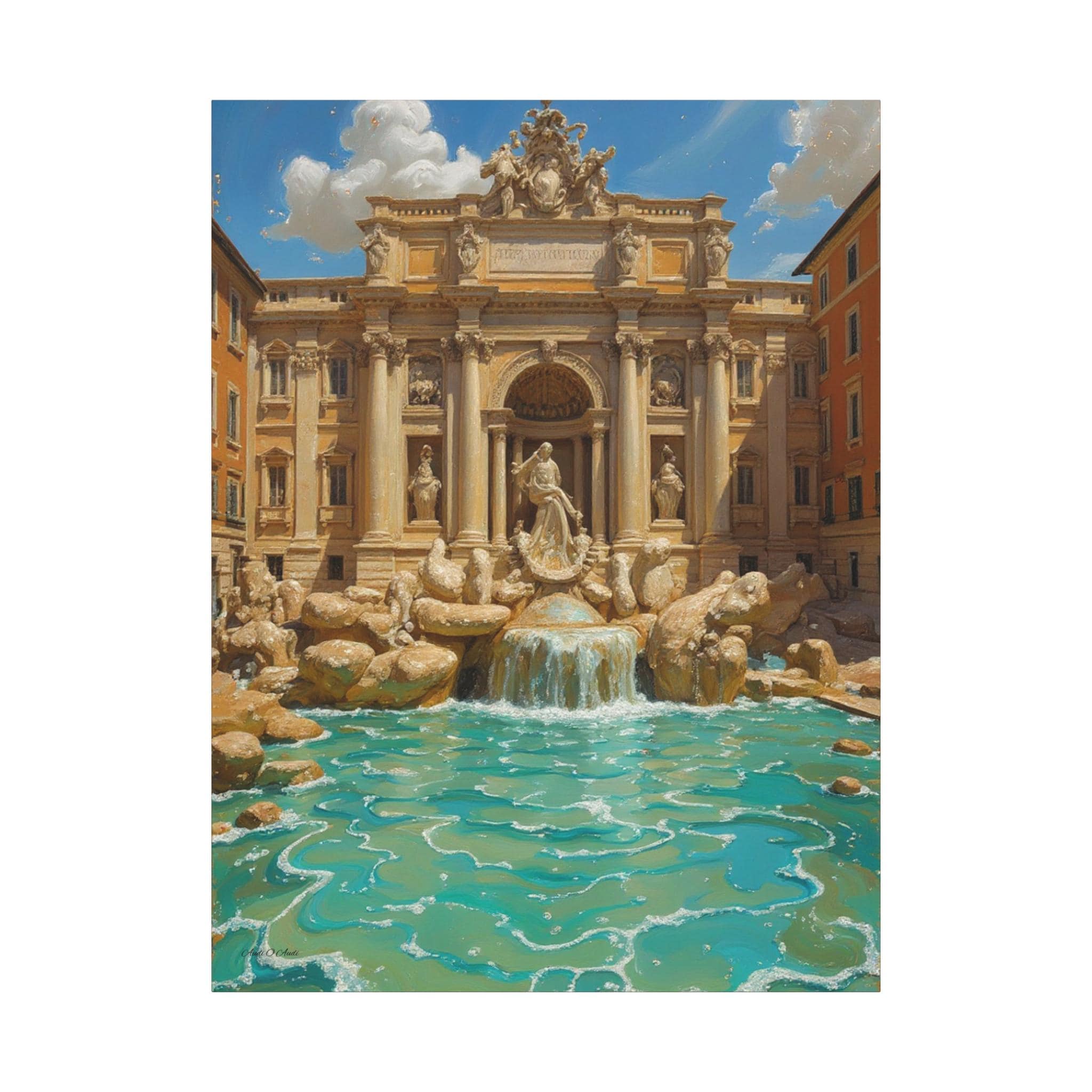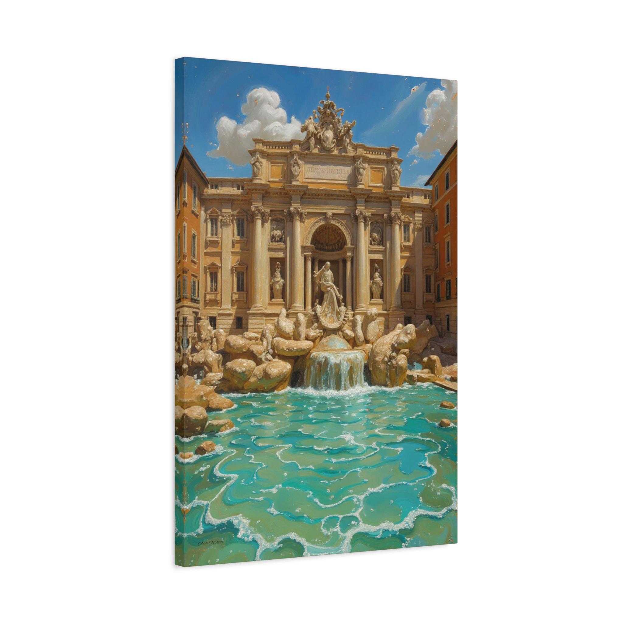 Bring the eternal romance and brilliant sunlight of Rome into your home with this stunning canvas print of the iconic Trevi Fountain. This artwork captures the monumental beauty of the fountain and the vivid, legendary turquoise of its waters.
