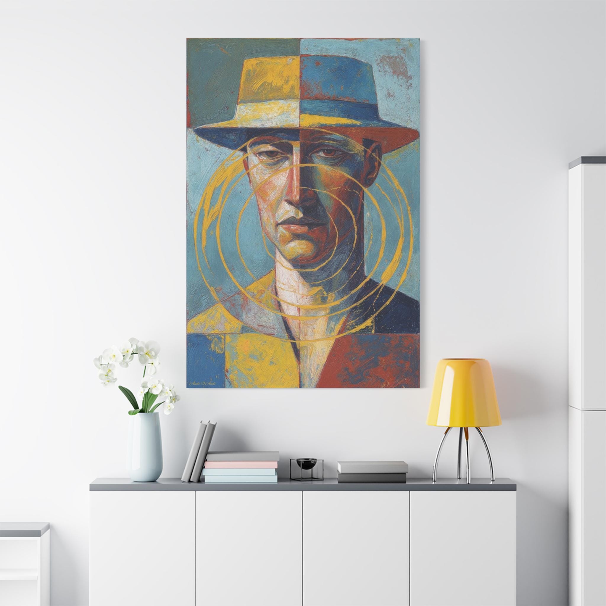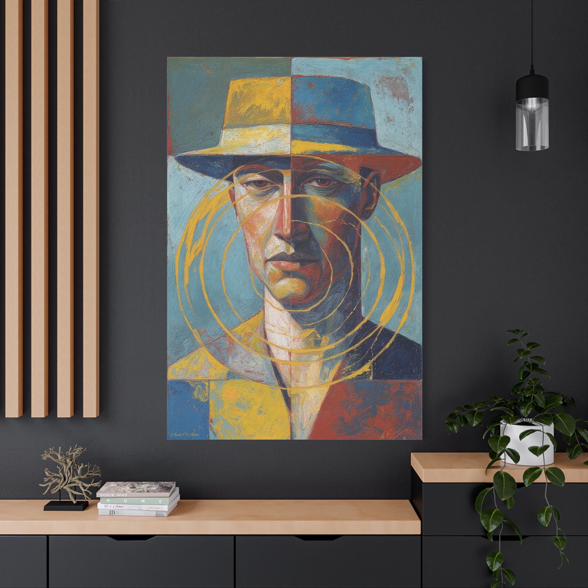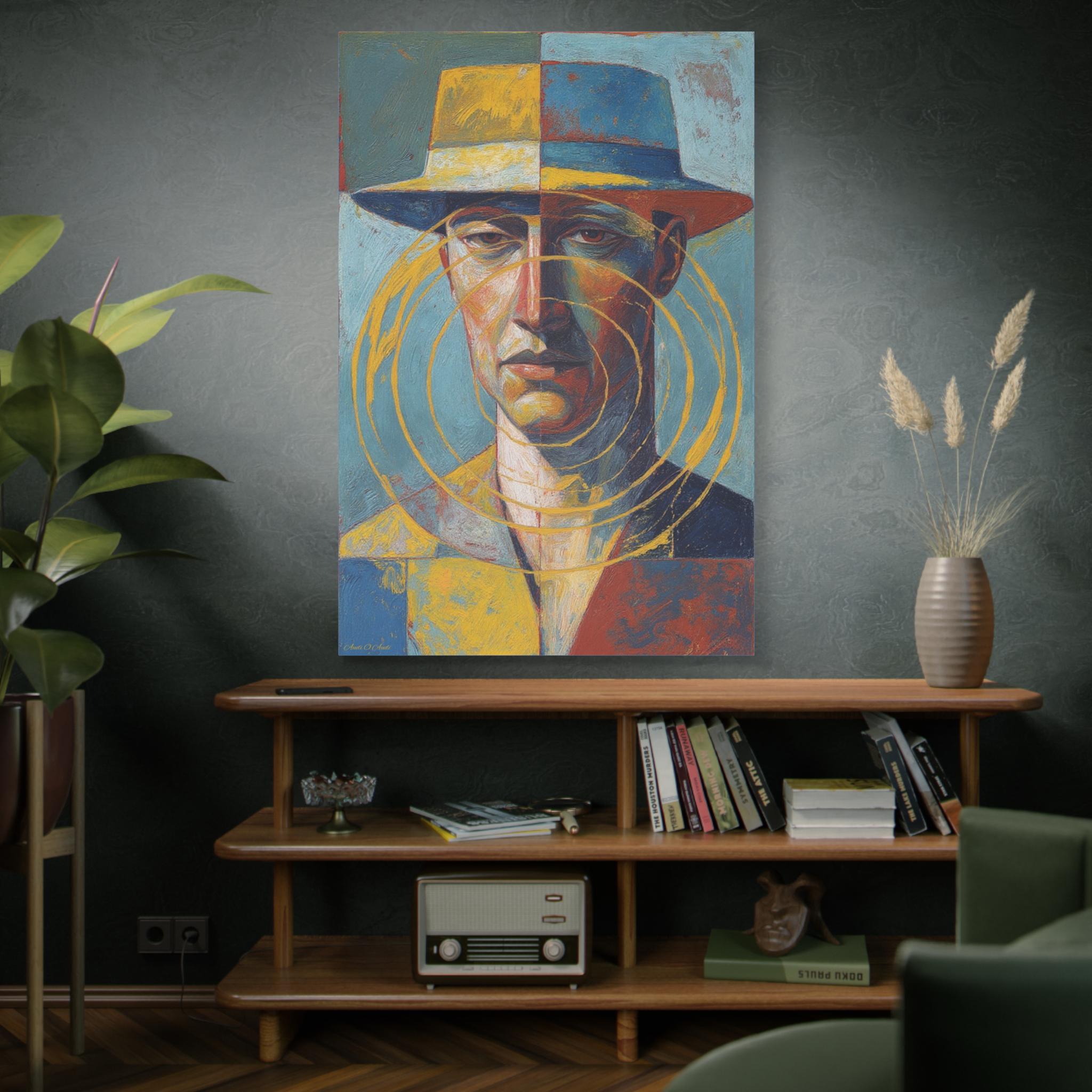 Man in Hat Abstract Canvas Art: Colorful Modern Wall Decor
