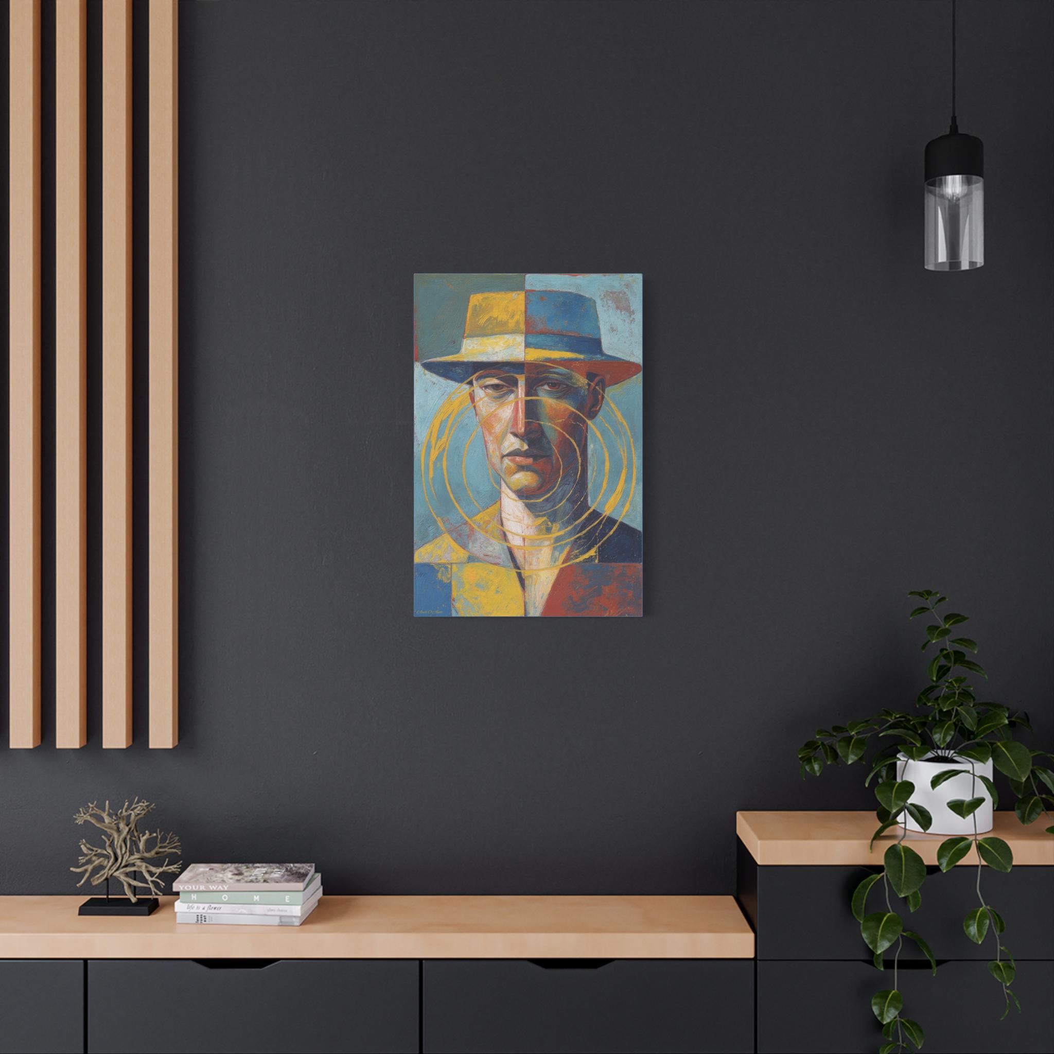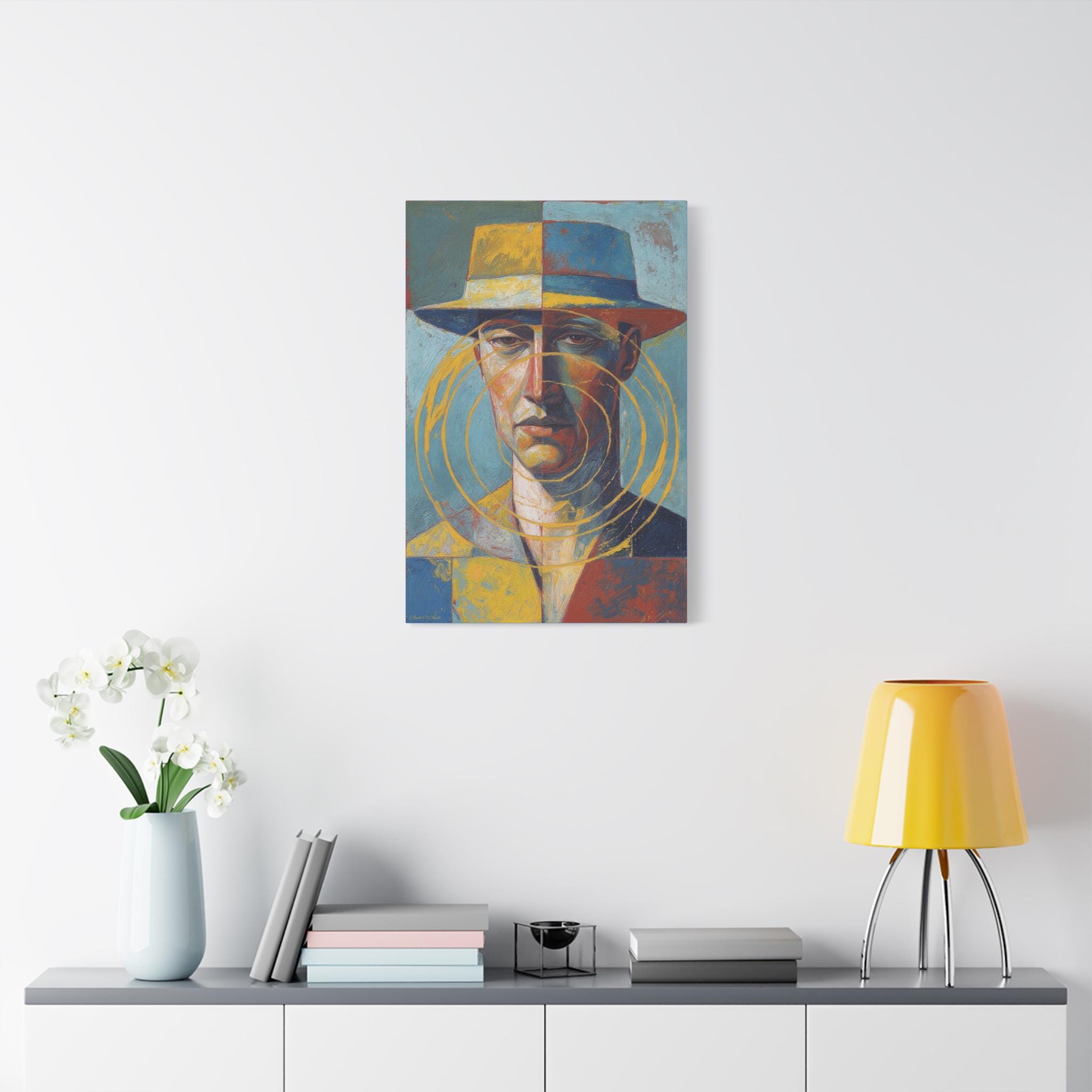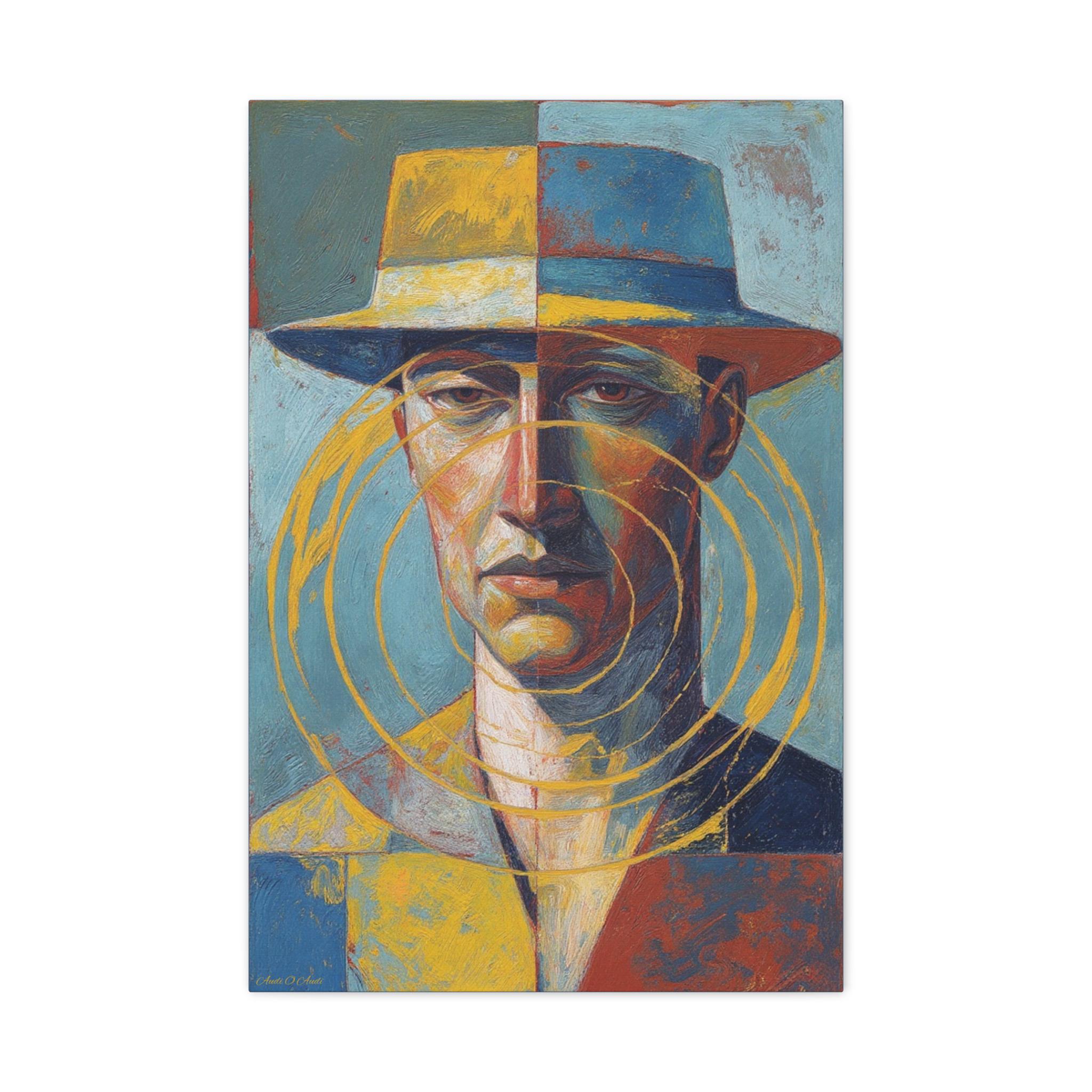 Man in Hat Abstract Canvas Art: Colorful Modern Wall Decor