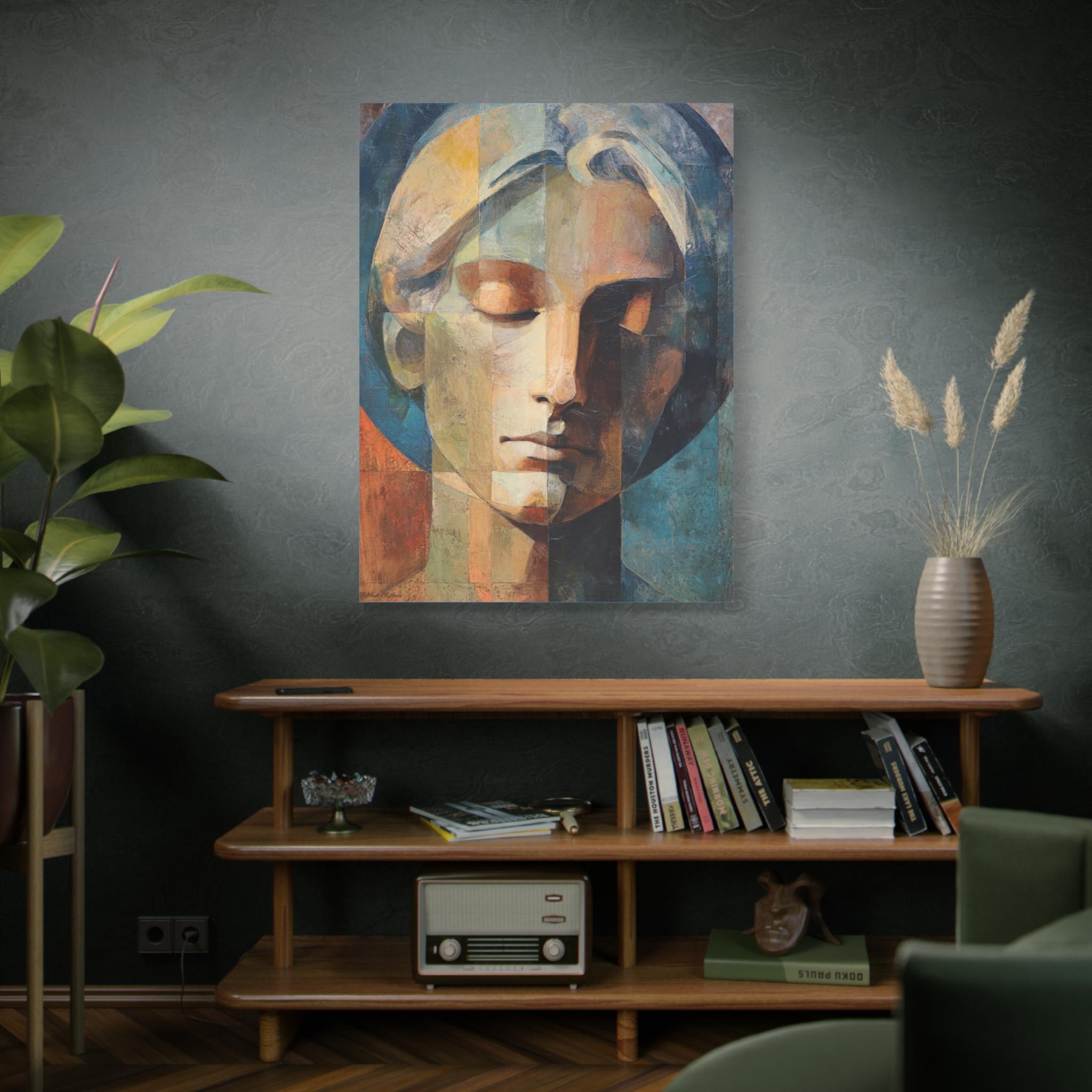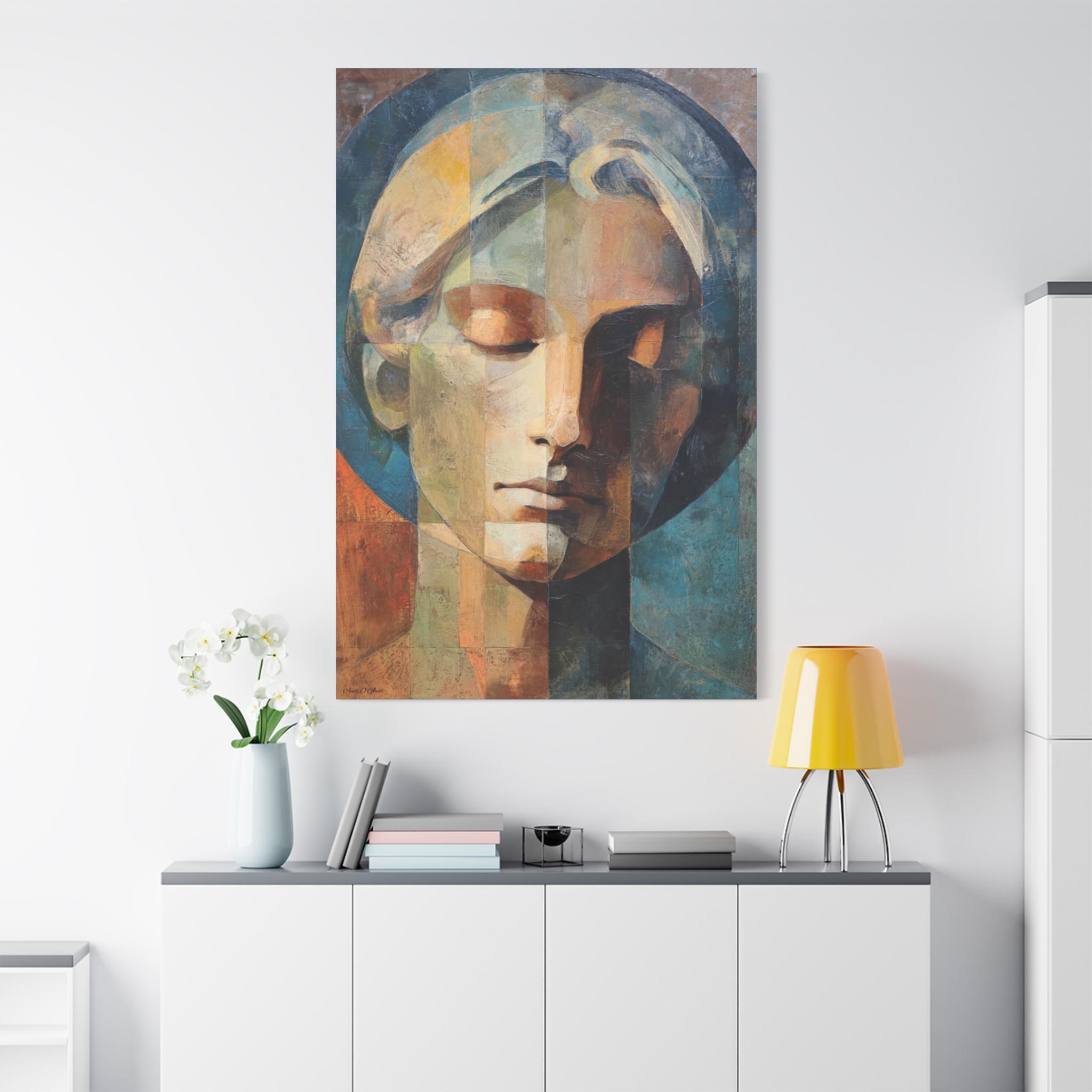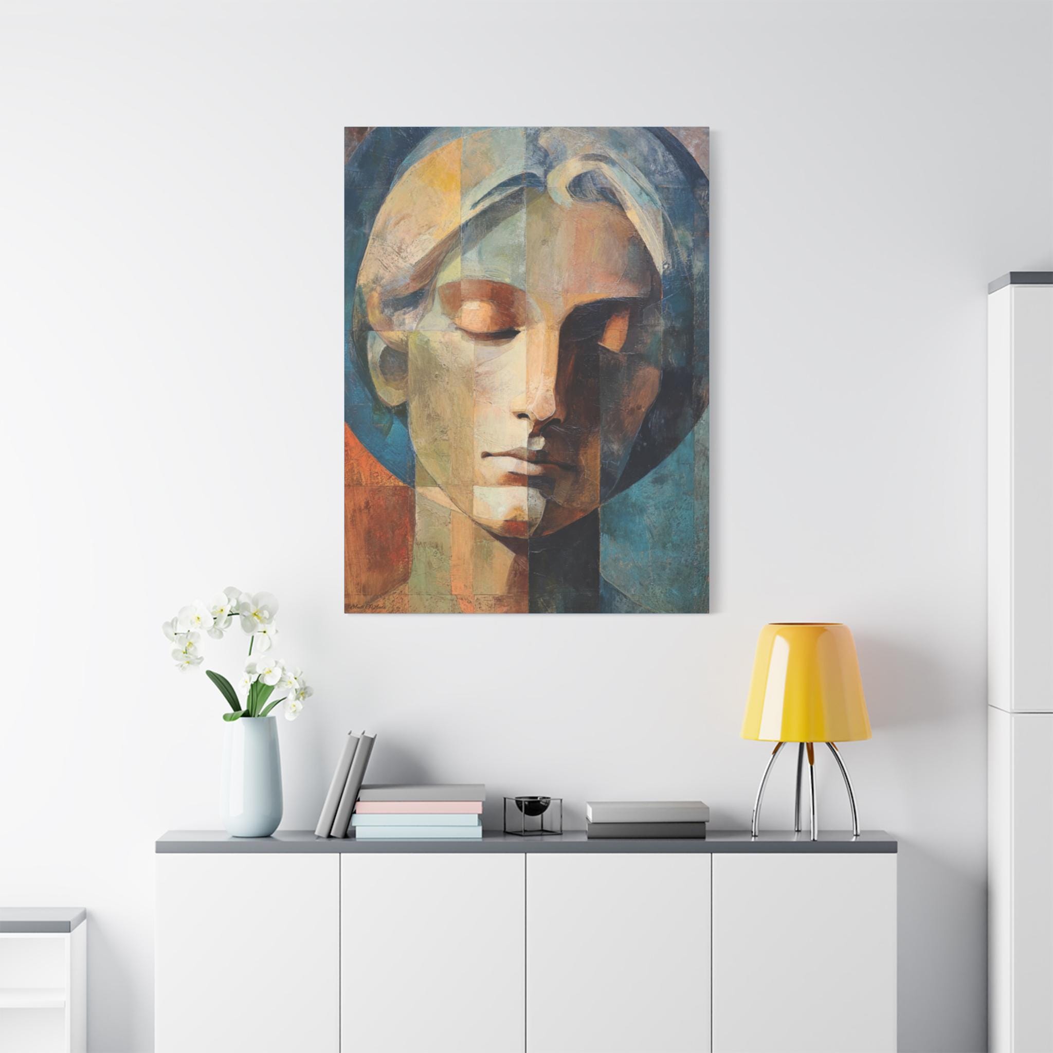 Serene Portrait Canvas Print: Duality of Light, Modern Art