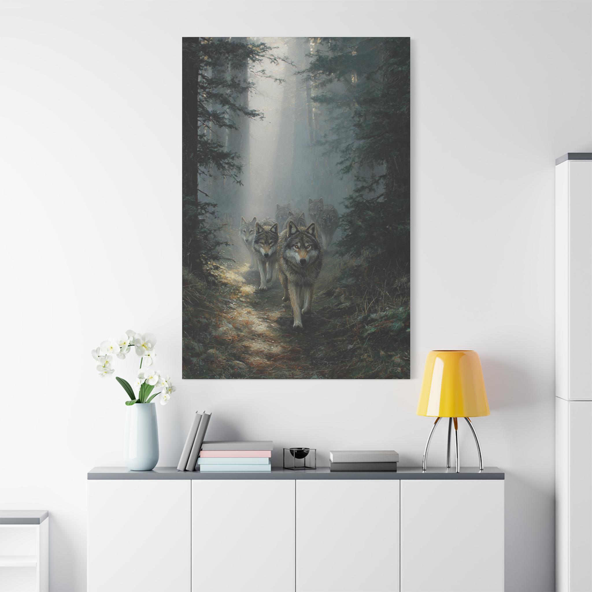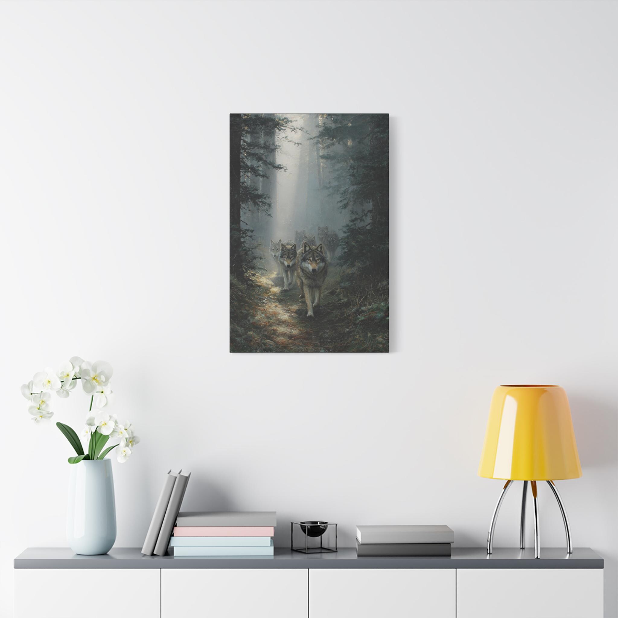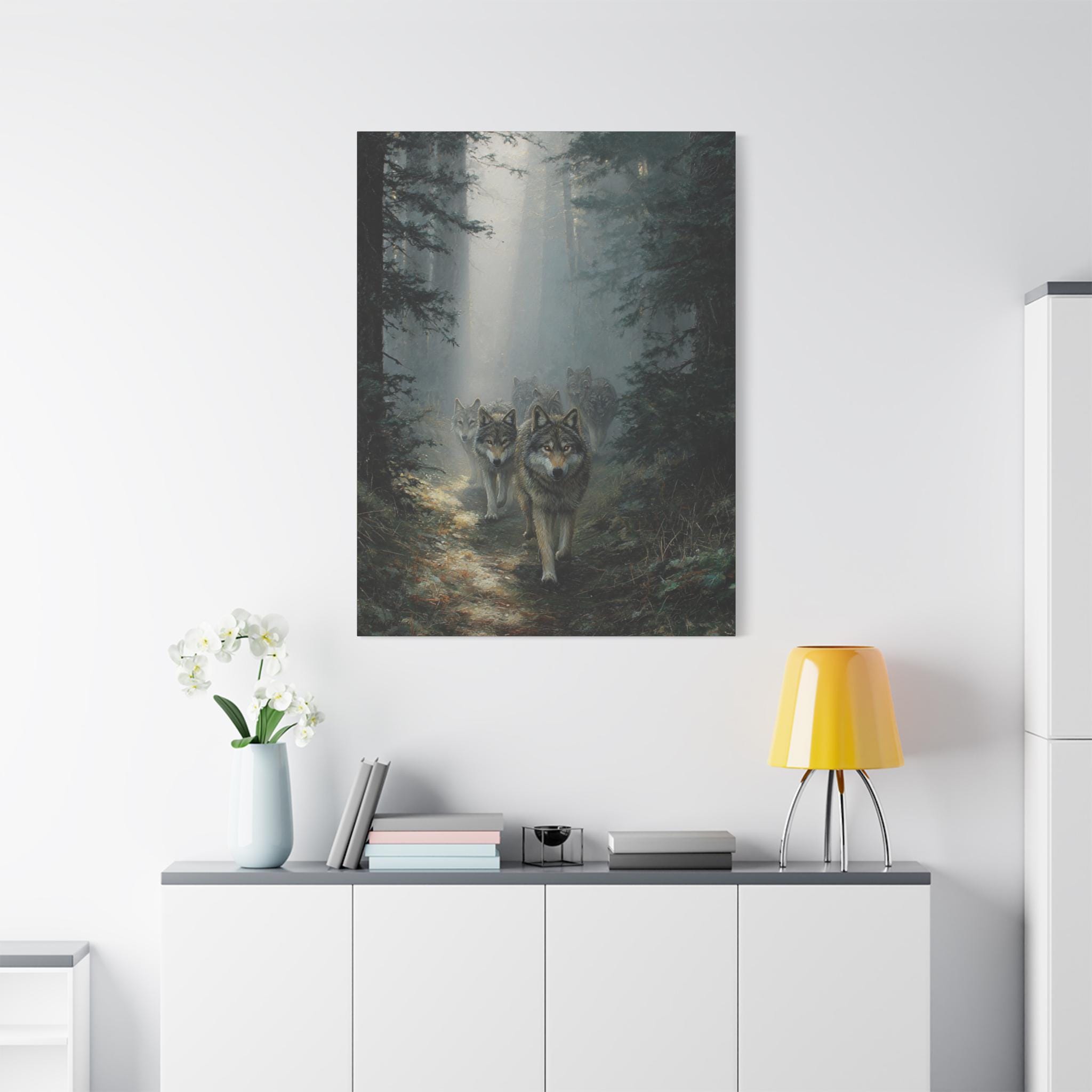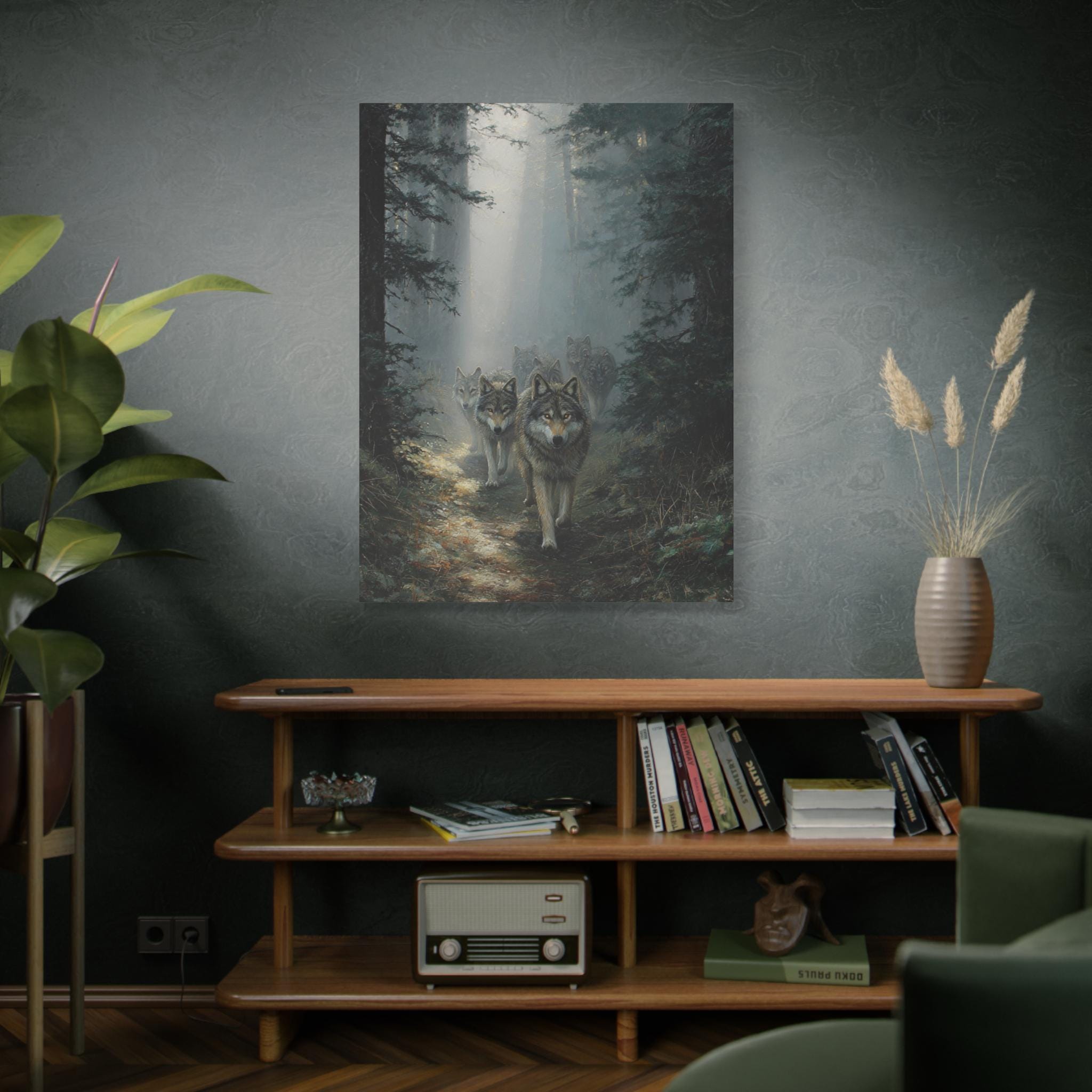 Wolf Pack Matte Canvas Print: Forest Scene Nature Wall Art
