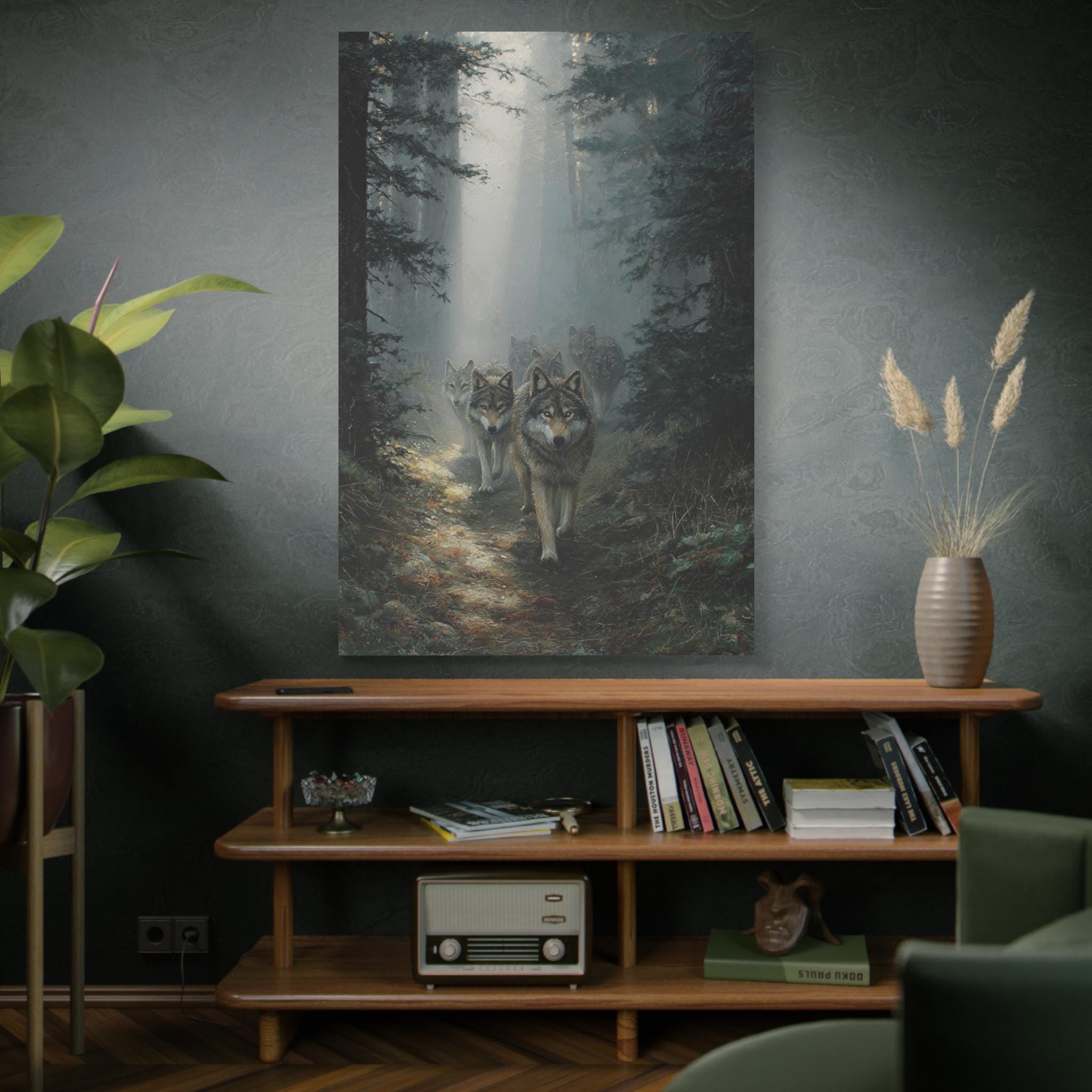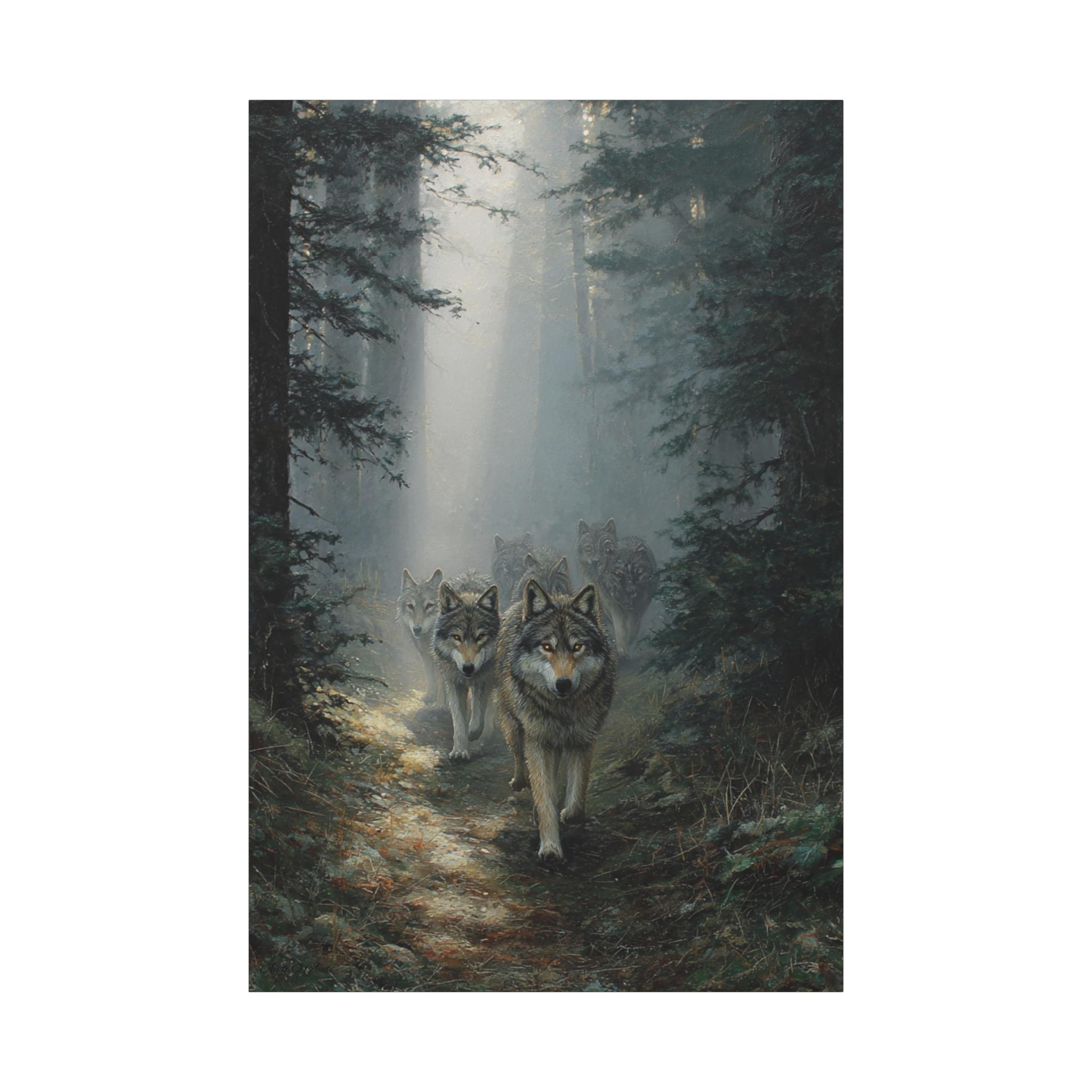 Transform your living space with this stunning Matte Canvas. Featuring a captivating design of wolves walking through a serene forest, this piece radiates an atmosphere of tranquility and connection to nature. Ideal for nature lovers and individuals seeking to infuse their home with a touch of wilderness magic, it works beautifully as a statement piece in any room. The canvas is perfect for home decor enthusiasts, making it an excellent gift for housewarmings, birthdays, or even holidays like Christmas and Earth Day, when appreciating the beauty of nature is especially significant. Hang this artwork in your living room, bedroom, or office to create a calming sanctuary that inspires reflection and peace.