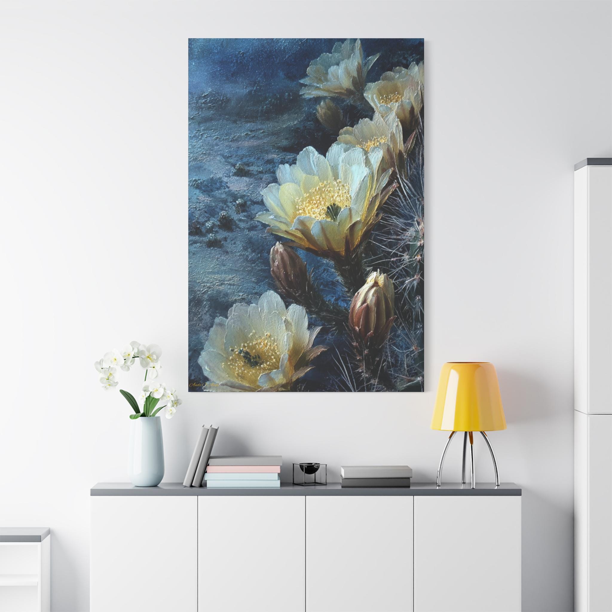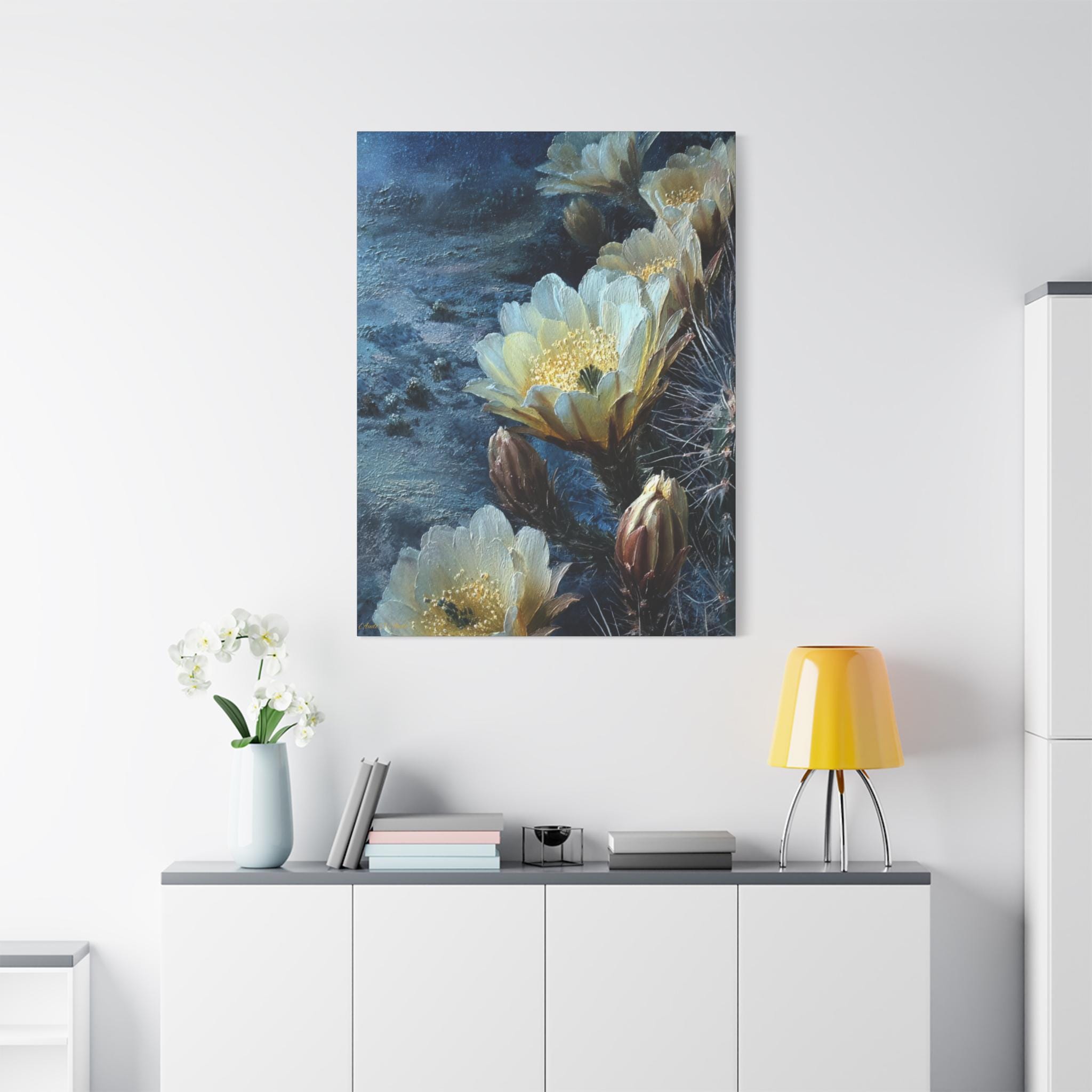 Transform your living space with this stunning Matte Canvas, Stretched artwork. Featuring vibrant imagery of delicate flowers against a serene backdrop, this piece exudes a calm and peaceful vibe. Perfect for elevating the ambience in any room, it brings a touch of nature's beauty indoors. Ideal for art lovers and home decor enthusiasts, it makes a thoughtful gift for housewarmings, birthdays, anniversaries, or any celebration that calls for a unique touch. This canvas is especially fitting for springtime events when blossoms are celebrated or for creating a soothing atmosphere during meditation or relaxation moments.