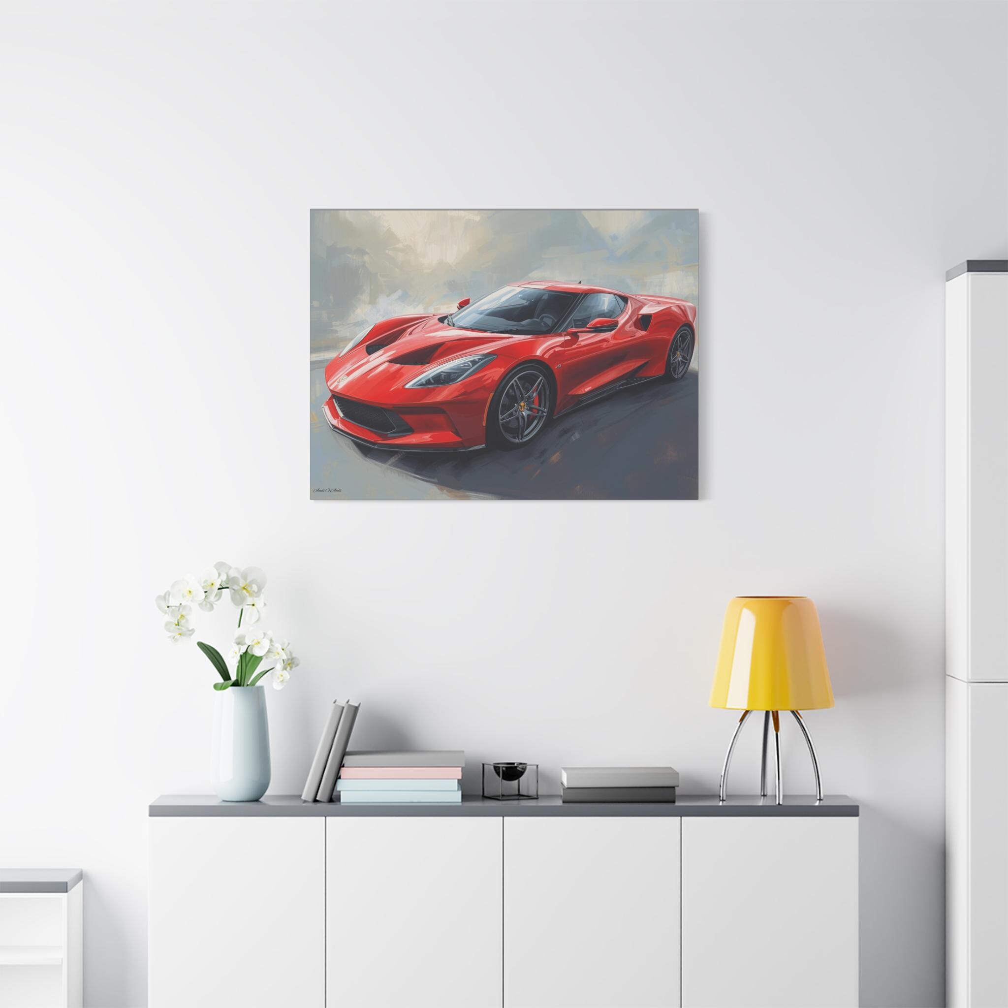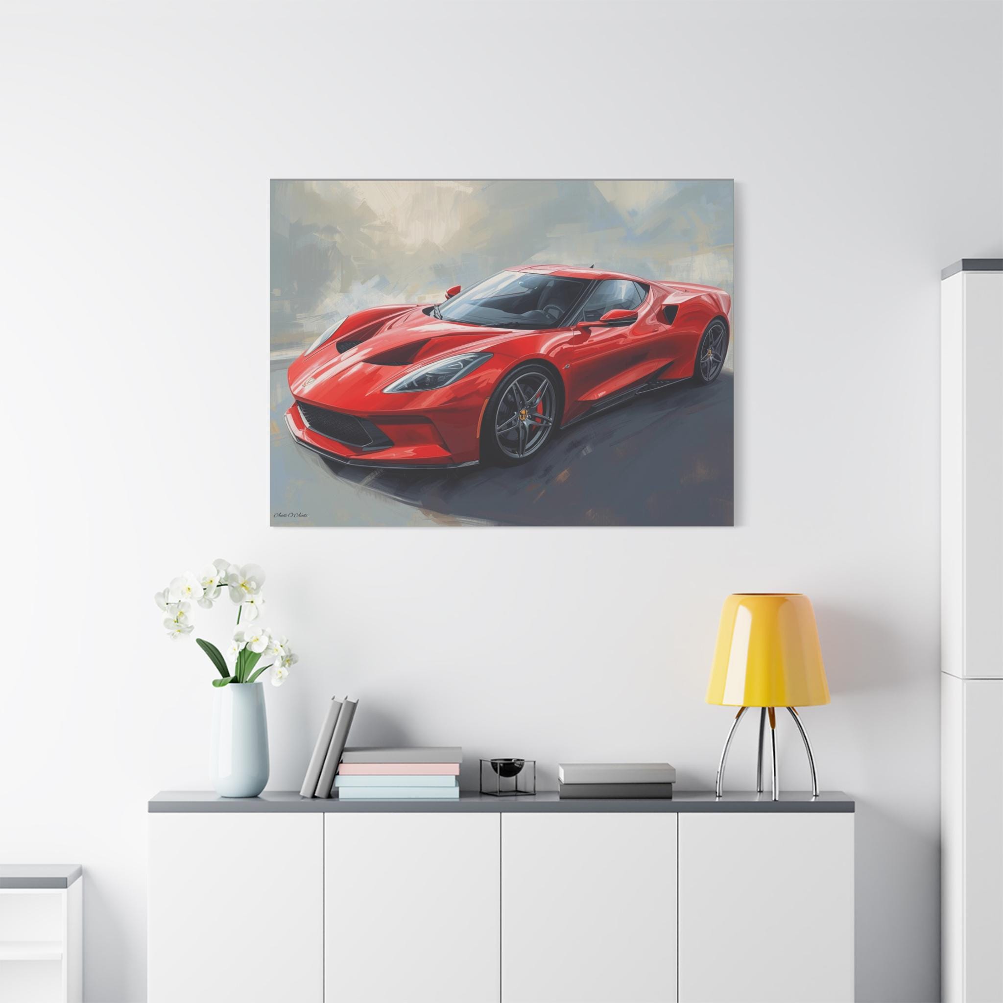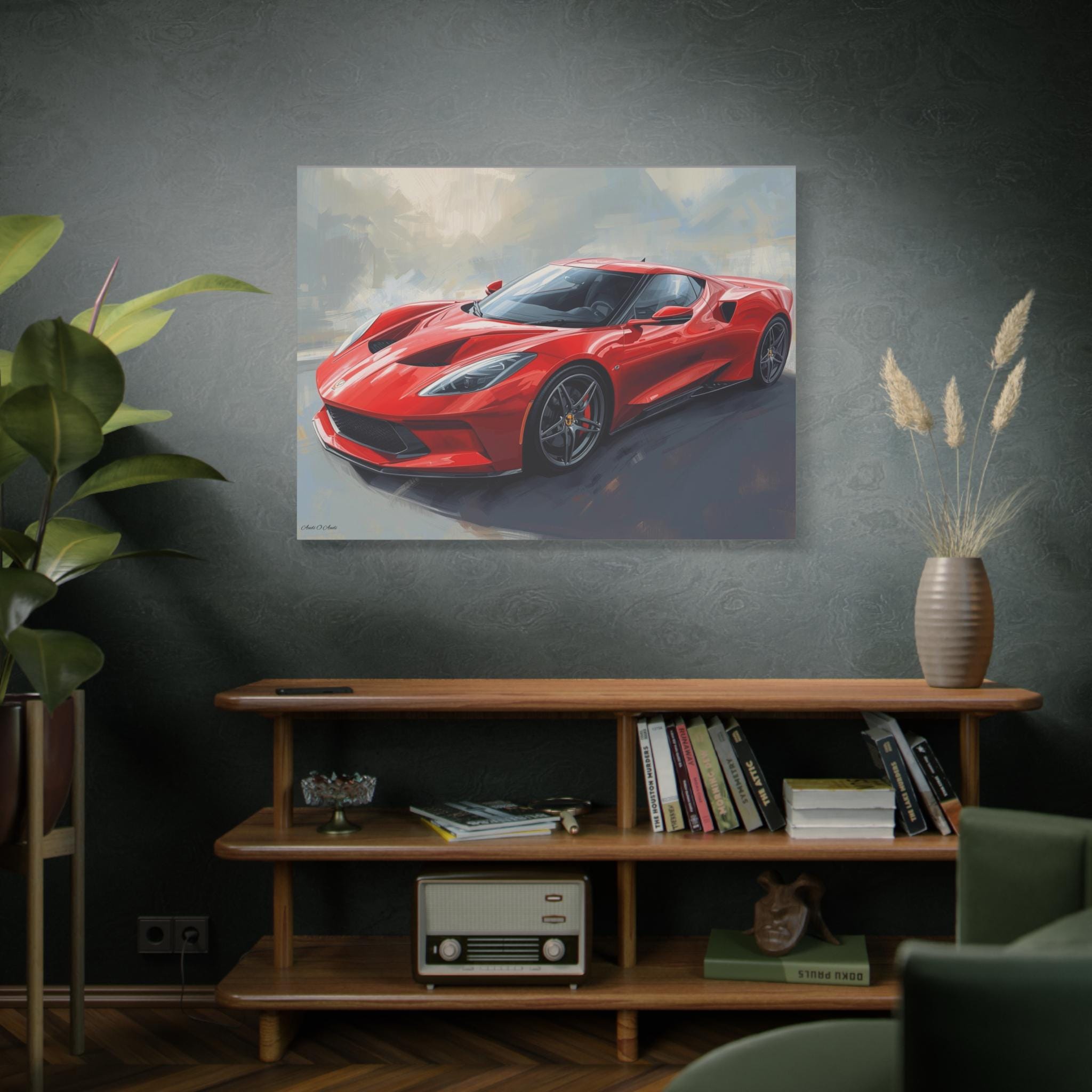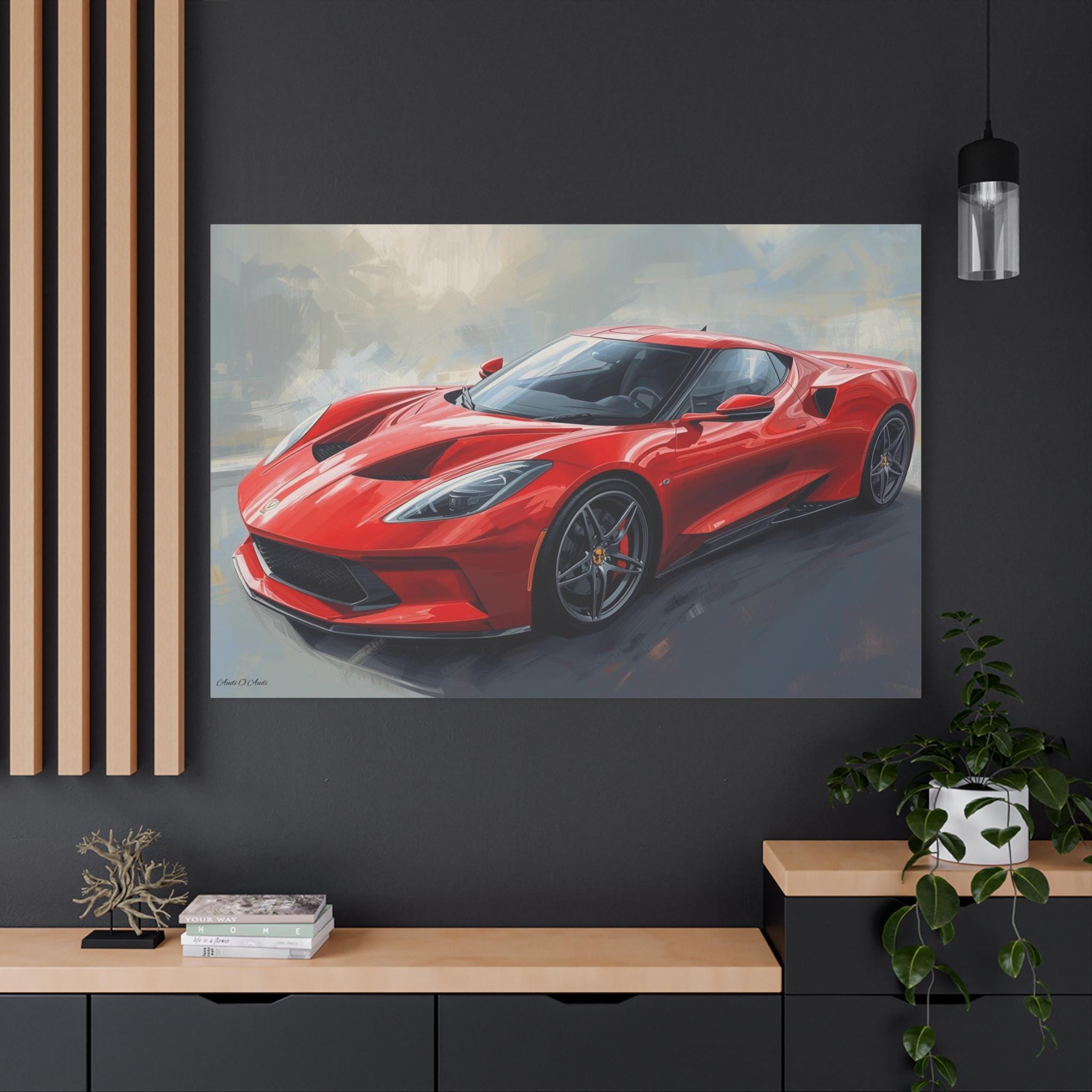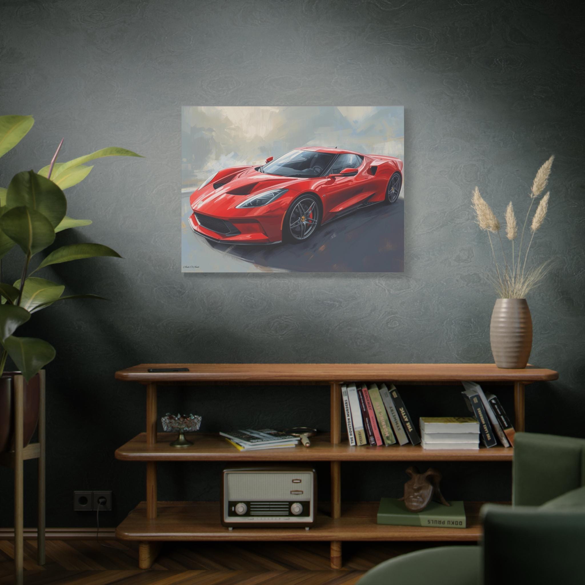 Red Sports Car Canvas Wall Art: Automotive Decor Gift
