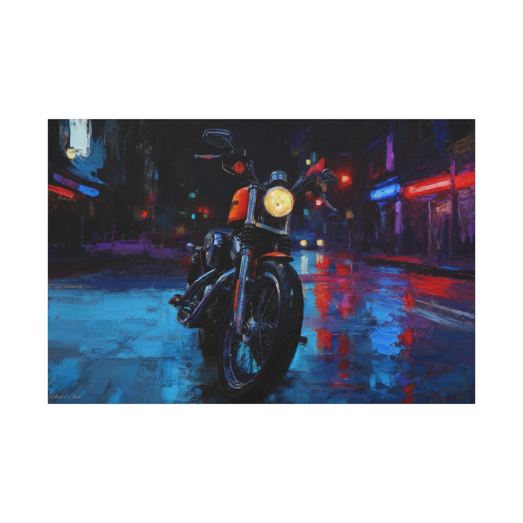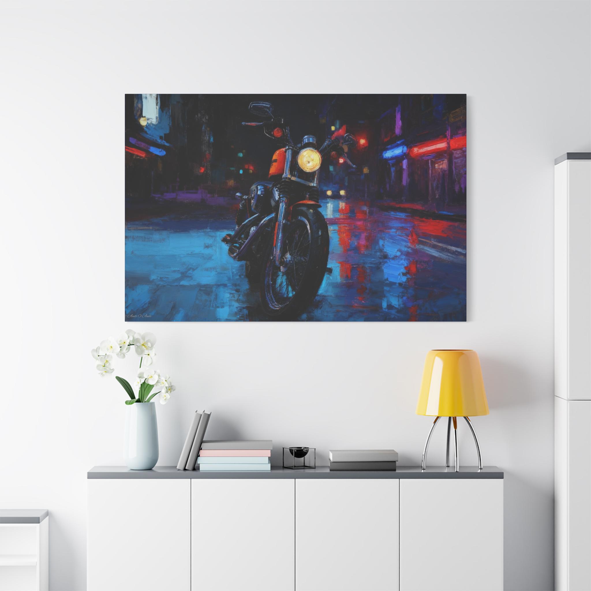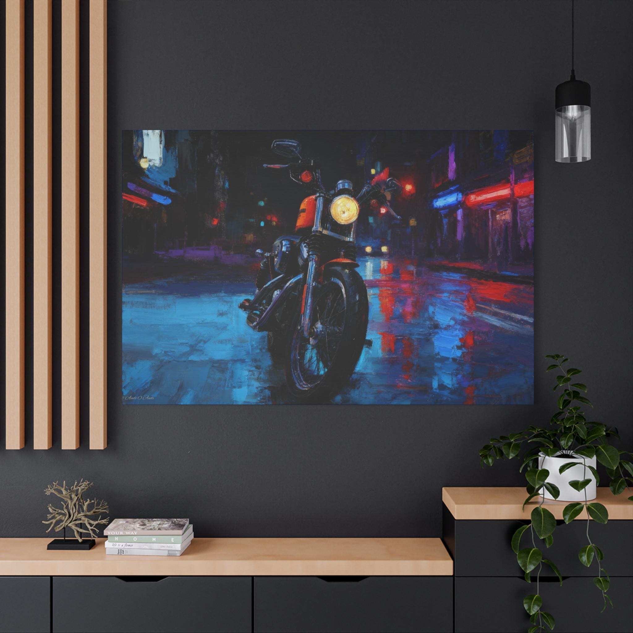 Motorcycle Night Canvas Print, Wall Art for Bike Lovers, Cool Bedroom Decor, Gift for Riders, Biker Art, Urban Vibe Home Decor