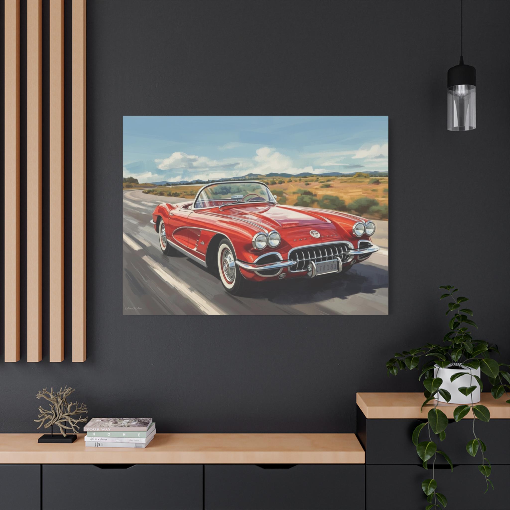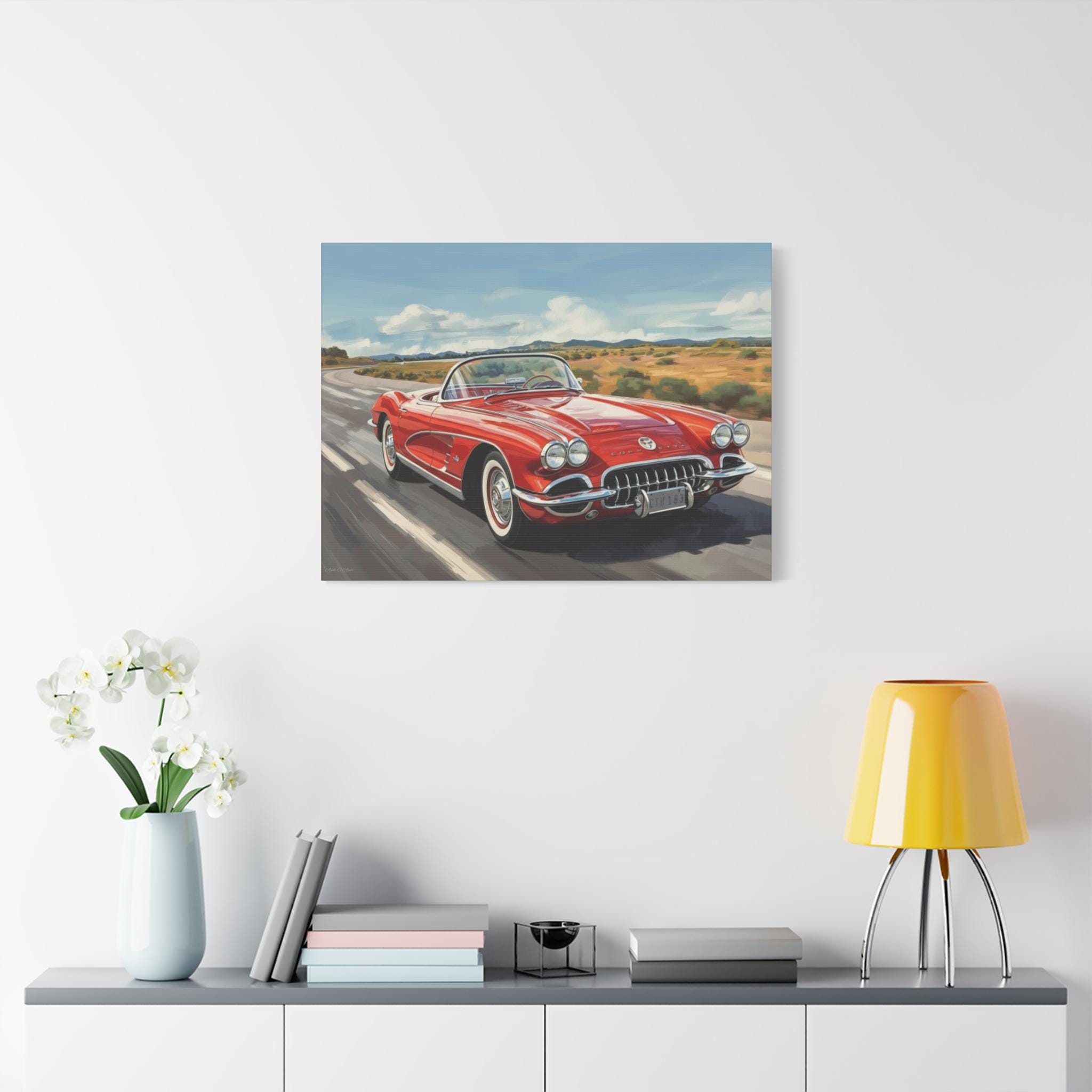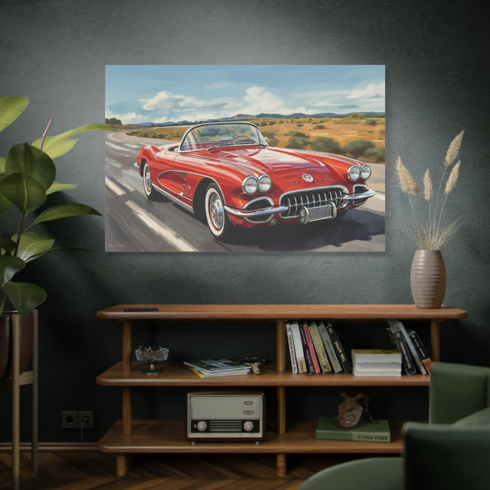 Vintage Car Canvas Art, Retro Wall Decor, Classic Corvette Print, Automobile Lover Gift, Home Decoration