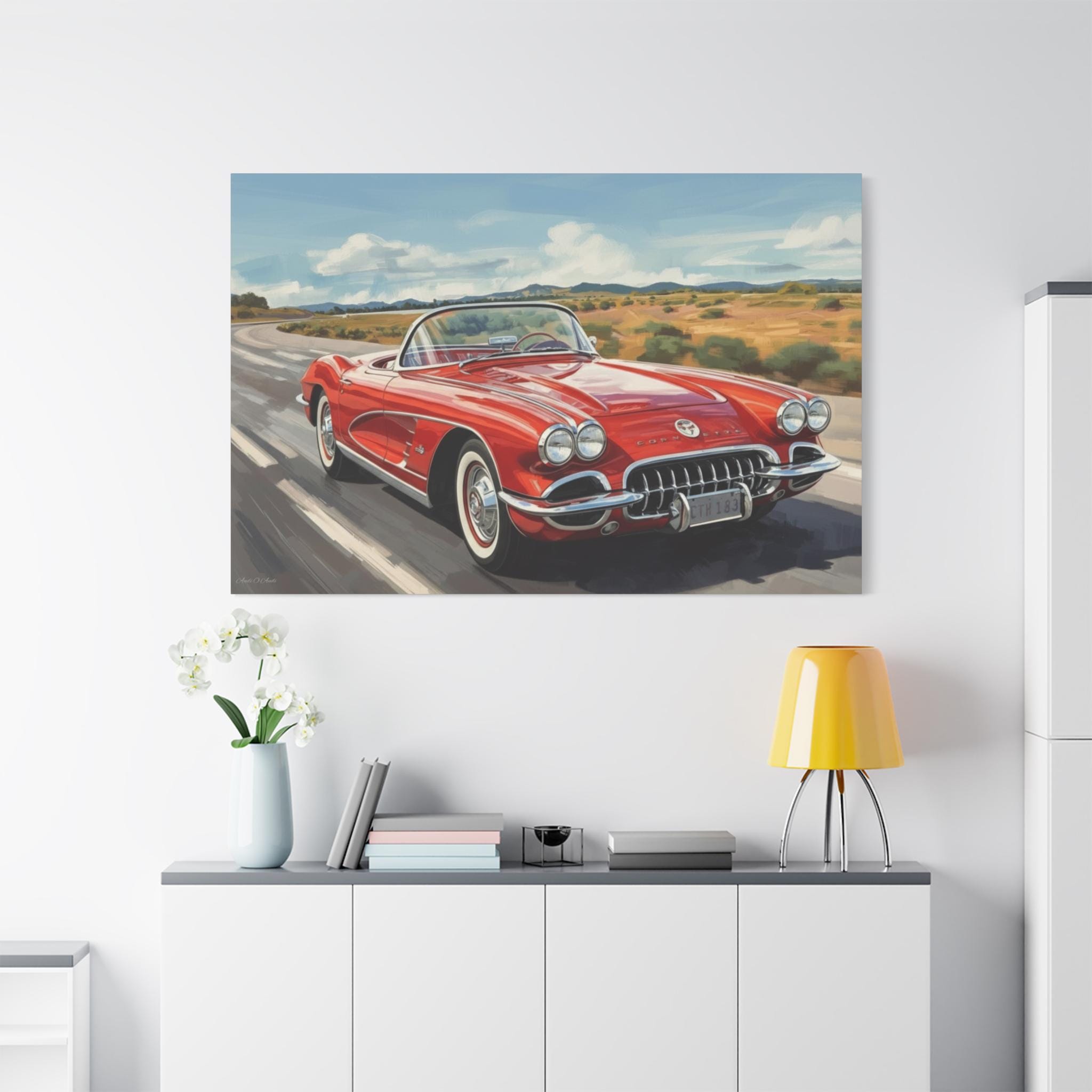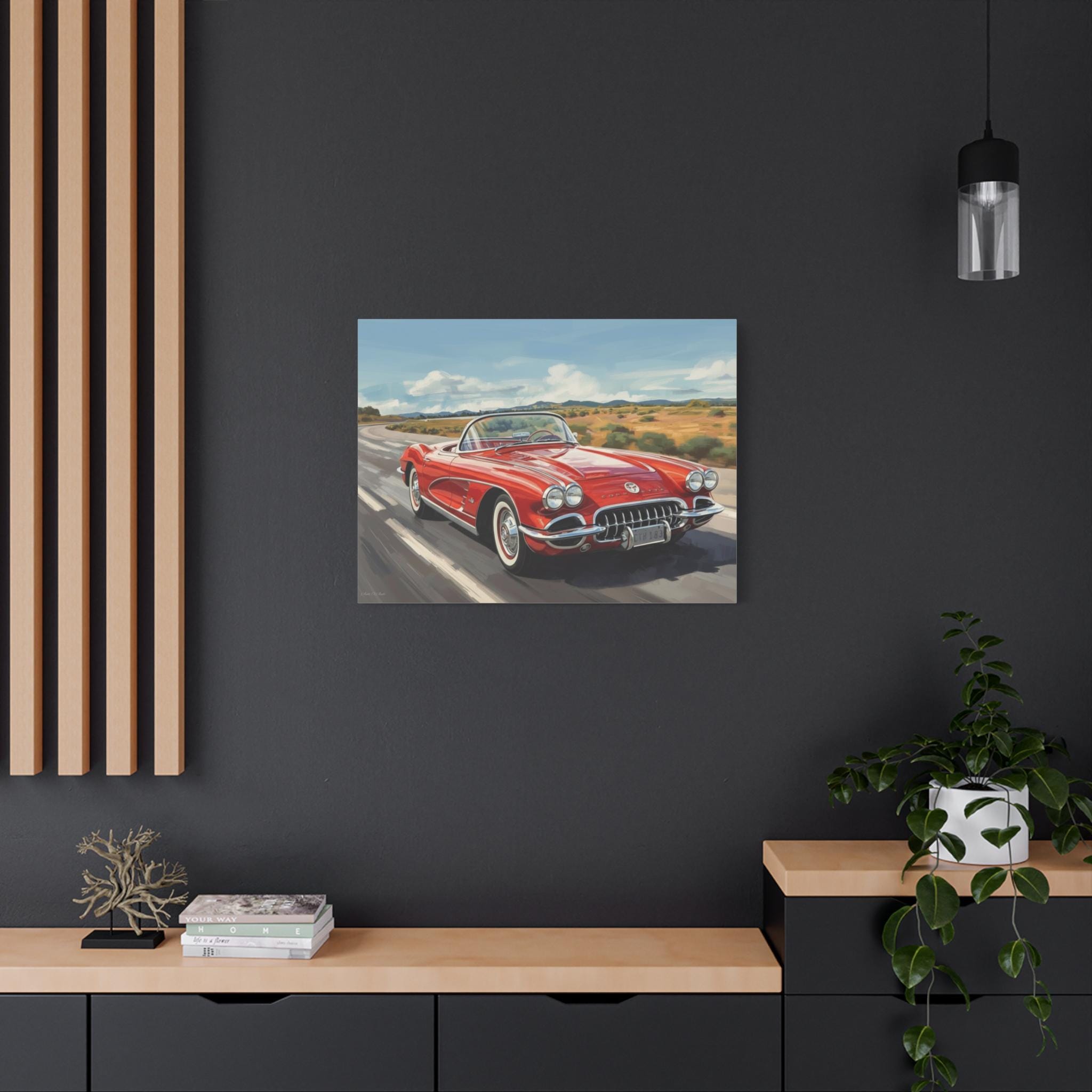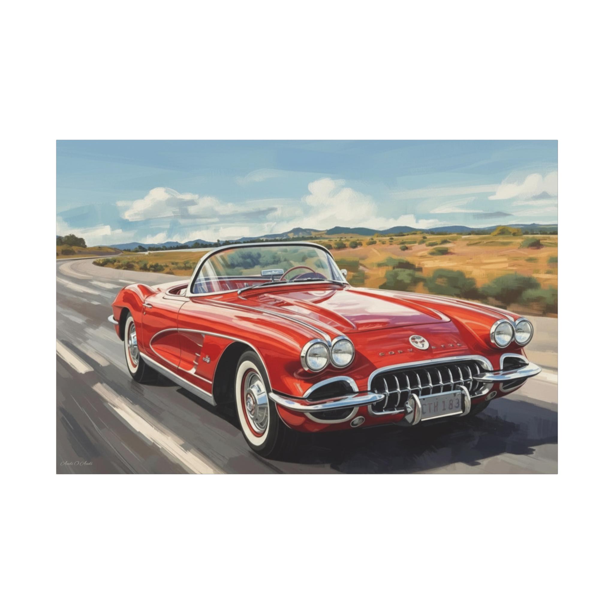 Vintage Car Canvas Art, Retro Wall Decor, Classic Corvette Print, Automobile Lover Gift, Home Decoration
