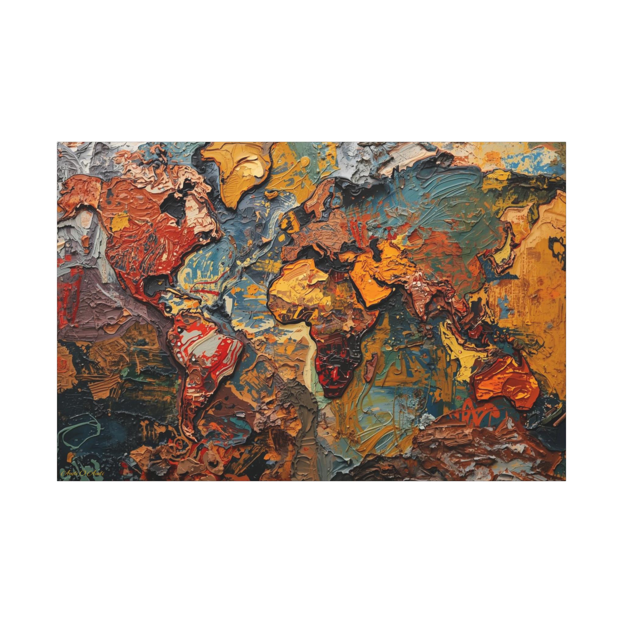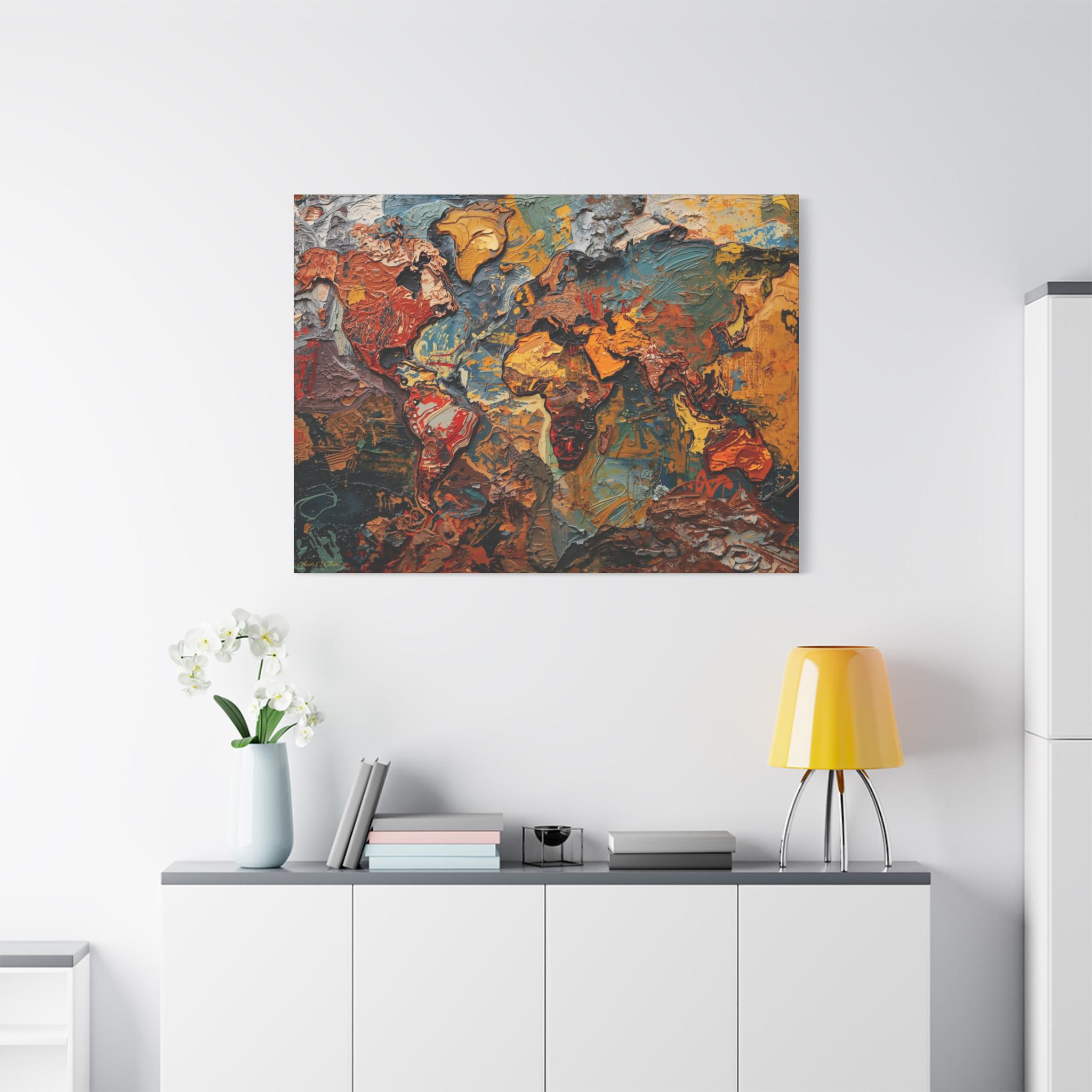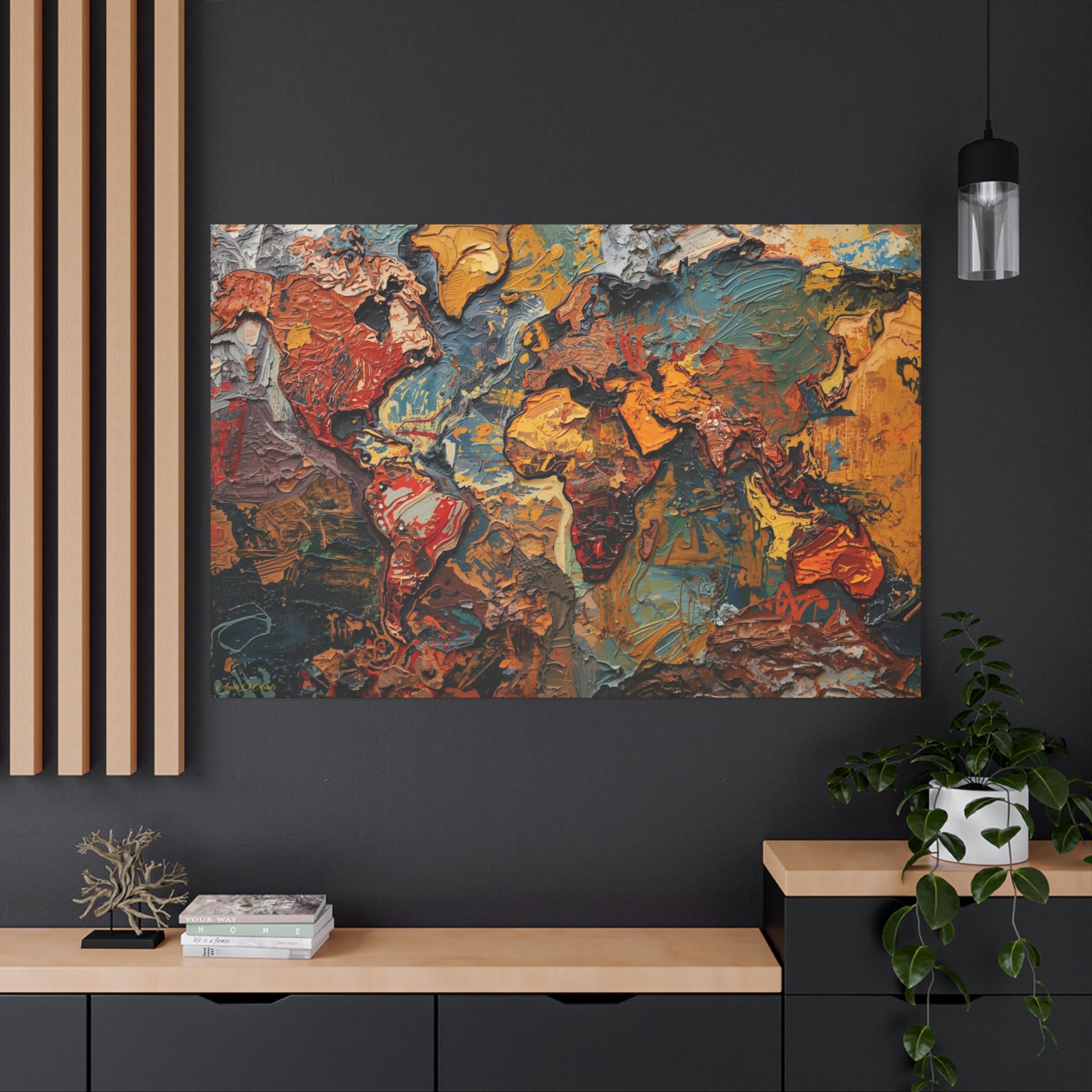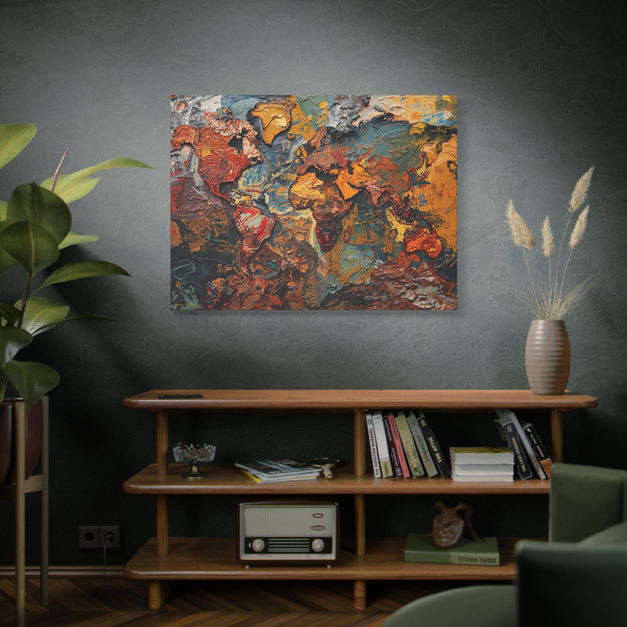 Textured World Map Canvas Art, Modern Home Decor, Vibrant Wall Art, Unique Gift for Travelers, Geographical Artwork