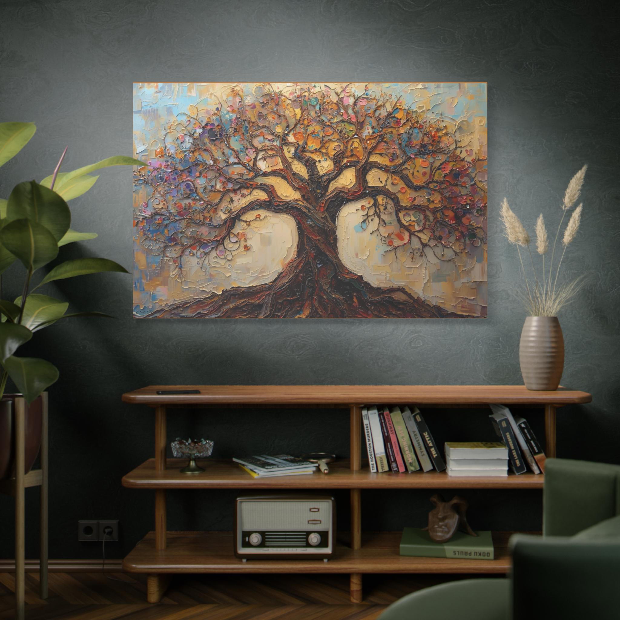 Artistic Tree of Life Canvas, Stretched Wall Art, Home Decor, Nature-Inspired Decoration, Gifts for Nature Lovers, Colorful Artwork