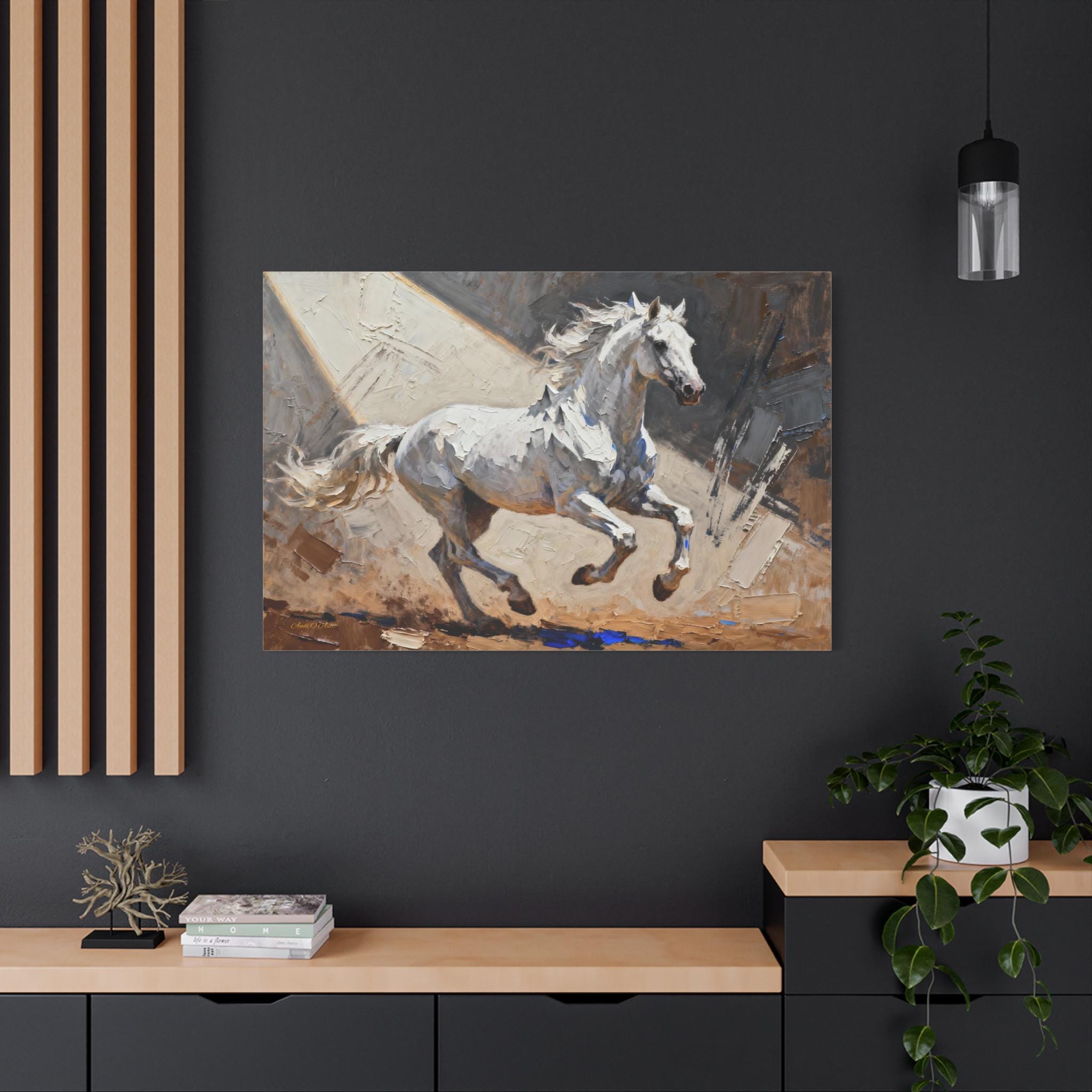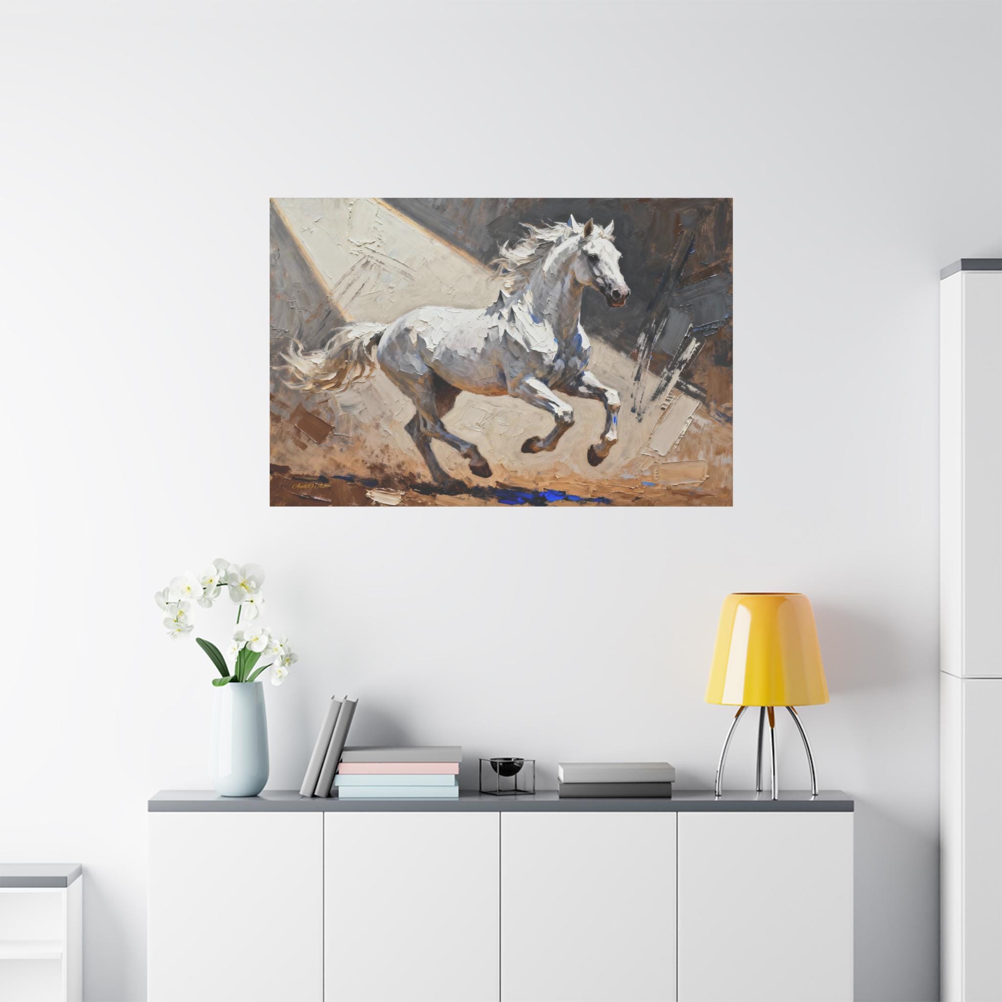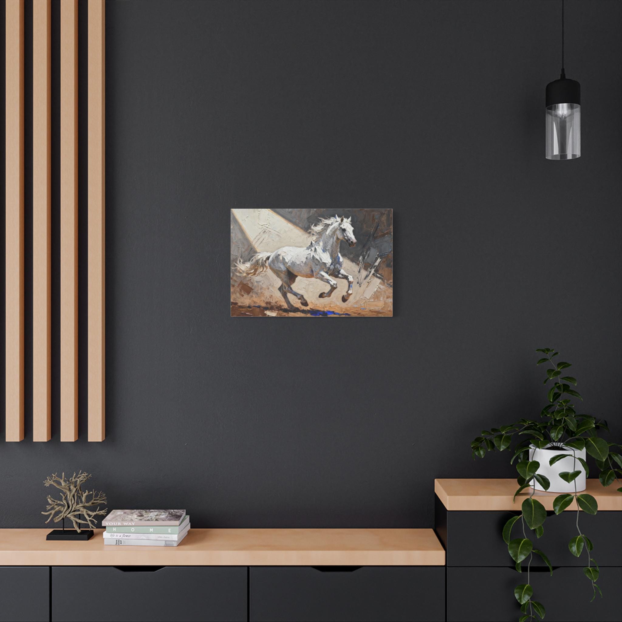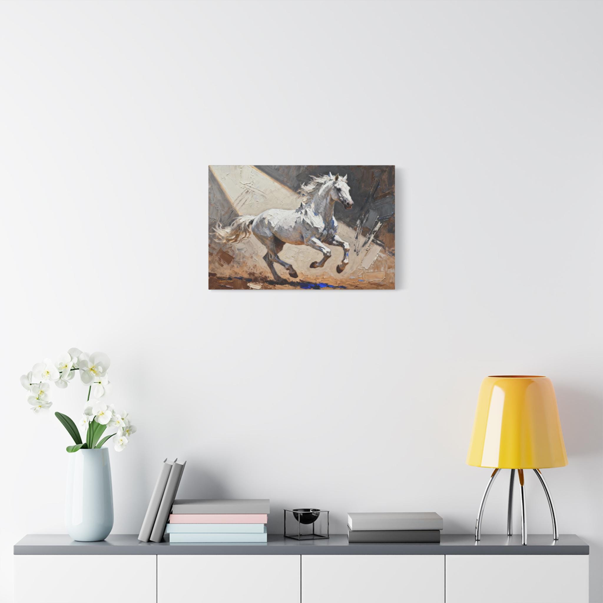 This White Stallion Canvas Print is perfect for horse lovers looking to add a touch of equestrian charm to their home decor. The high-quality image of a white horse on stretched canvas exudes a serene and rustic vibe, making it ideal for animal enthusiasts and nature lovers. This canvas print is a great addition to any living room, bedroom, or office, and is suitable for horse-related holidays like the Kentucky Derby or for anyone looking to bring a bit of the countryside indoors.